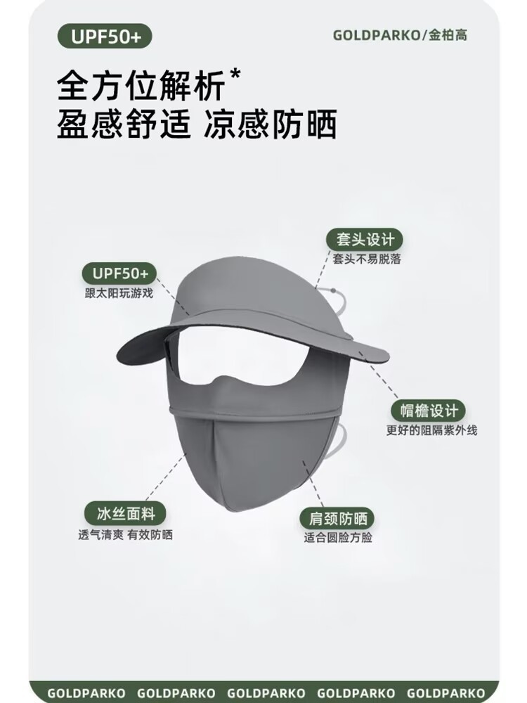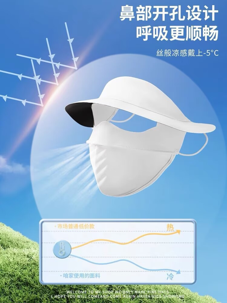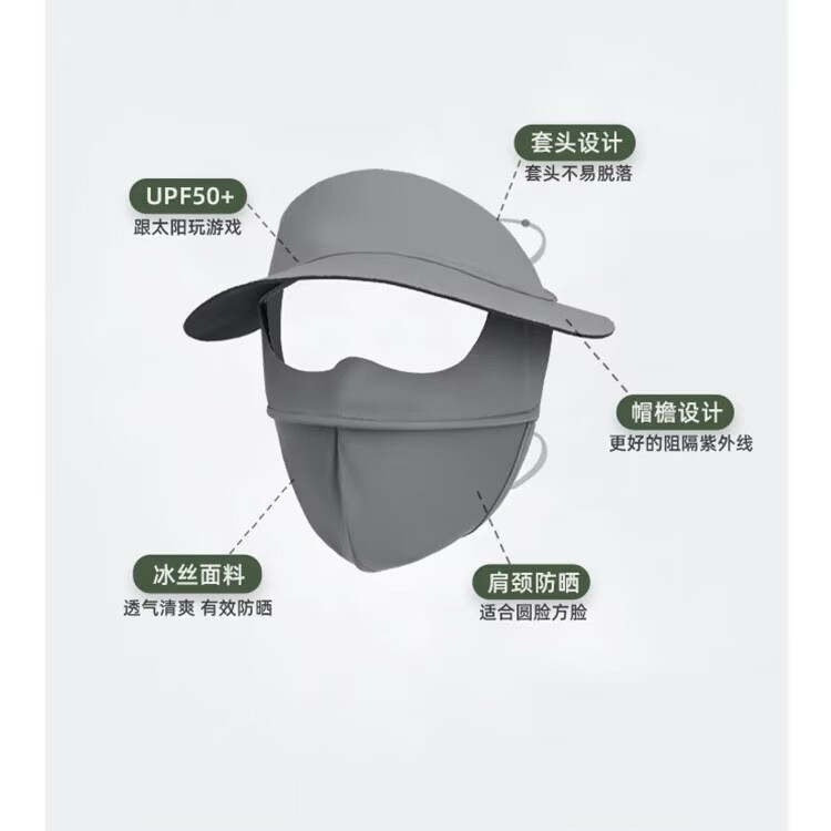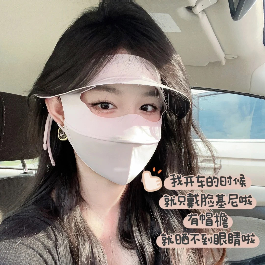 蕉下同款防晒口罩脸基尼黑胶帽檐全脸防紫外线立体冰丝防晒面罩