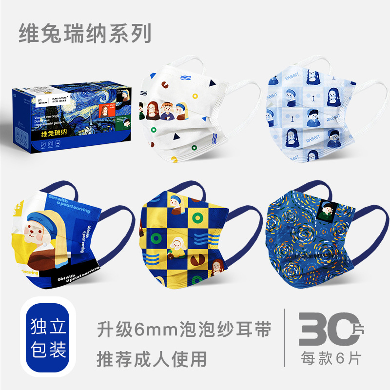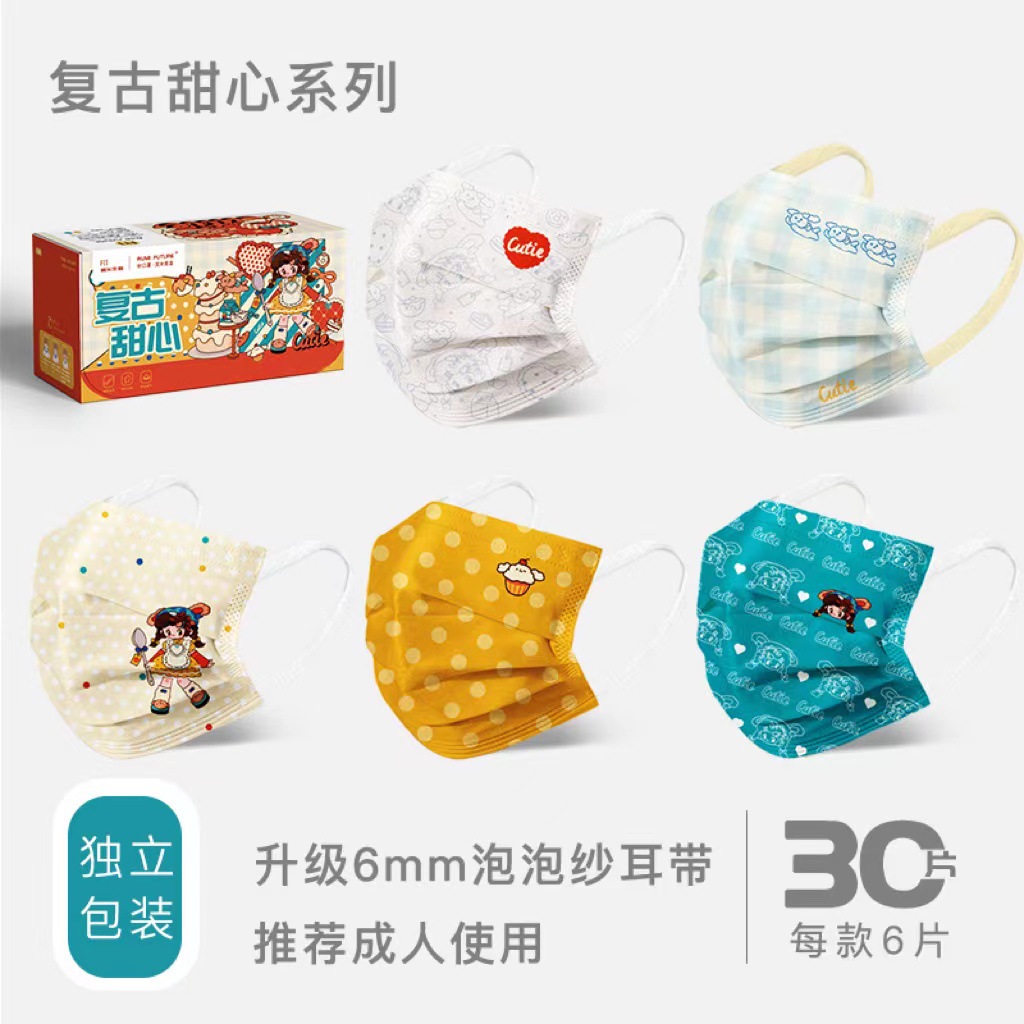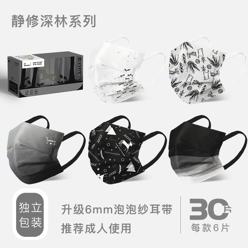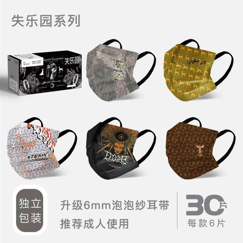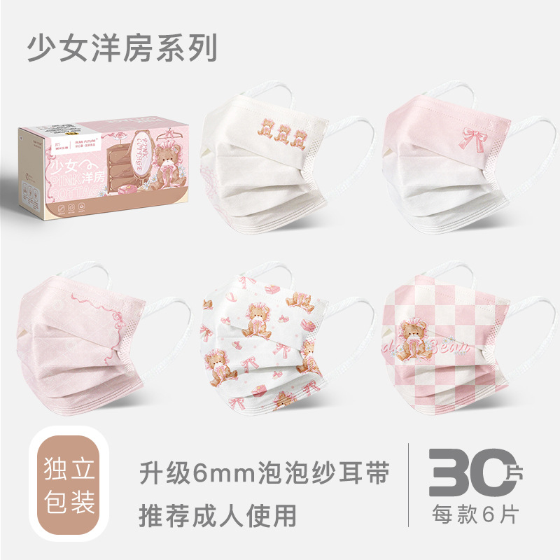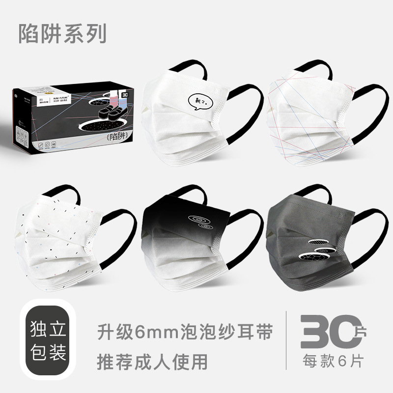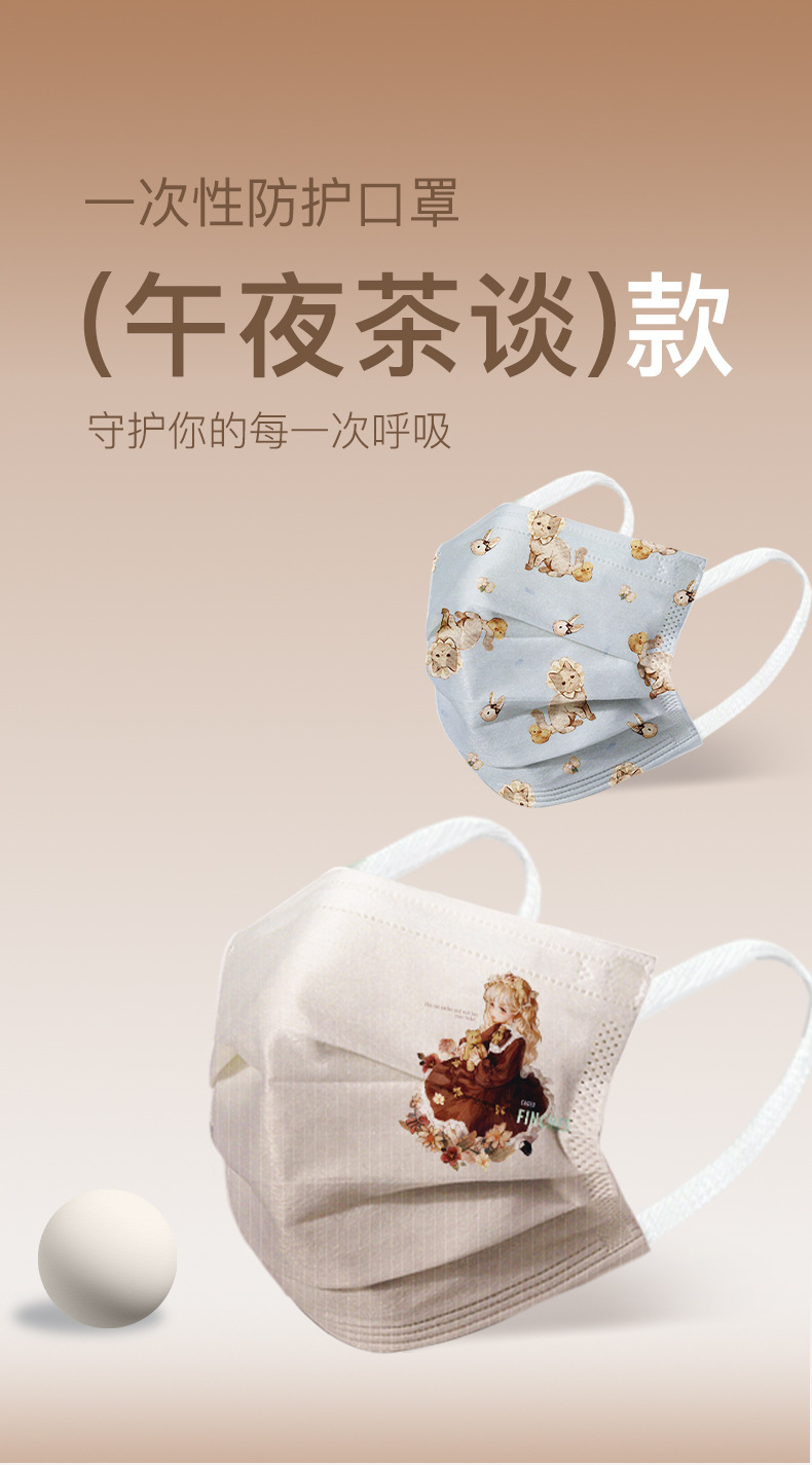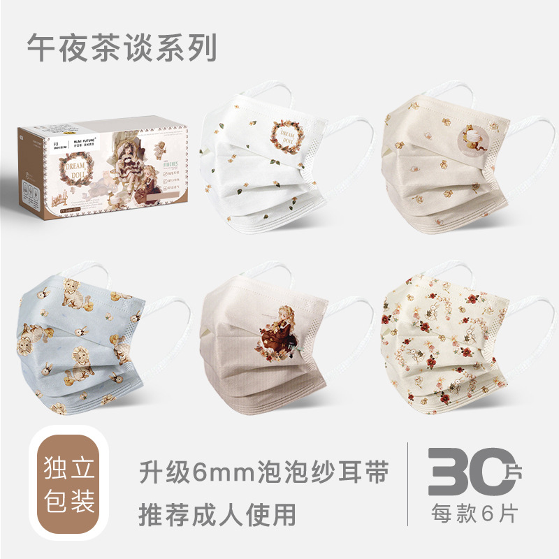 午夜茶谈系列一次性口罩独立包装高颜值男女透气成人三层防护批发