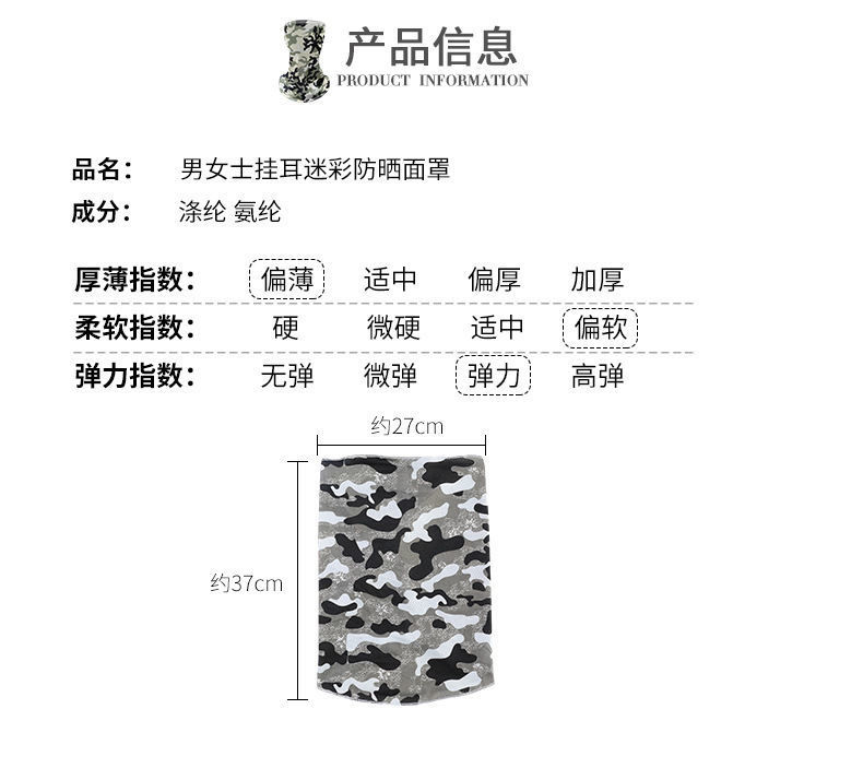 迷彩防晒面罩男防晒口罩挂耳冰丝口罩透气百变骑车脖套魔术头巾女