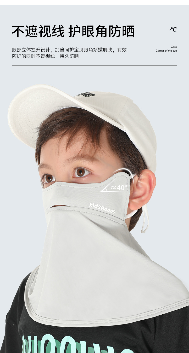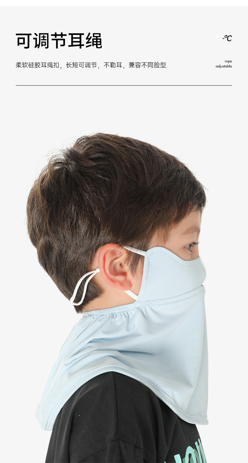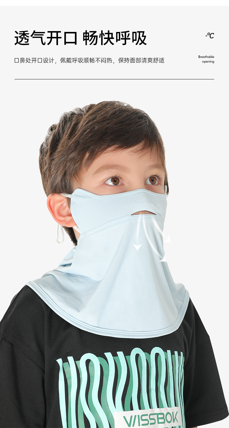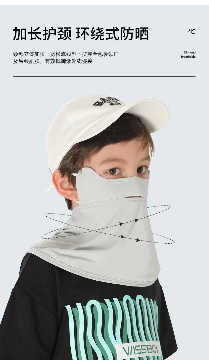 新款儿童防晒面罩夏季户外遮阳护眼角冰丝透气口罩加长护颈XRTJ03