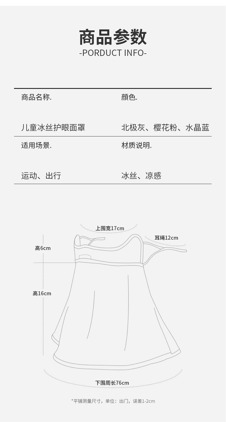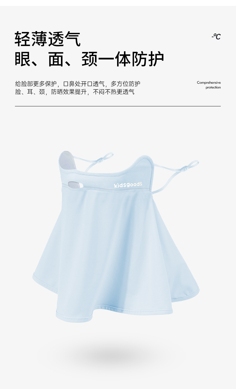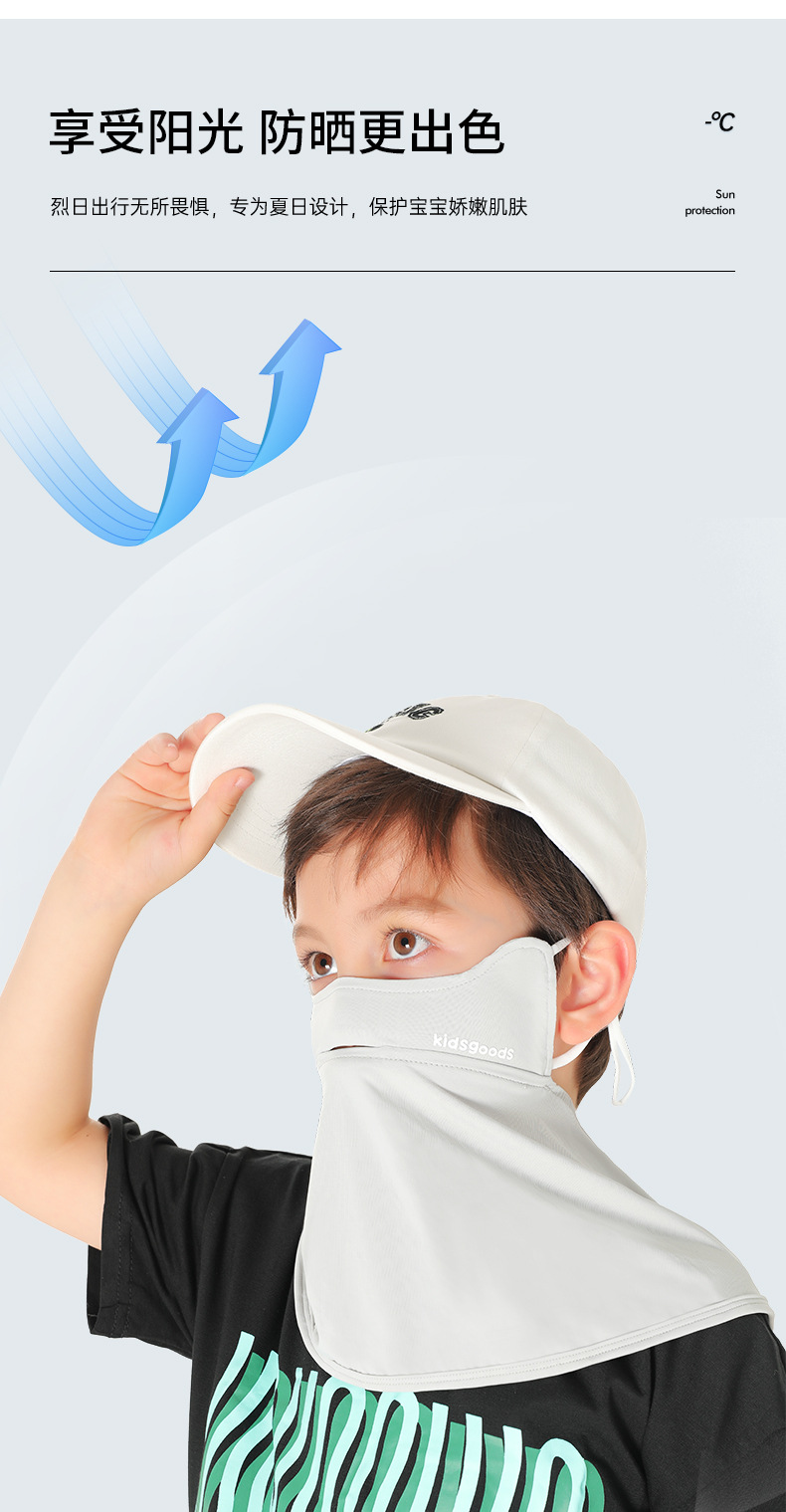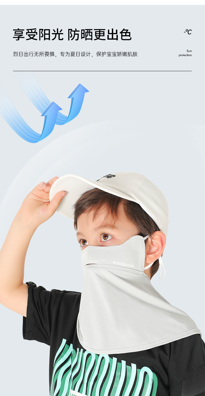 新款儿童防晒面罩夏季户外遮阳护眼角冰丝透气口罩加长护颈XRTJ03