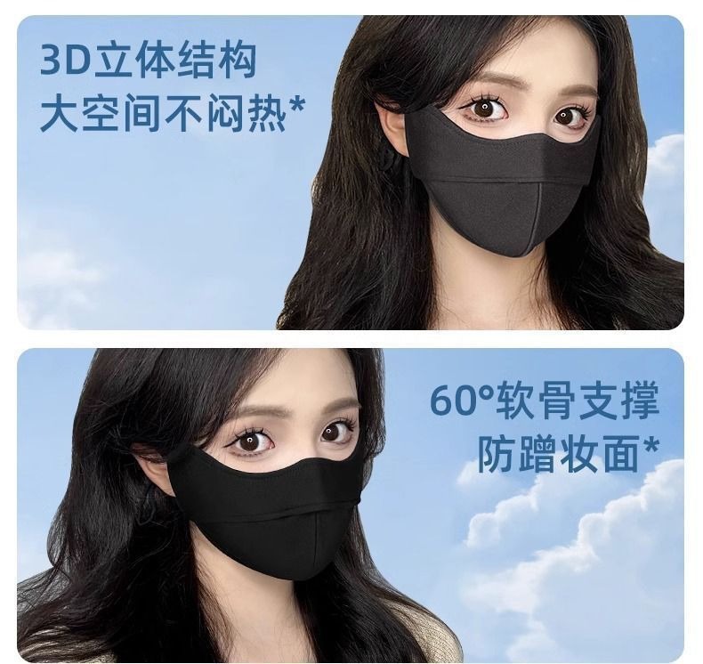 夏季防晒透气冰丝口罩面罩女户外骑行防尘遮阳护脸护眼角防尘脸罩