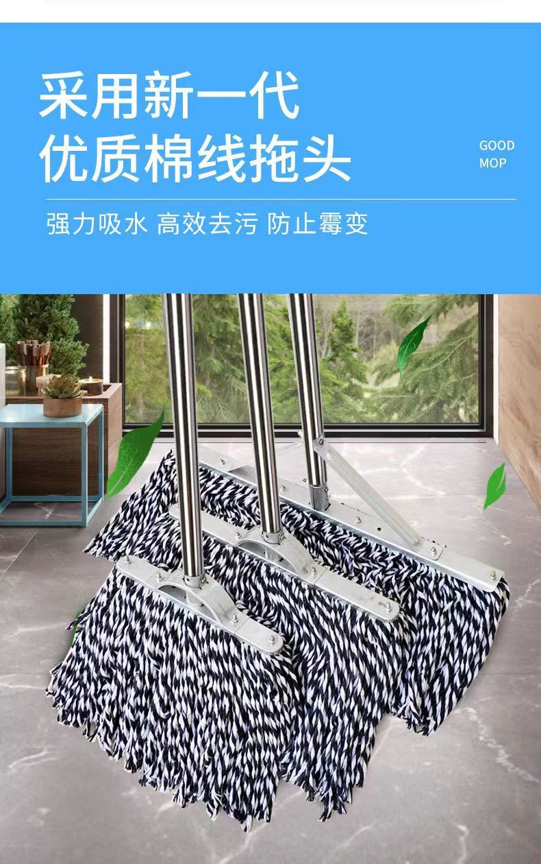 棉线拖把纯棉吸水钢杆木拖把老式老款墩布五彩线蓝白线拖地拖把