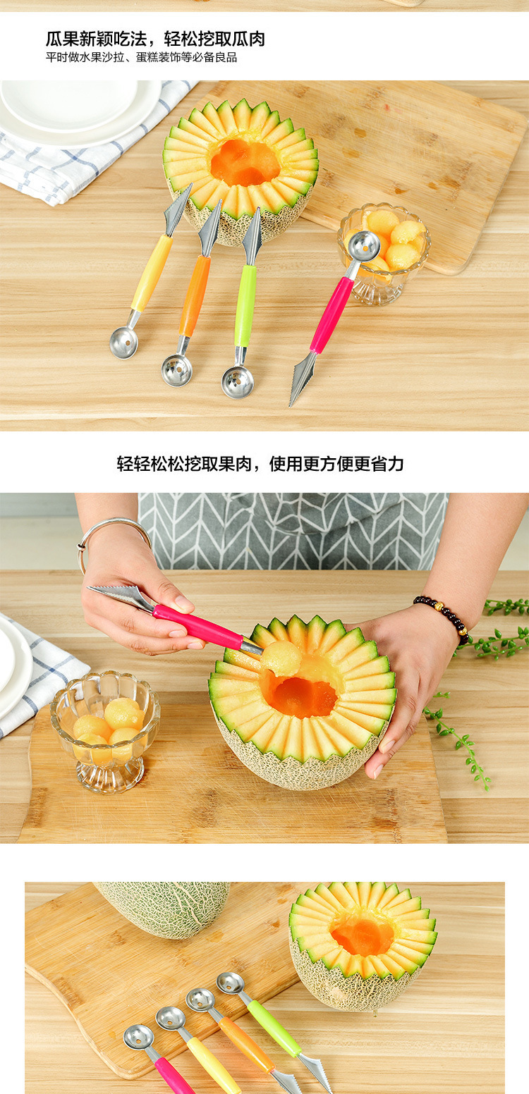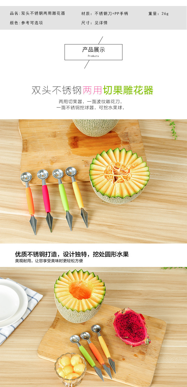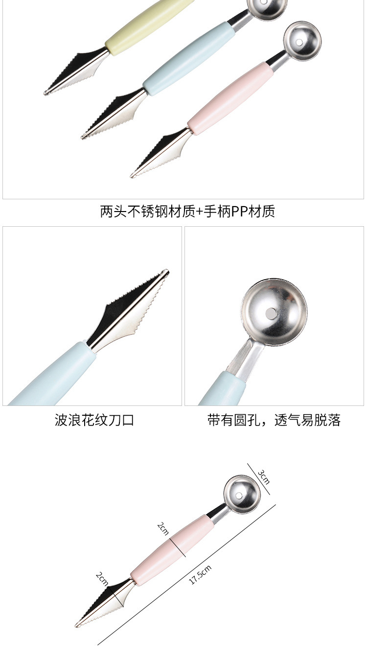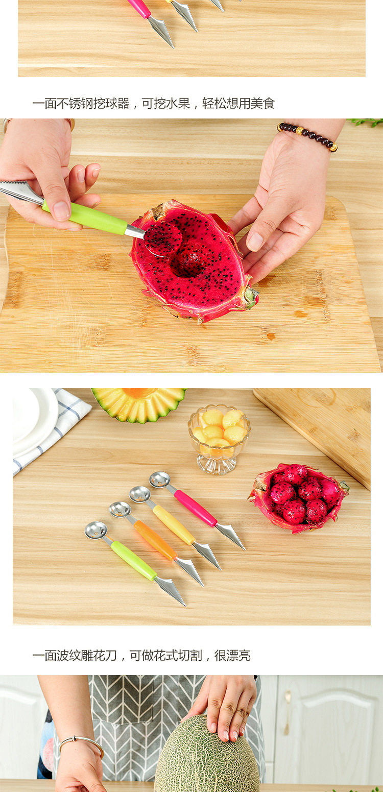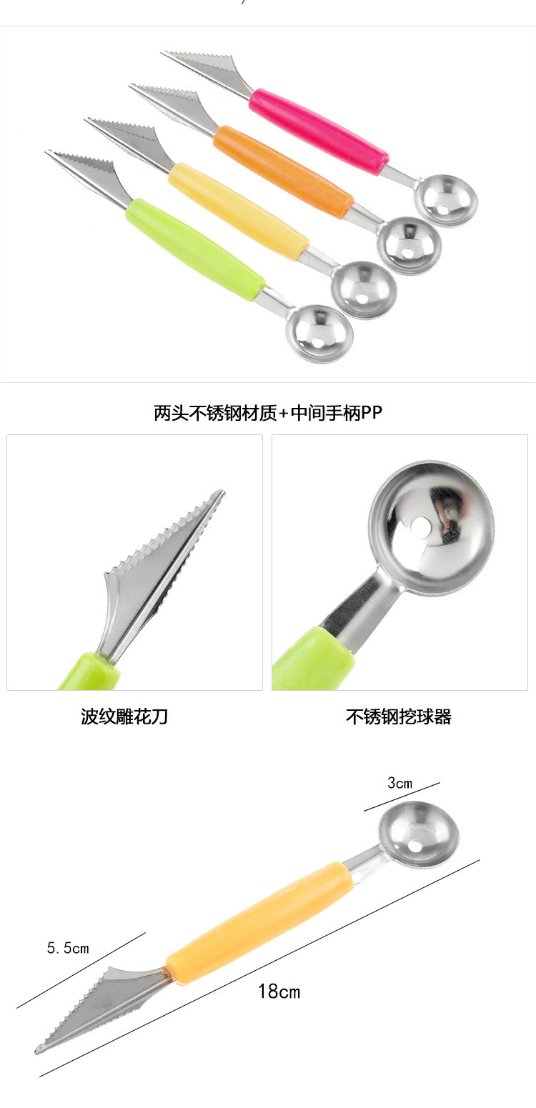 多功能水果挖球勺双头不锈钢波纹雕花刀西瓜水果挖勺子挖球器批发