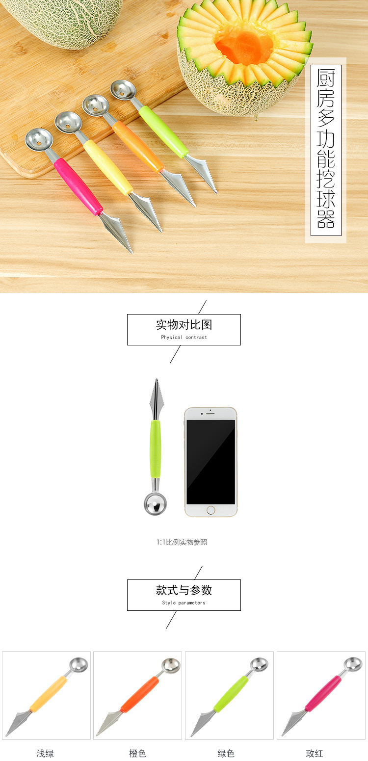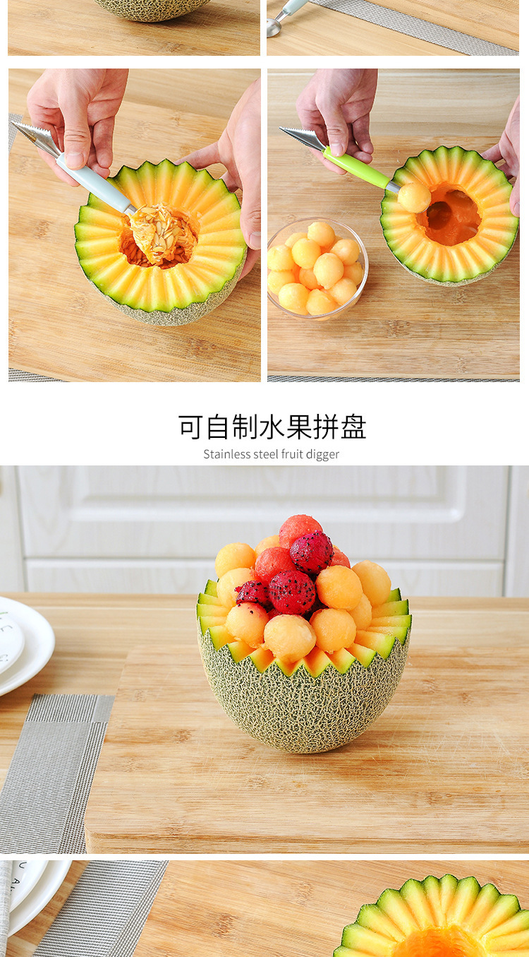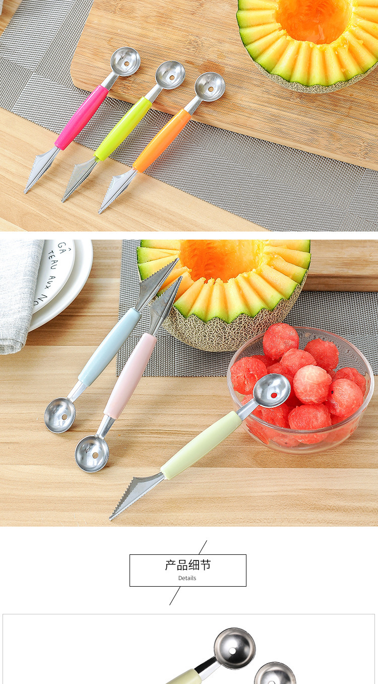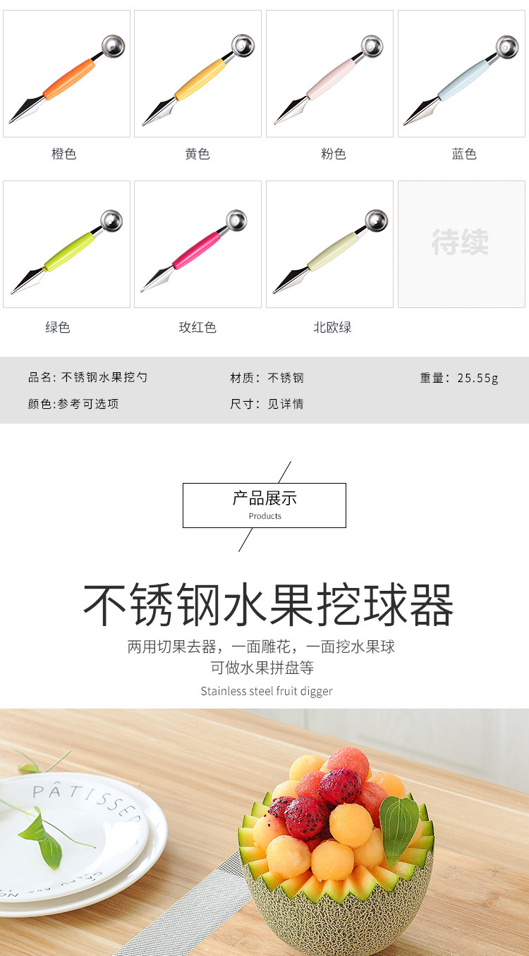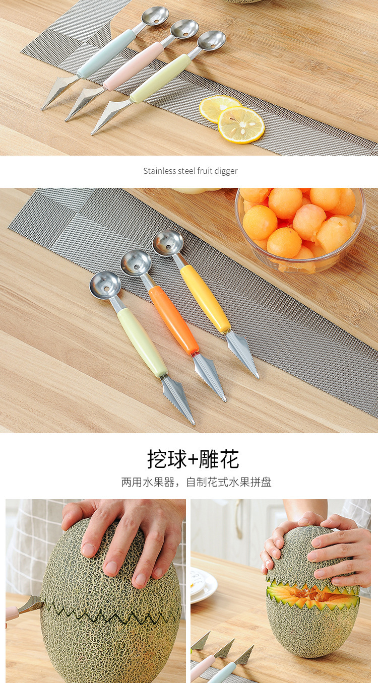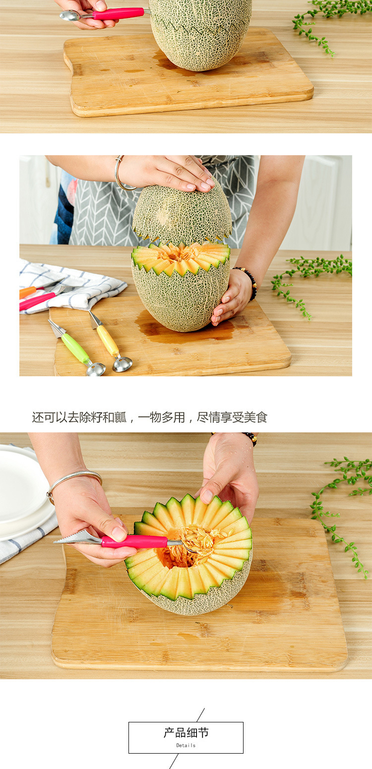 多功能水果挖球勺双头不锈钢波纹雕花刀西瓜水果挖勺子挖球器批发