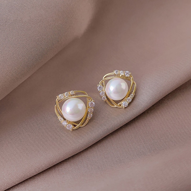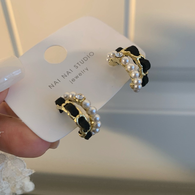 925银针复古珍珠耳环女高级感韩国设计轻奢耳钉小众ins风耳饰批发