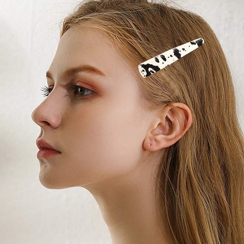 新款复古真皮豹纹奶牛纹一字夹韩版简约碎发侧边夹亚马逊速卖通