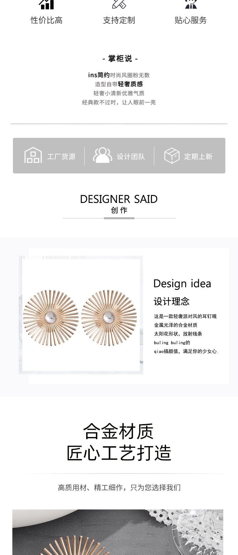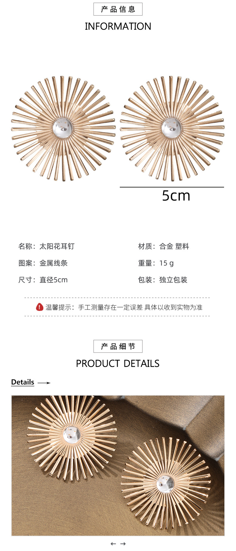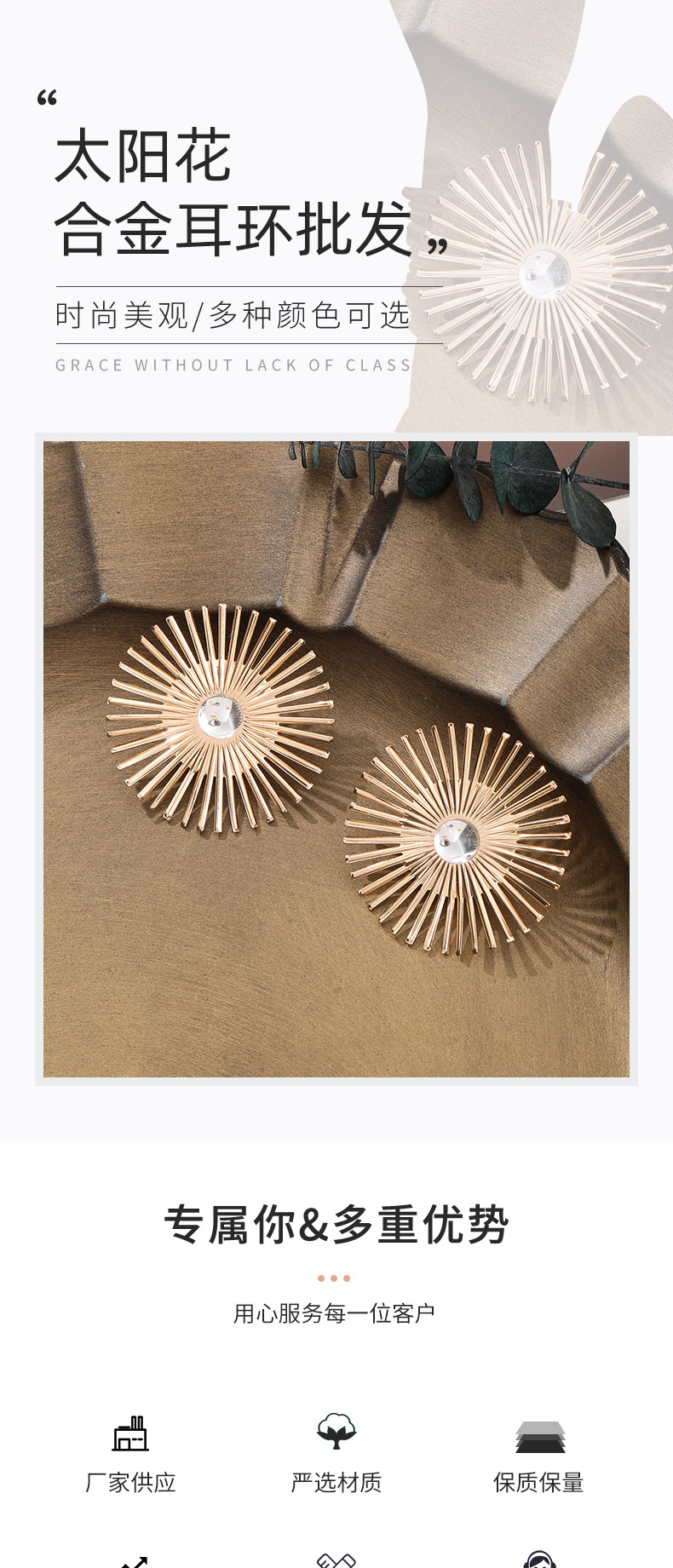 欧美风夸张大气圆圈耳环合金太阳花时尚女士耳环亚马逊速卖通