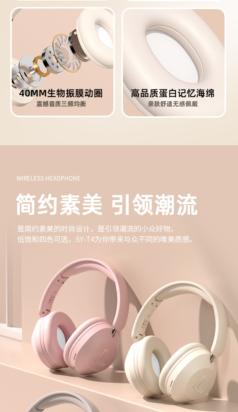 SY-T4 跨境蓝牙耳机头戴式爆款无线全包耳长续航游戏运动新款耳麦