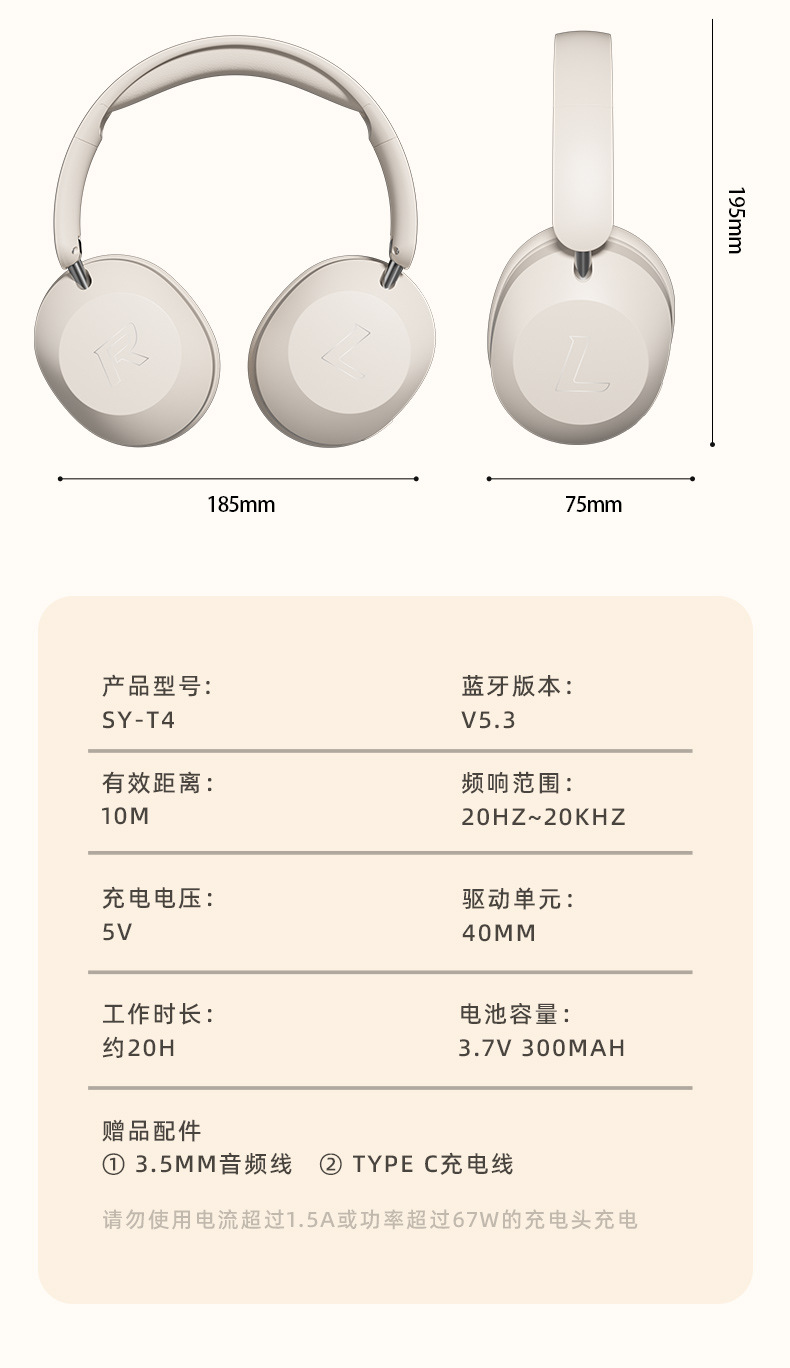 内含:Type-C充电线,AUX音频线,说明书,彩盒