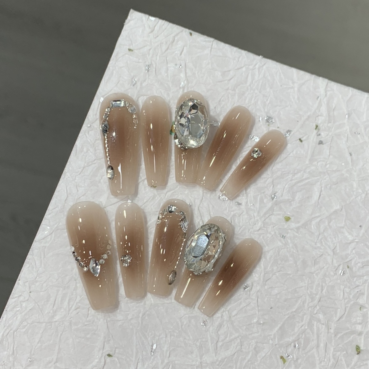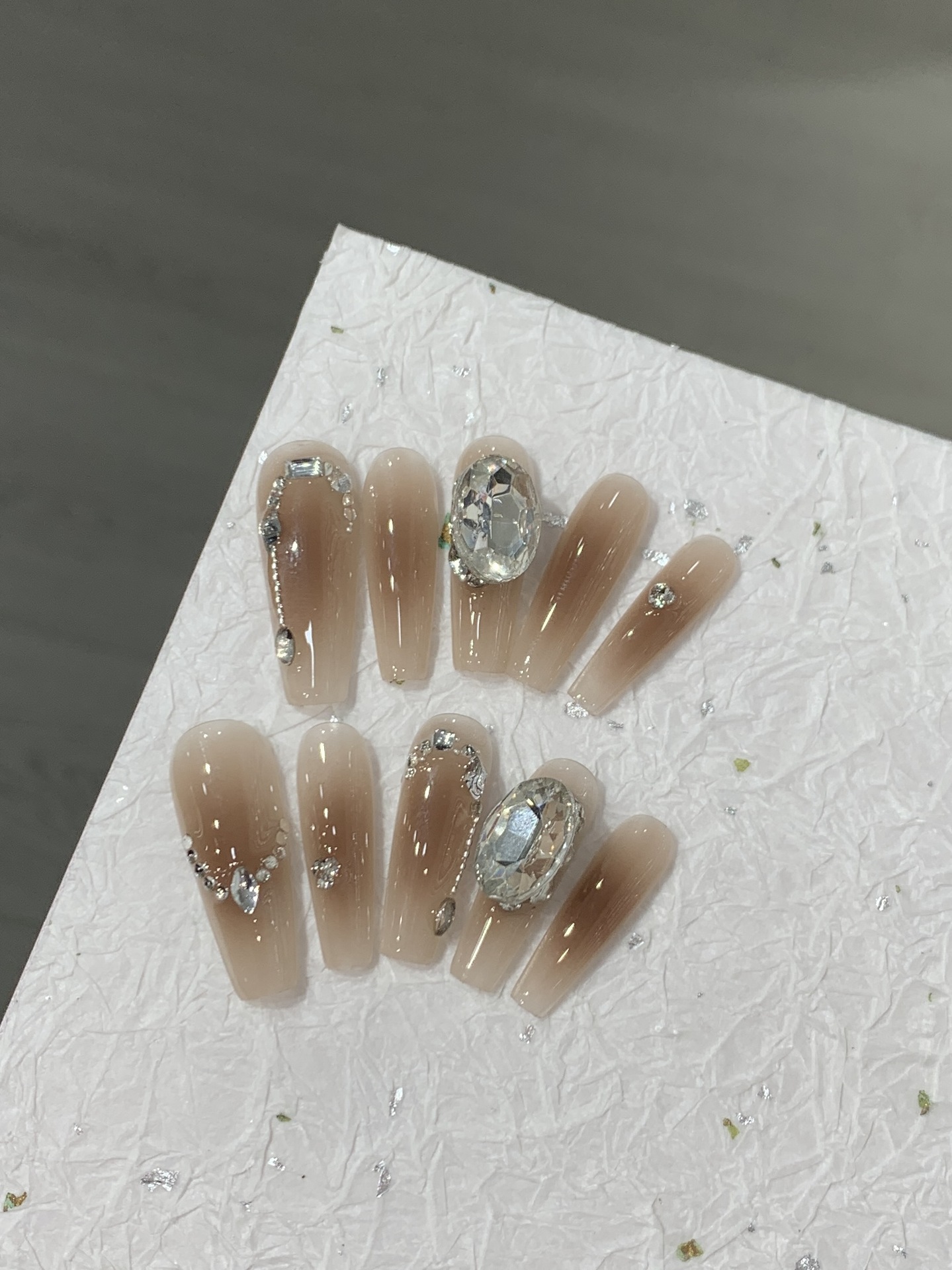 一只顾美甲厂【原创实拍】秋冬显白棕色腮红晕染氛围感美拉德指甲