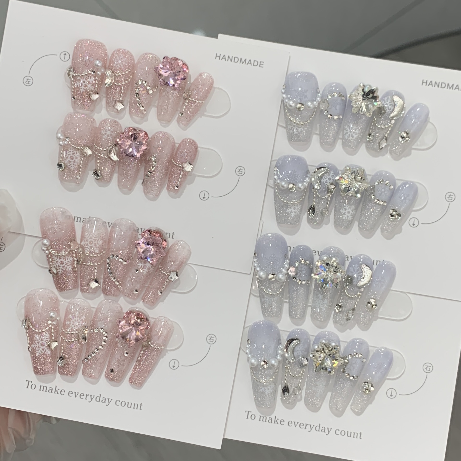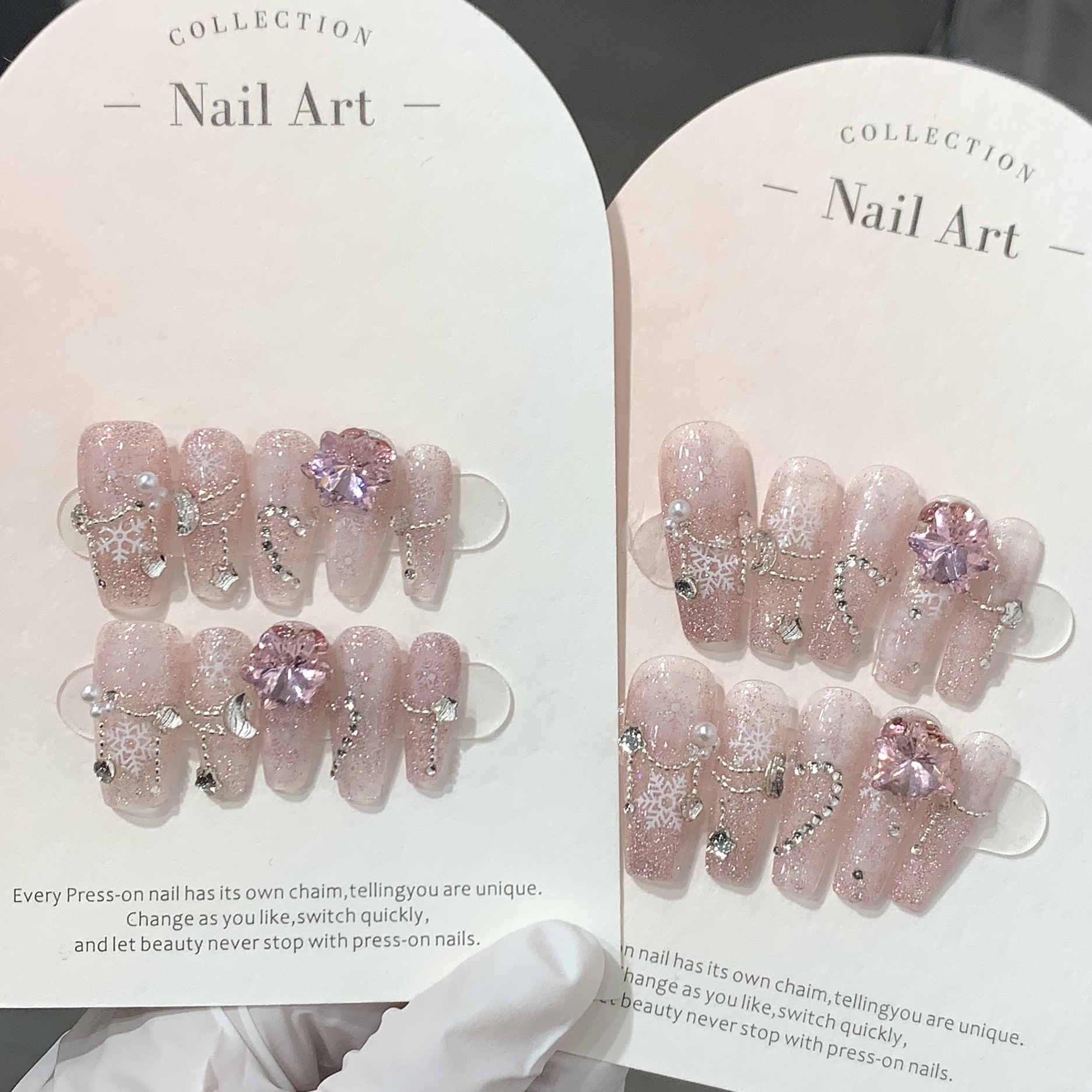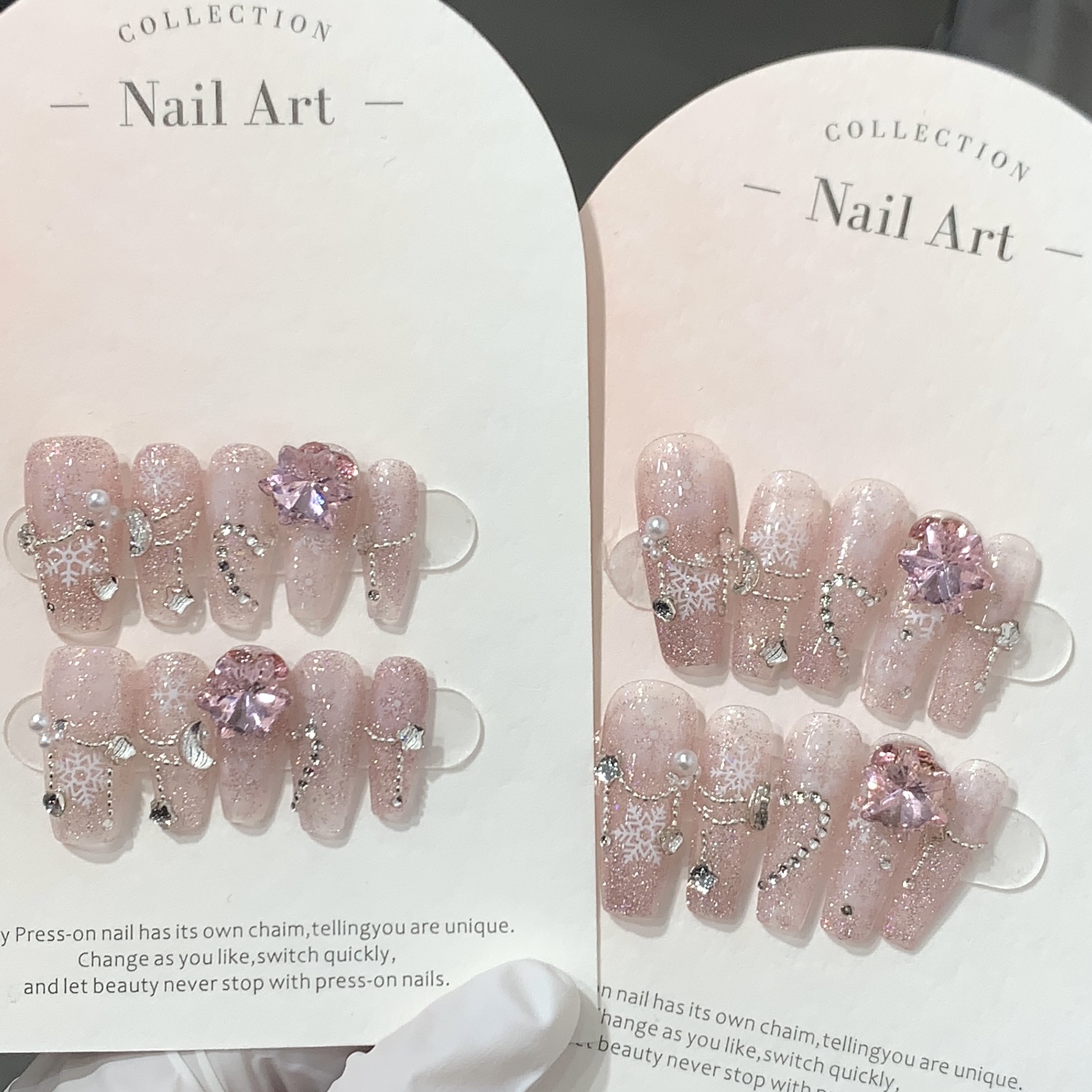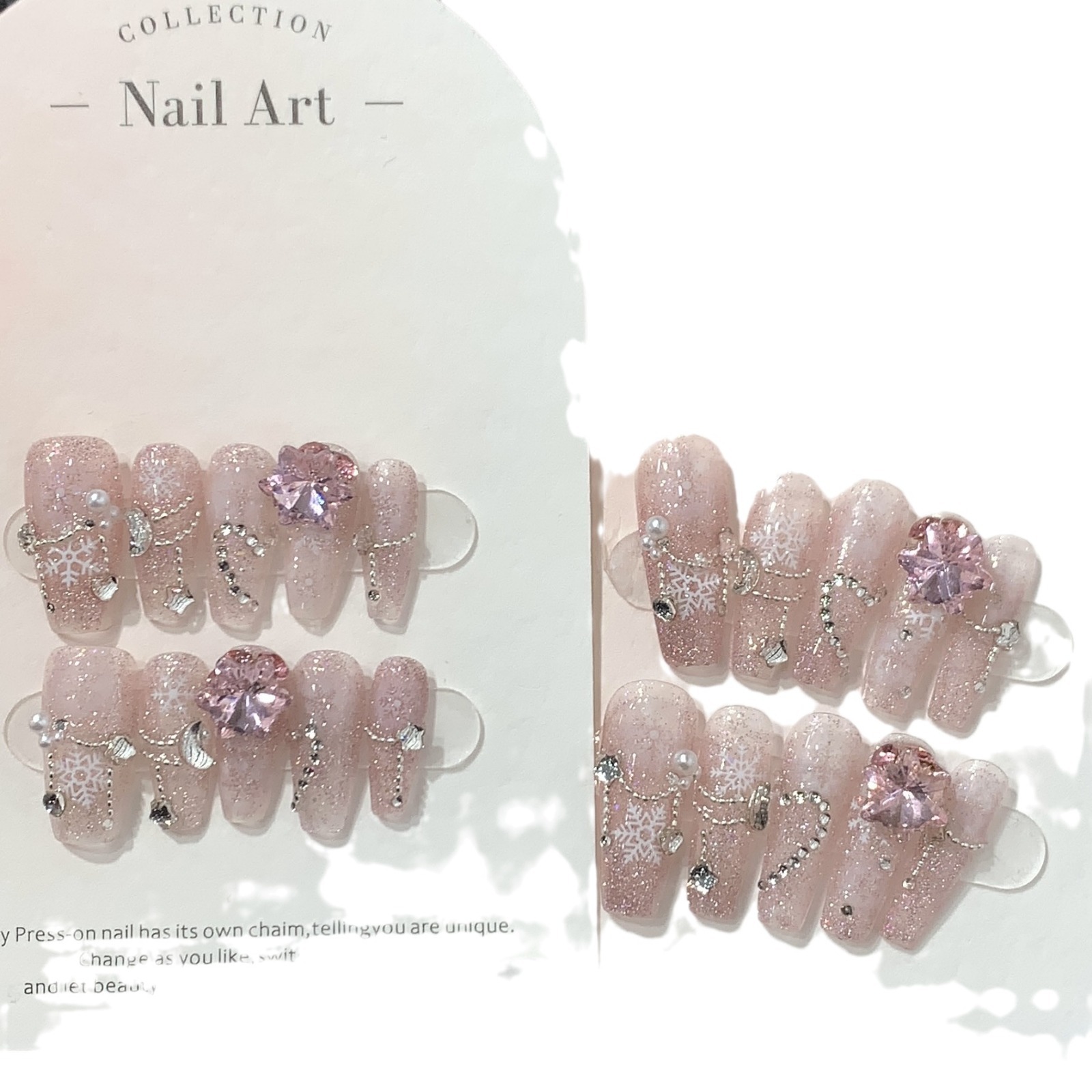 一只顾美甲厂【原创实拍】雪天圣诞组合系列雪花钢珠粉雪时刻指甲