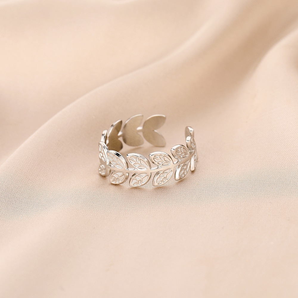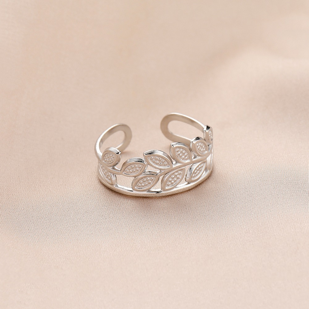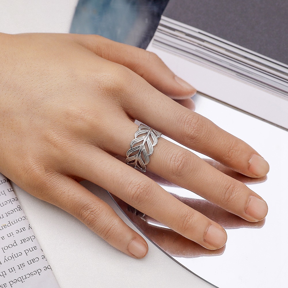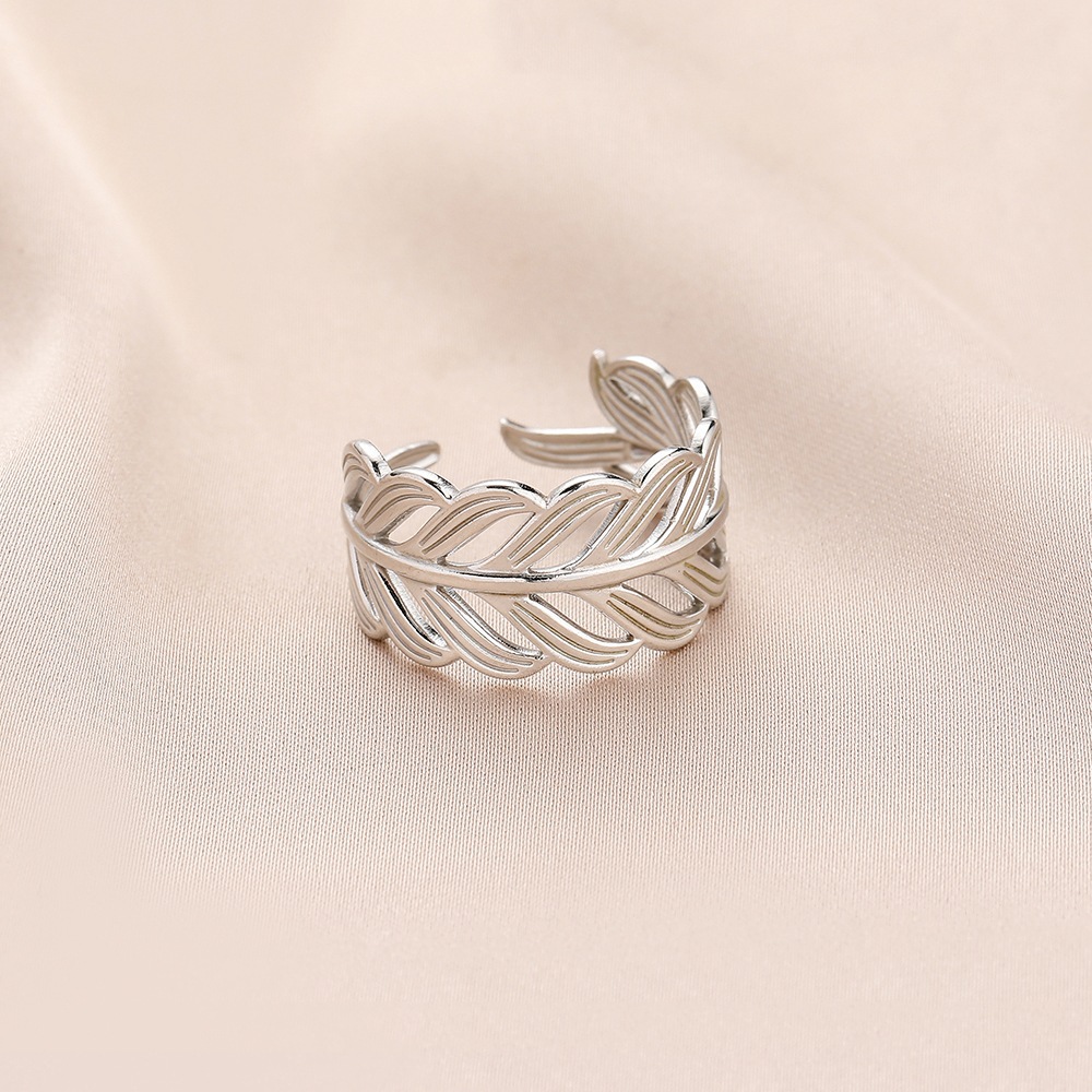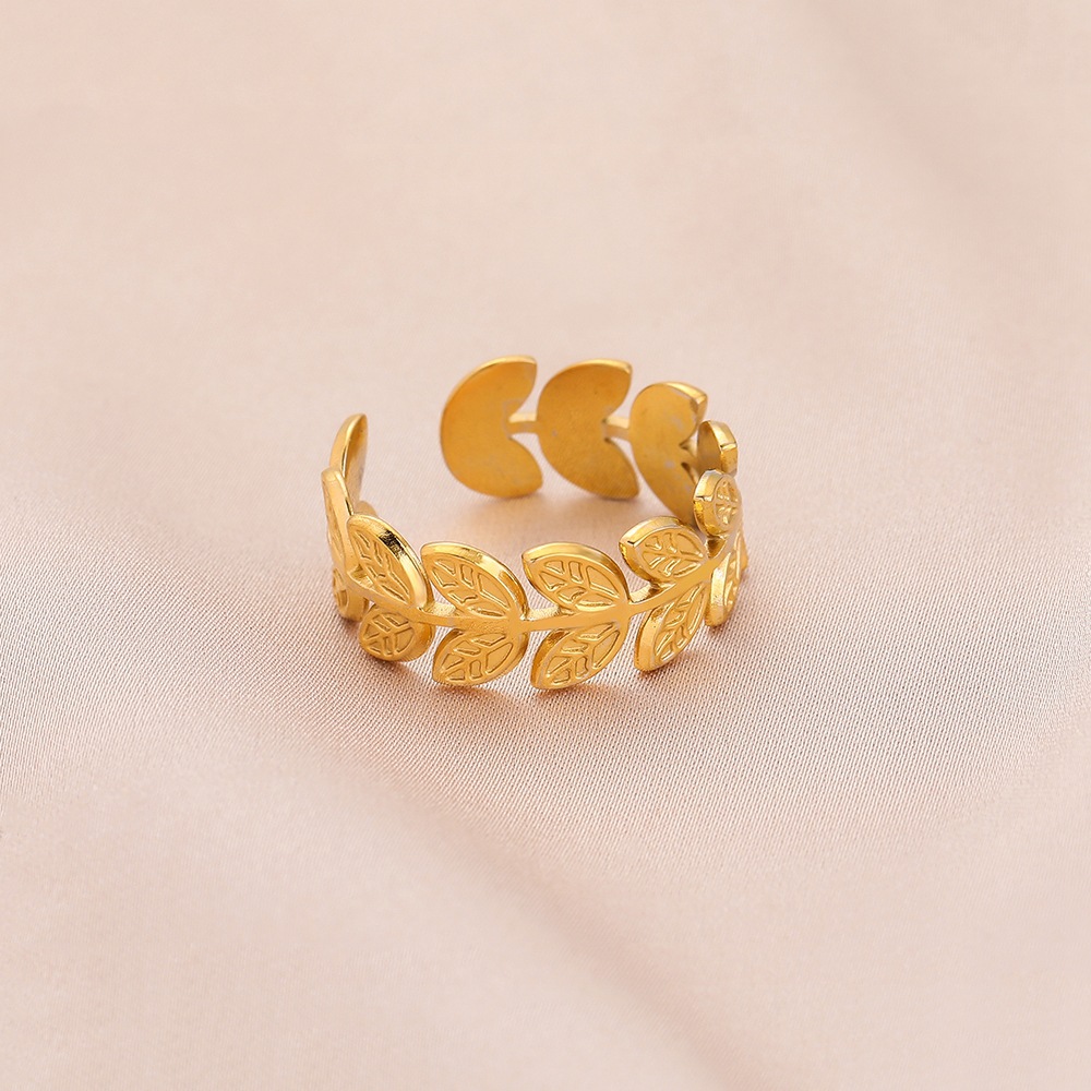欧美简约树叶不锈钢开口可调节戒指个性爱心活口钛钢指环手饰品女