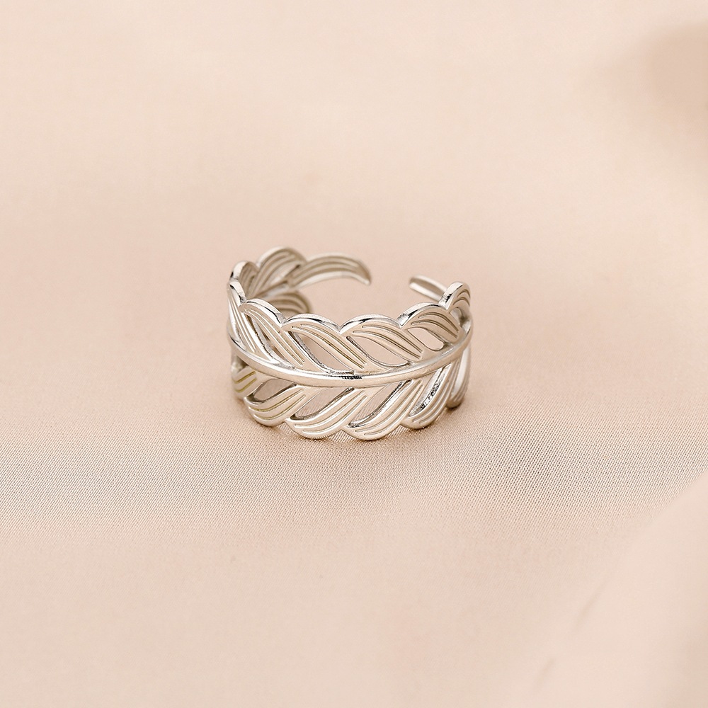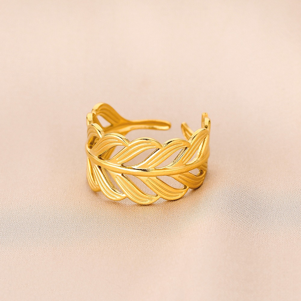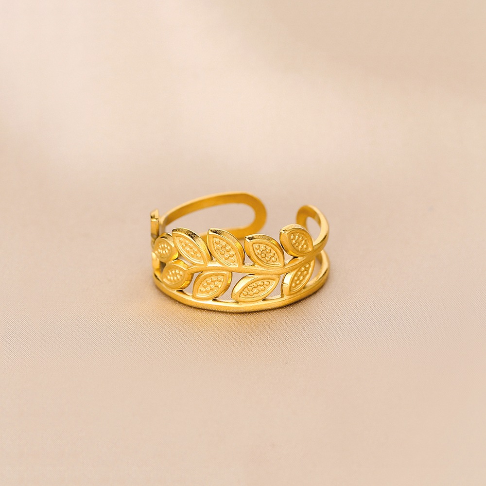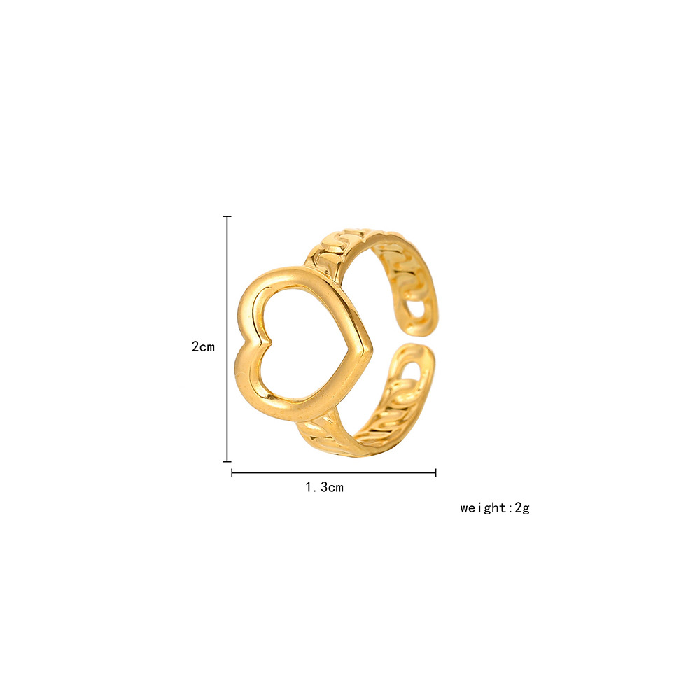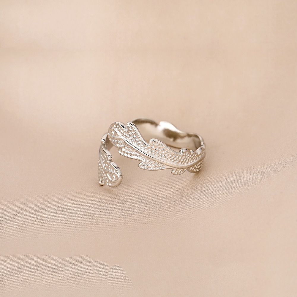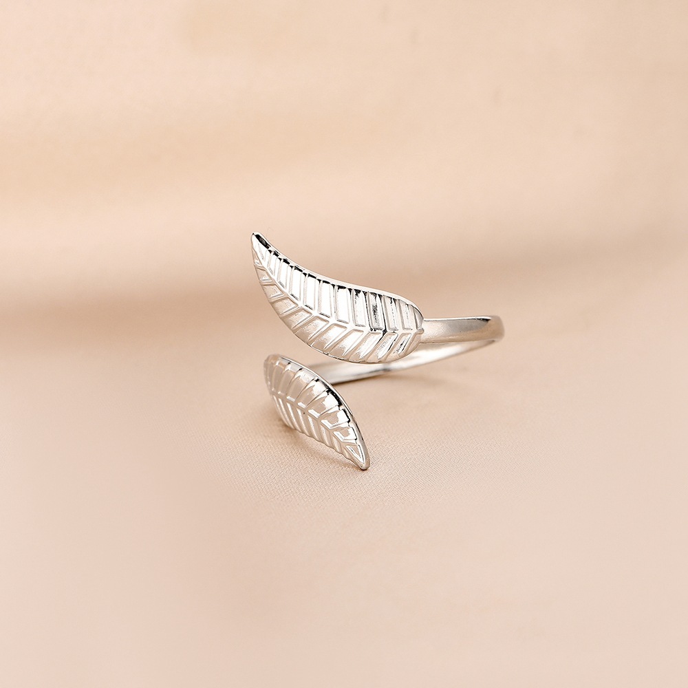 欧美简约树叶不锈钢开口可调节戒指个性爱心活口钛钢指环手饰品女
