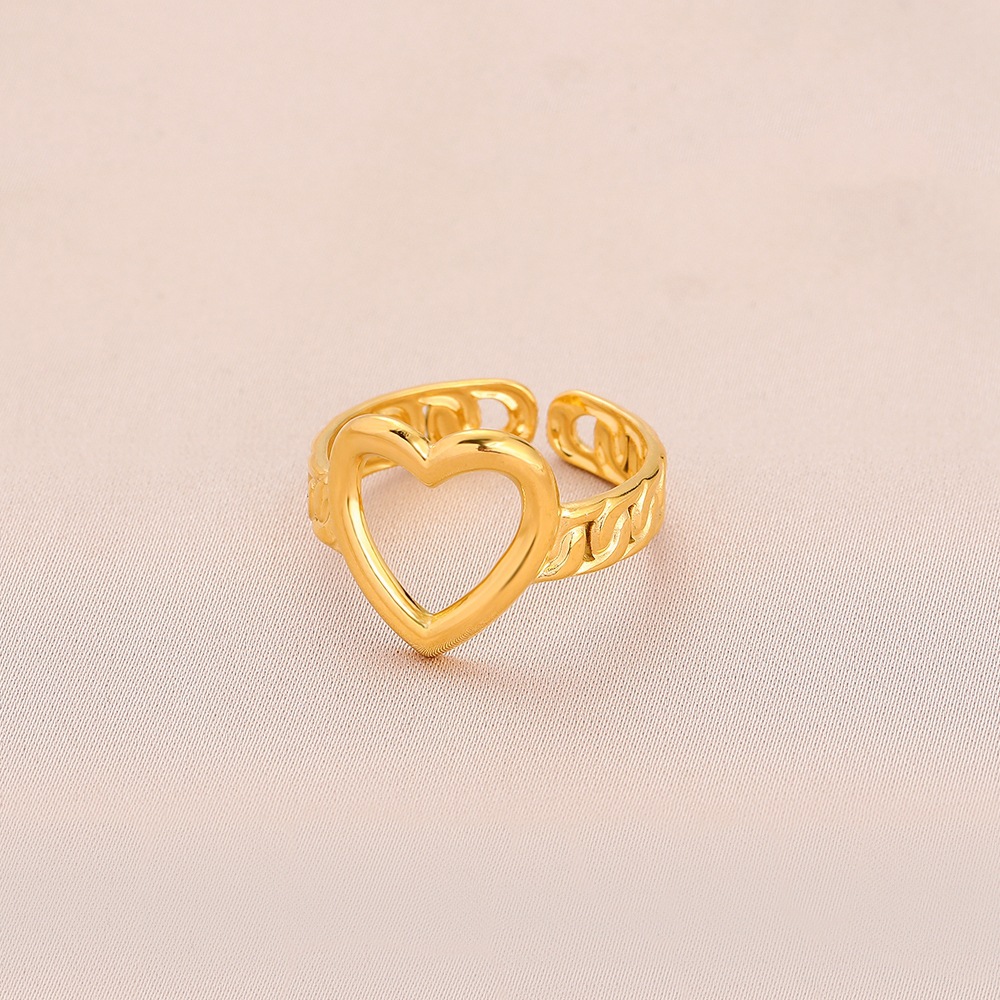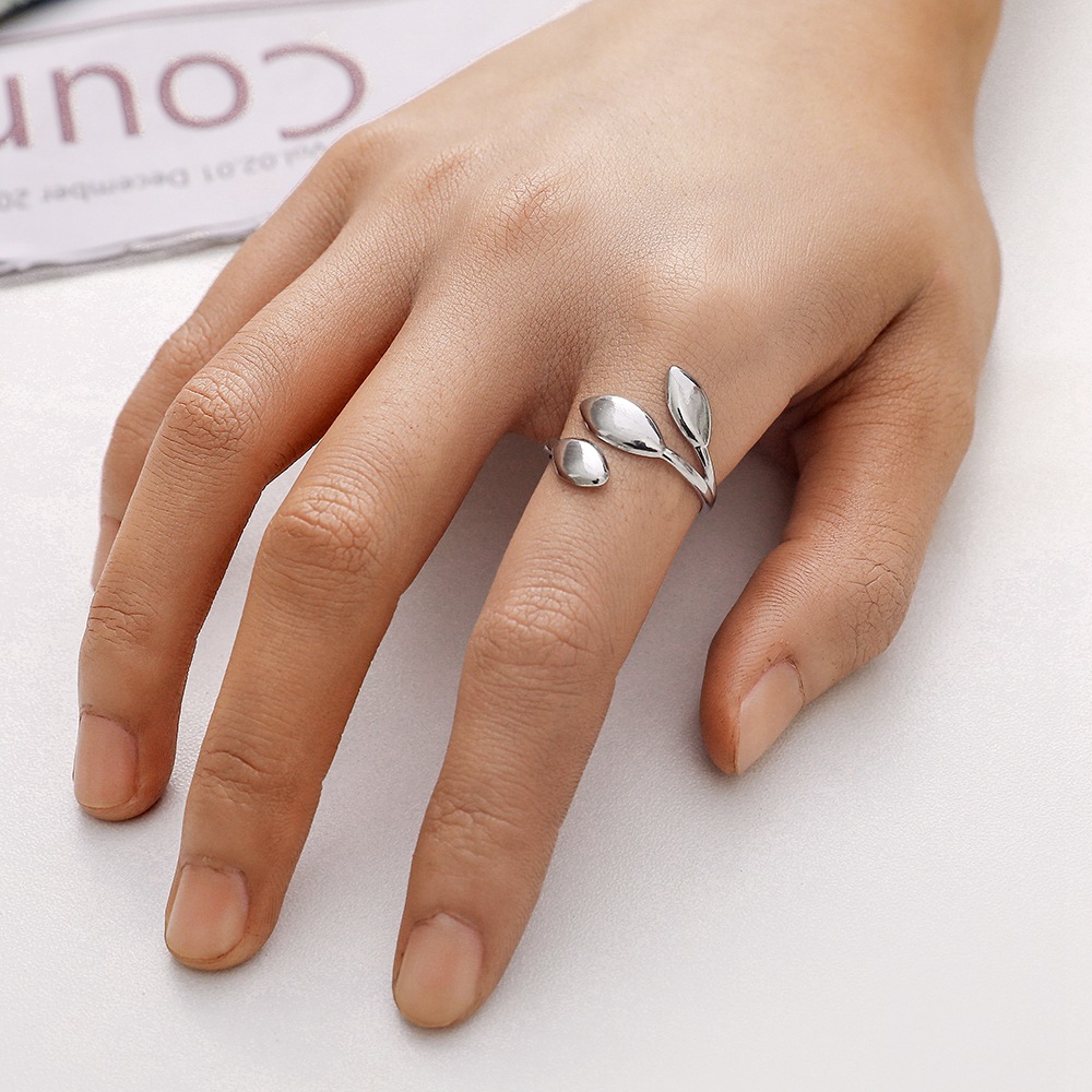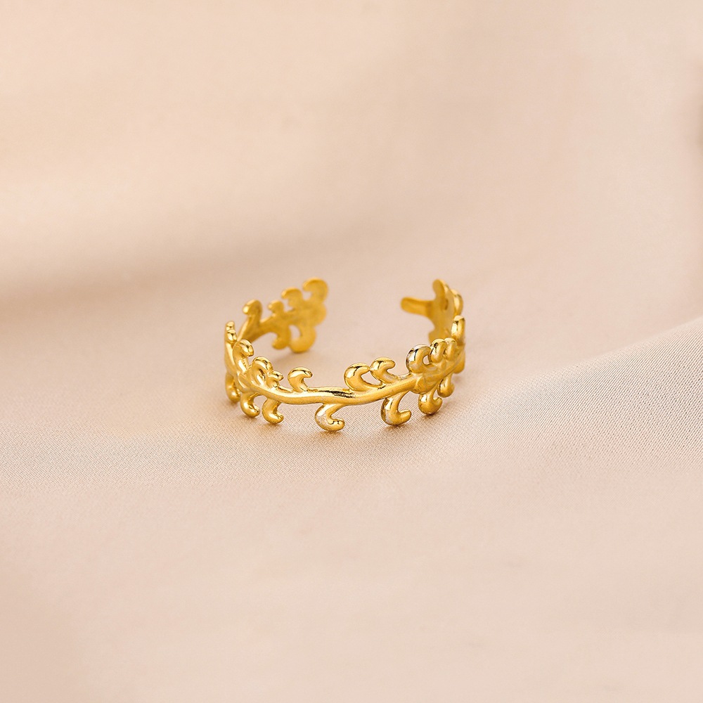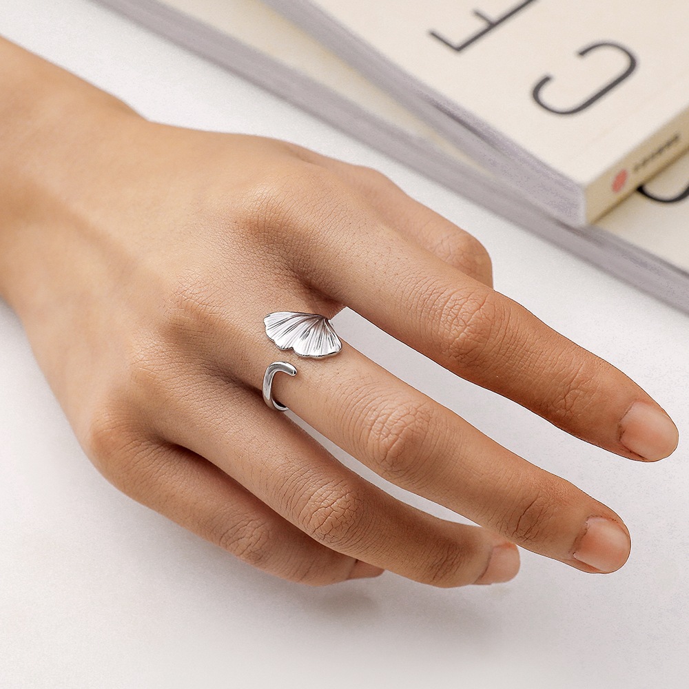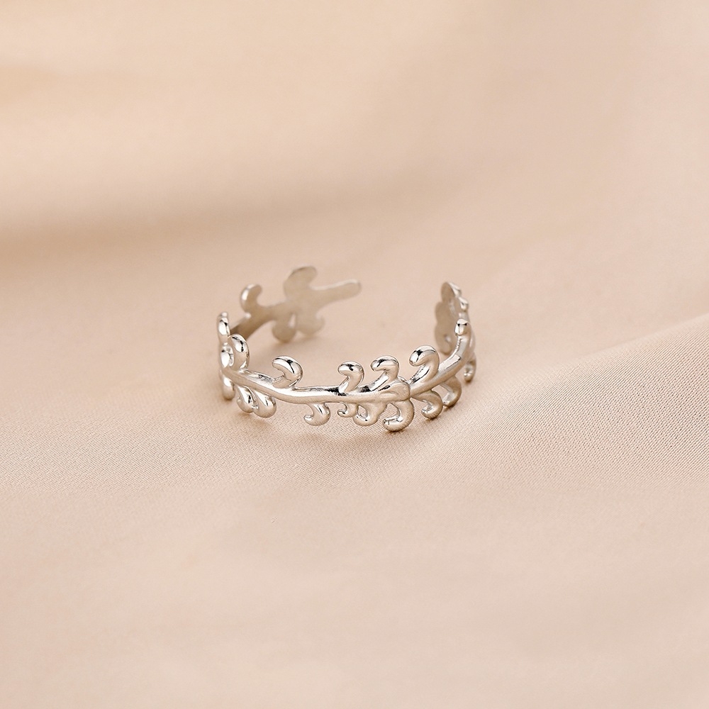 欧美简约树叶不锈钢开口可调节戒指个性爱心活口钛钢指环手饰品女