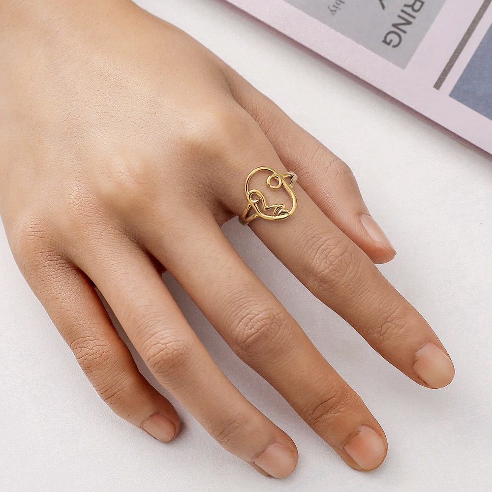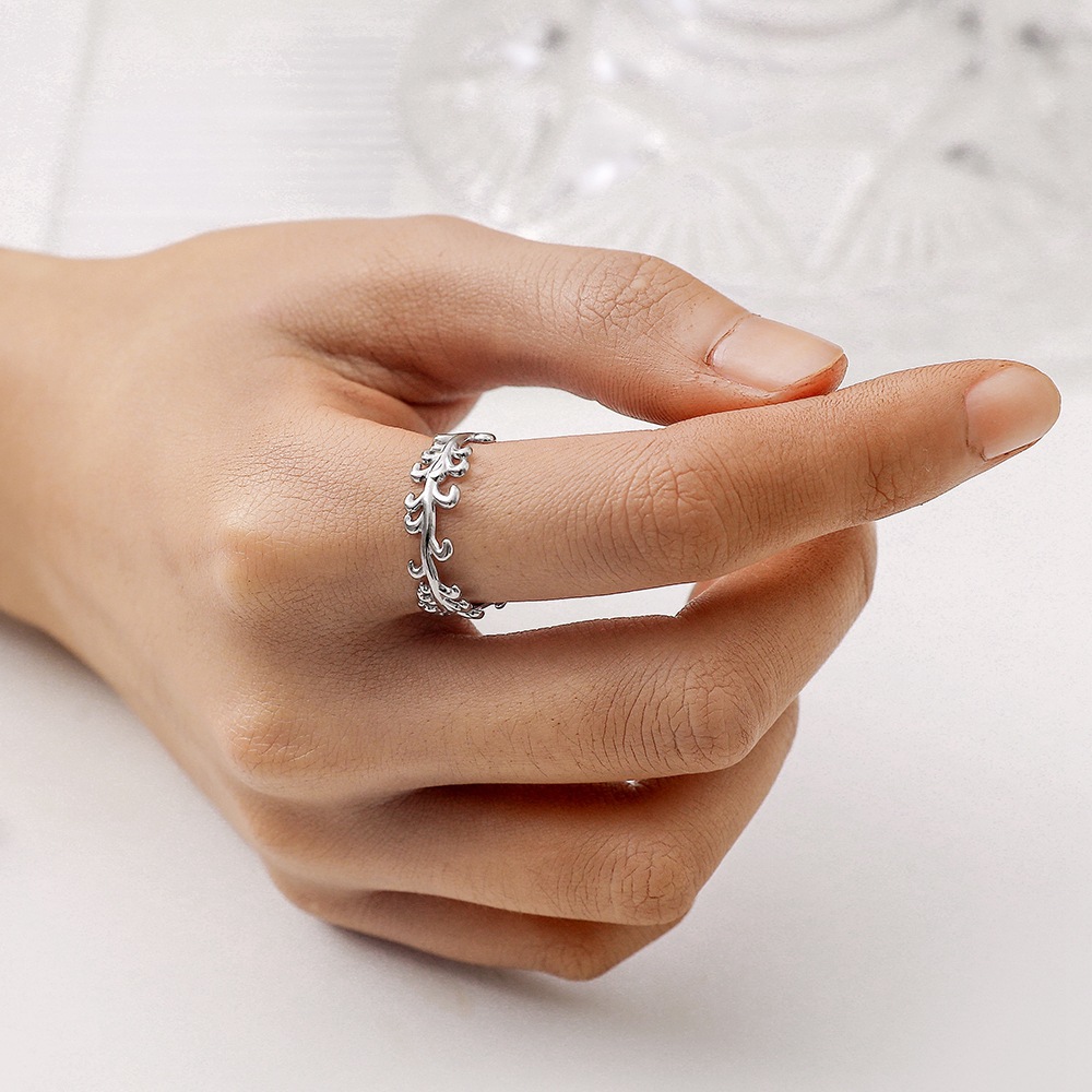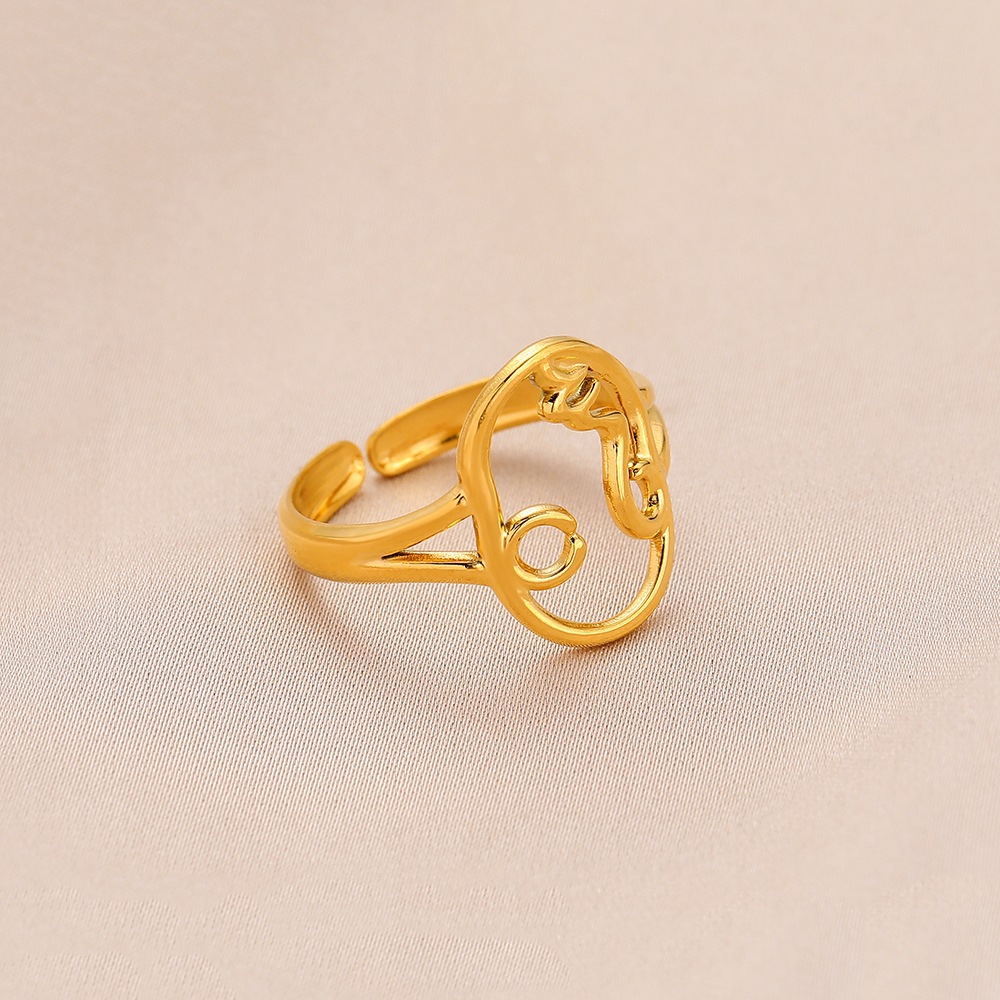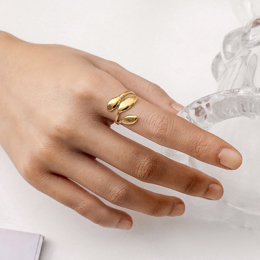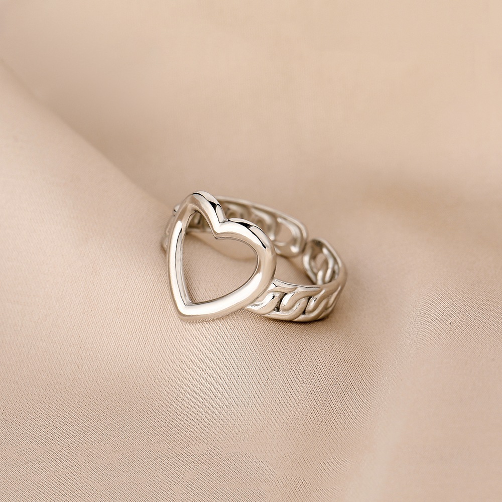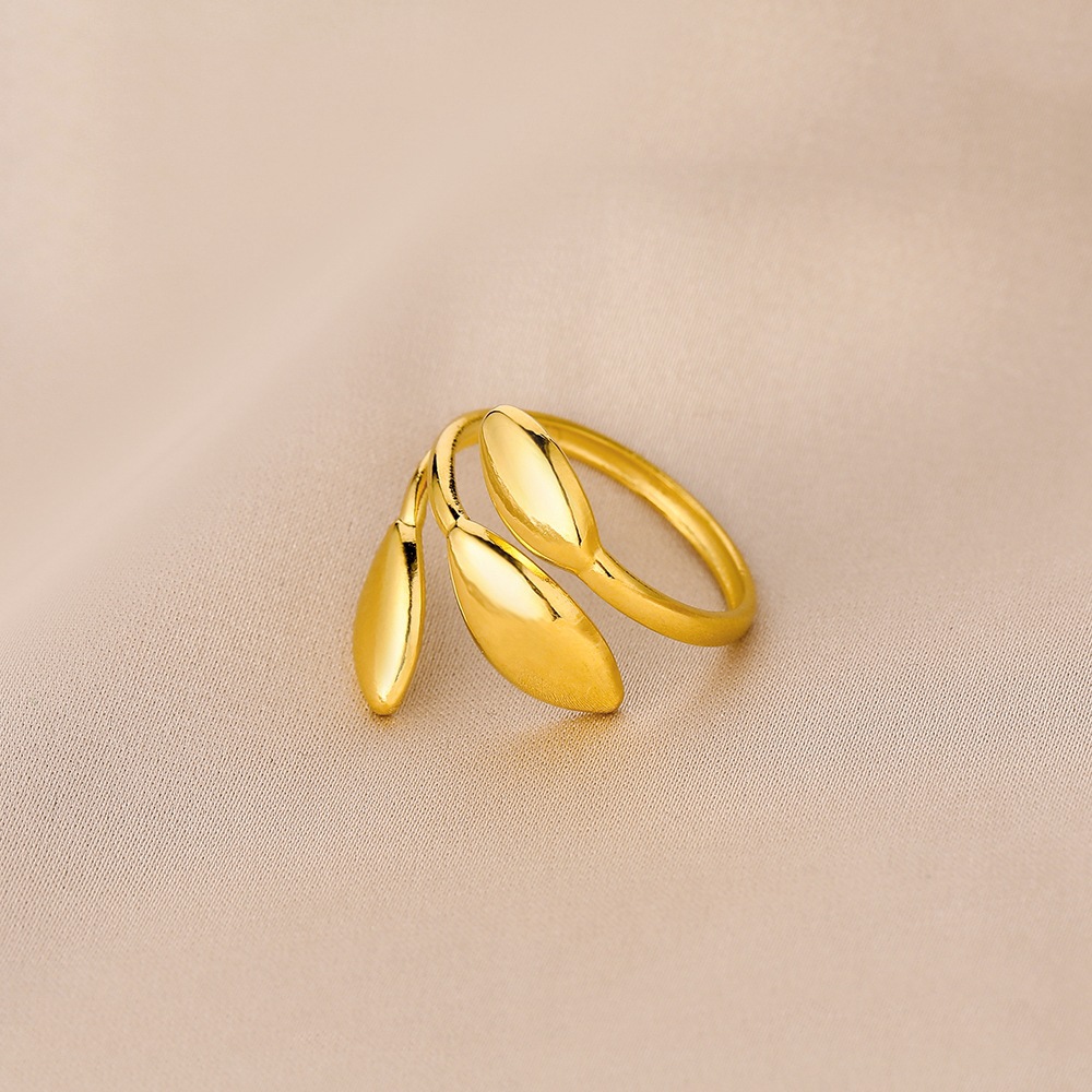 欧美简约树叶不锈钢开口可调节戒指个性爱心活口钛钢指环手饰品女