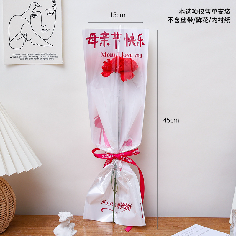 女神节包花材料批发花店新款opp单支花束包装母亲节diy花束包装袋
