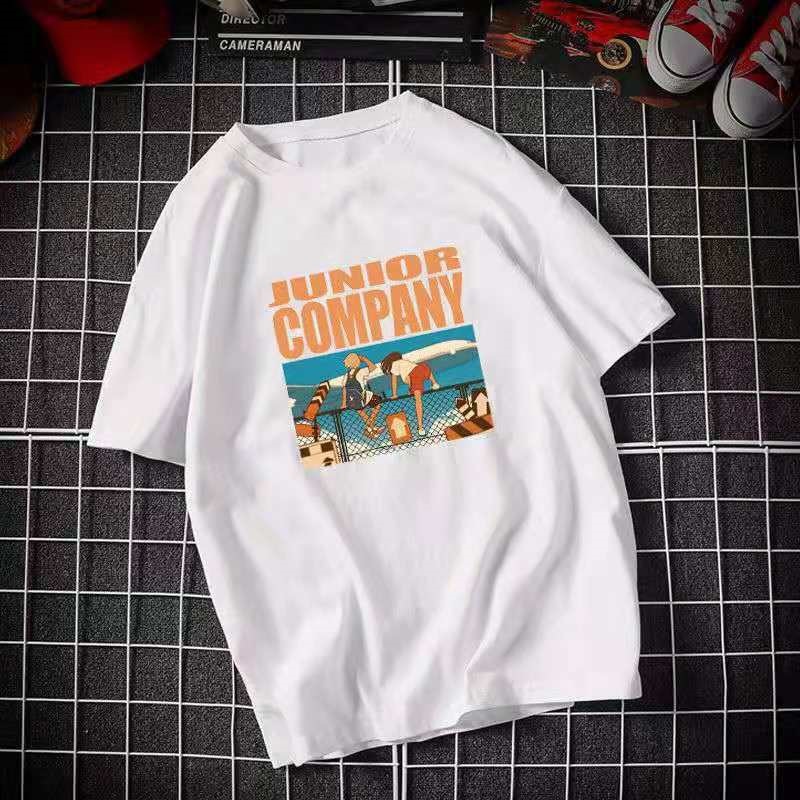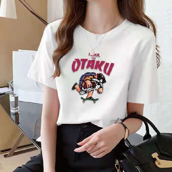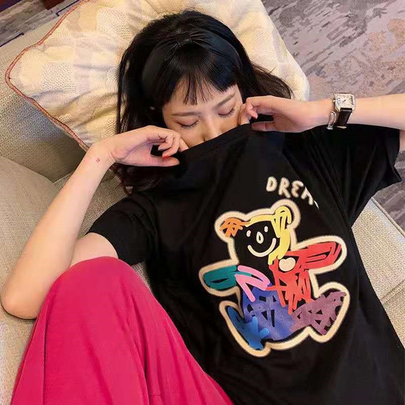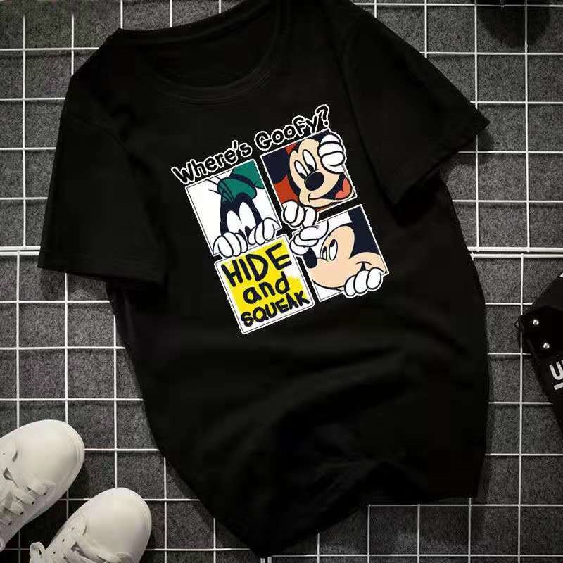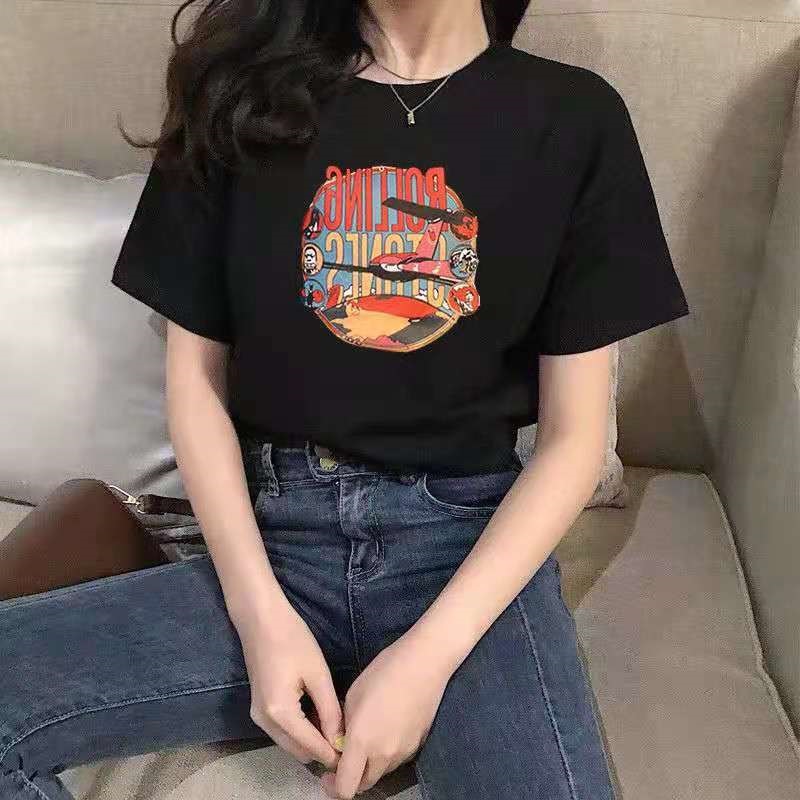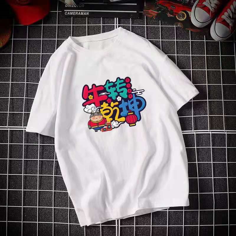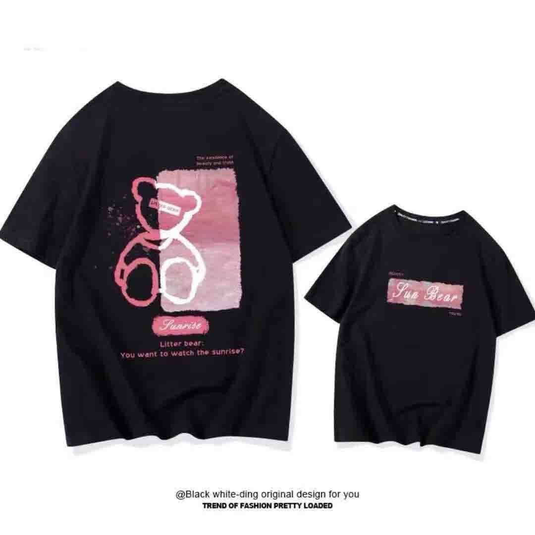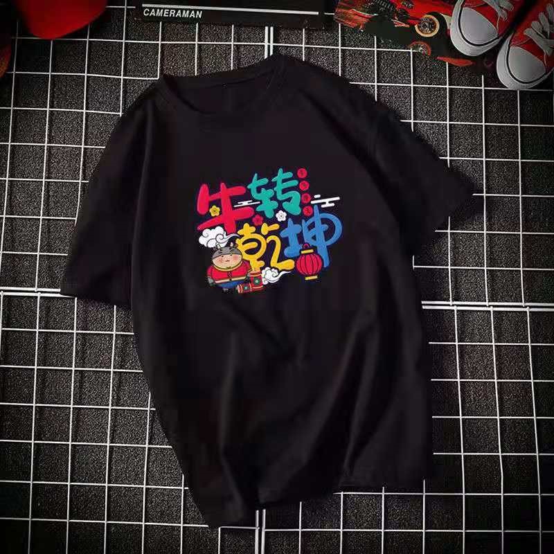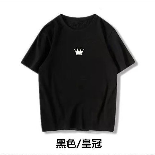 卡通圆领短袖男女T恤夏季纯色宽松大码棉体恤 黑白吸汗透气批发潮