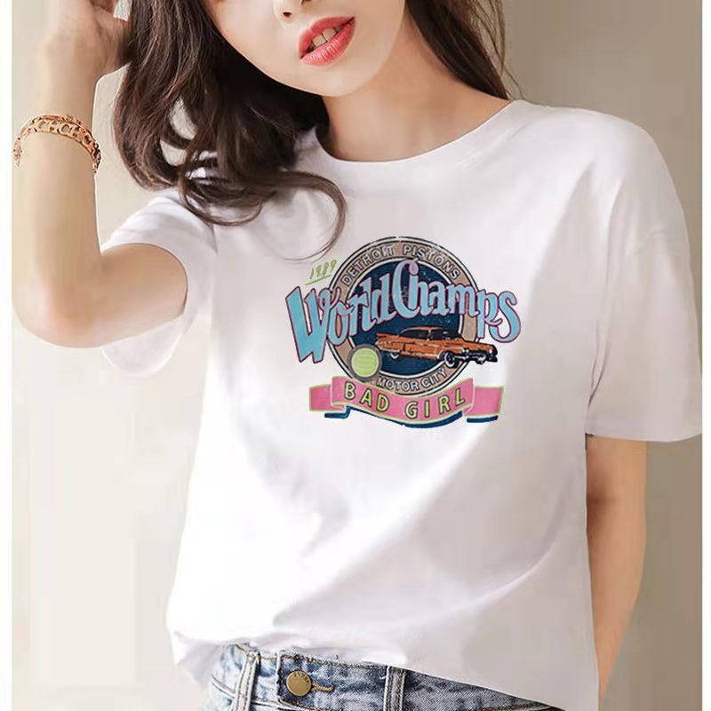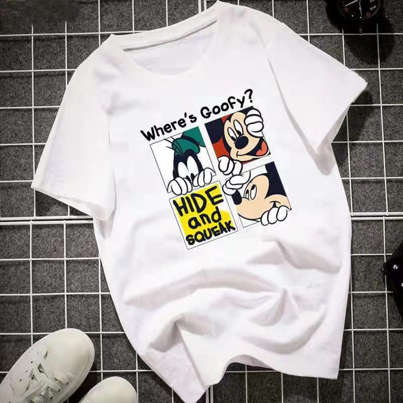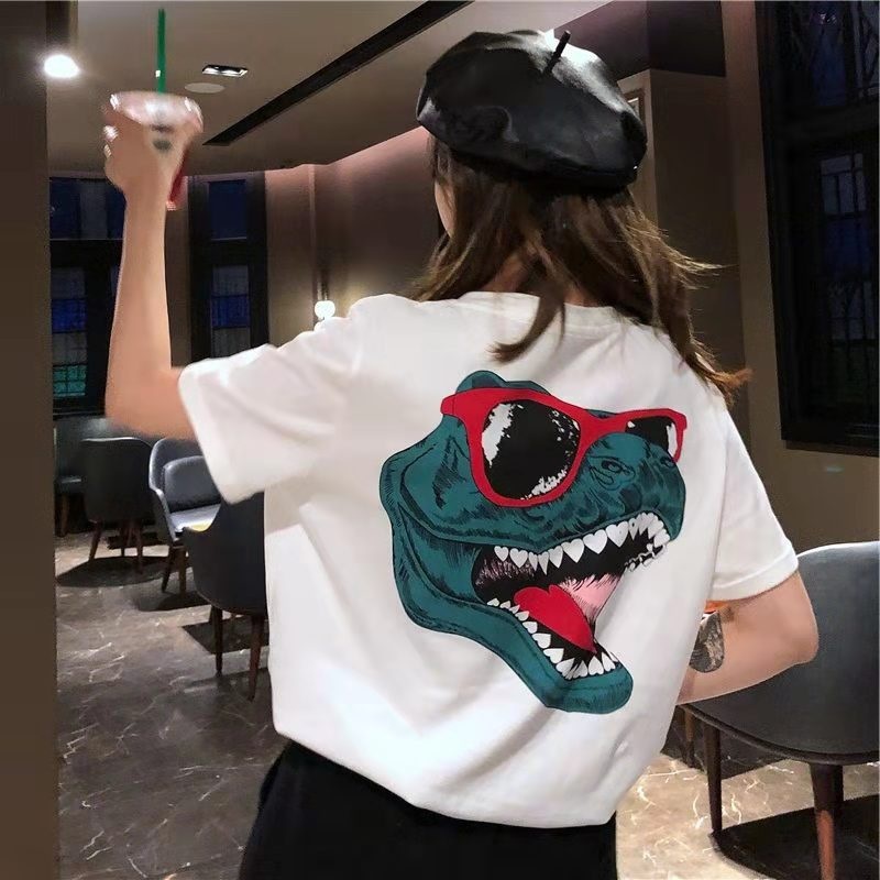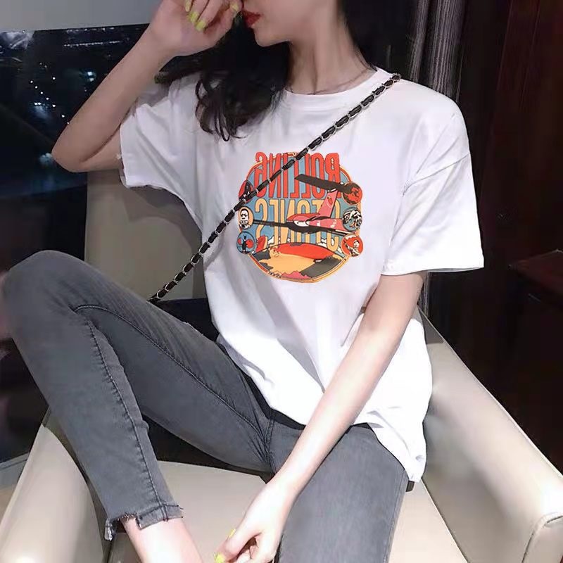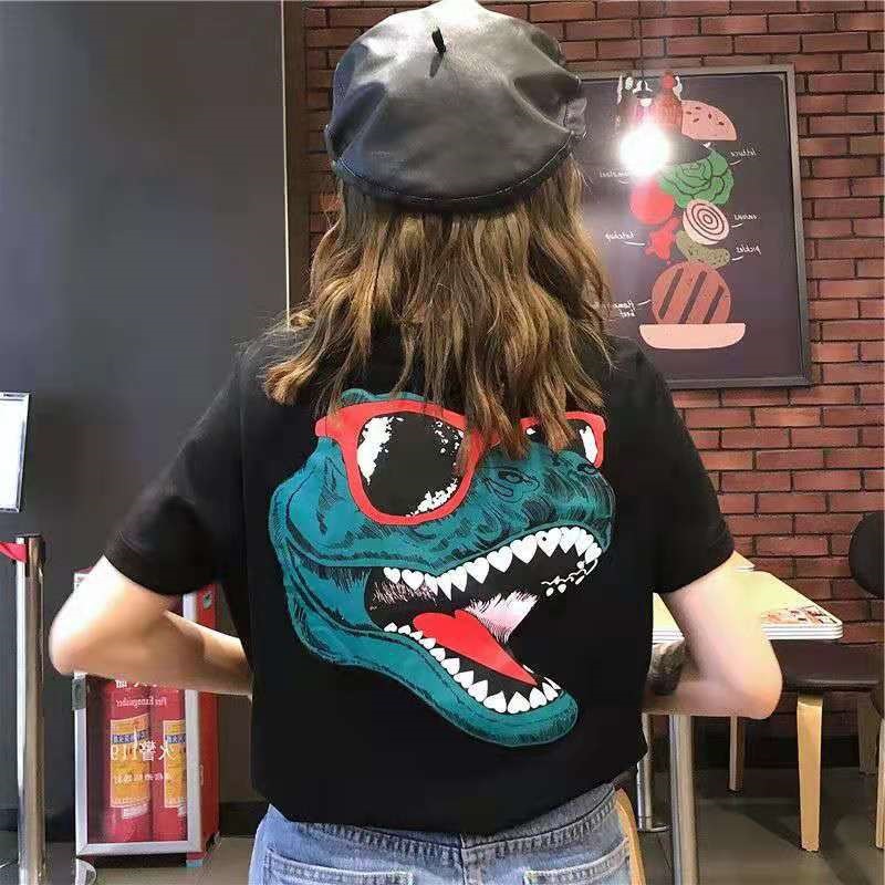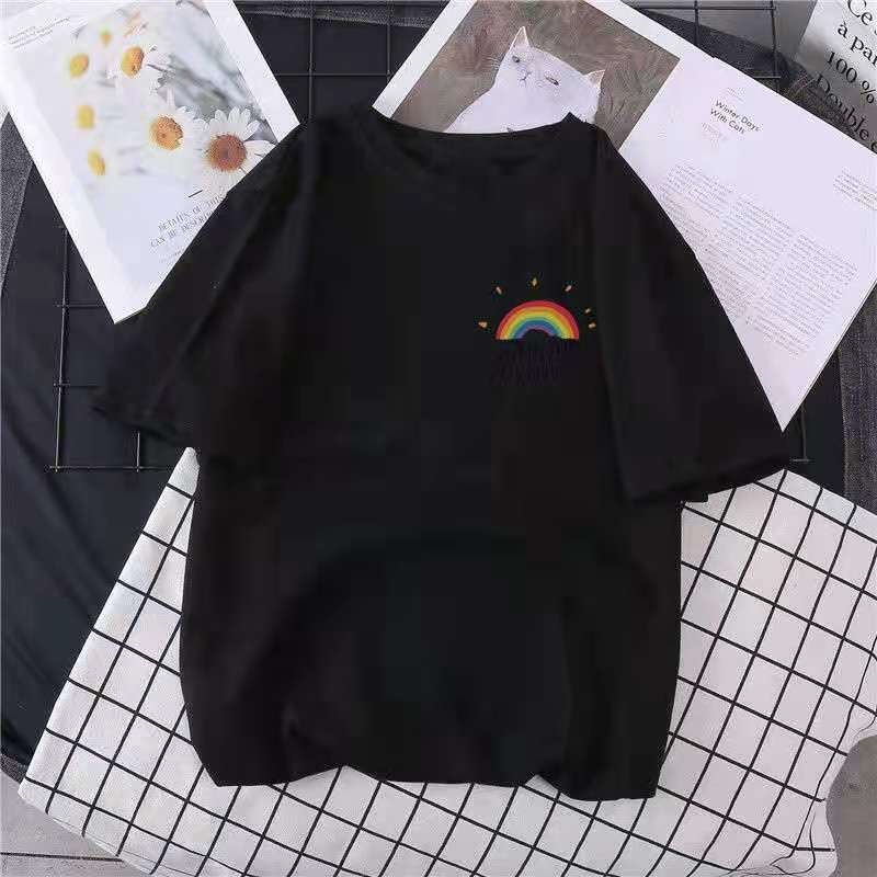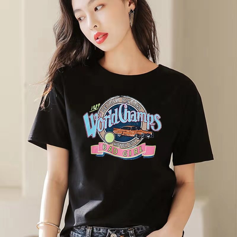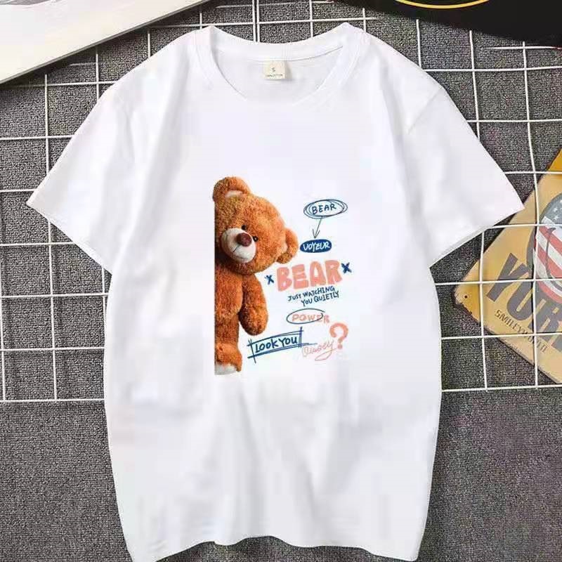 卡通圆领短袖男女T恤夏季纯色宽松大码棉体恤 黑白吸汗透气批发潮