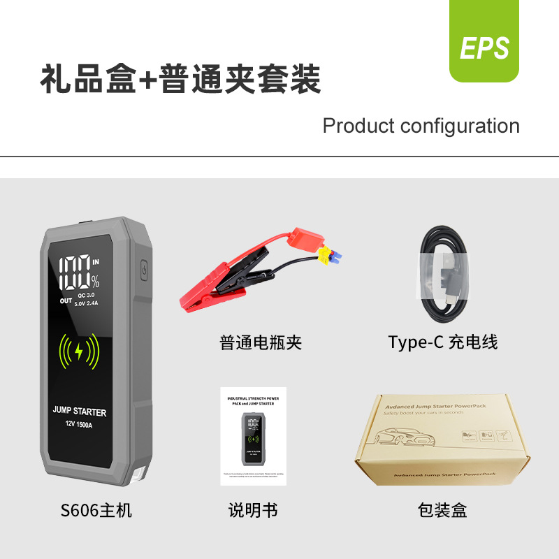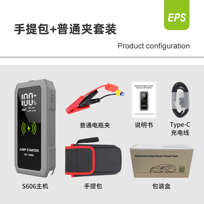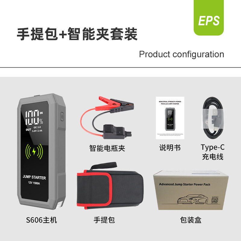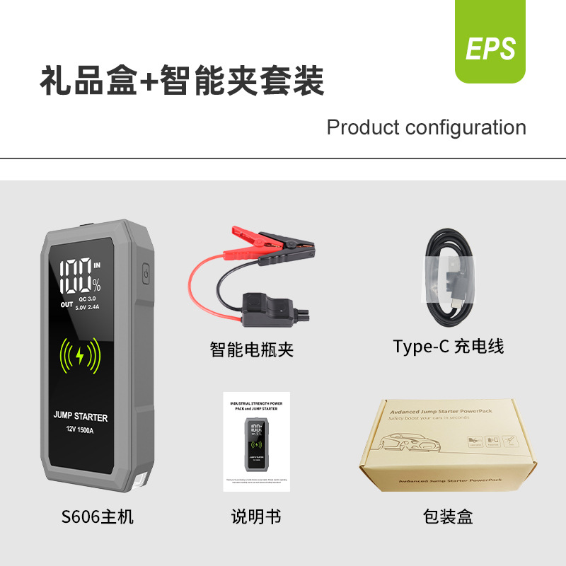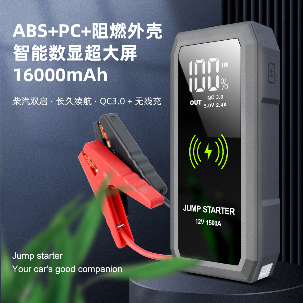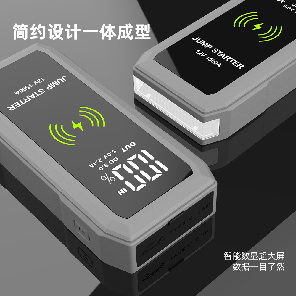 无线充汽车应急启动电源12V车载备用打火搭电宝大容量大屏启动器