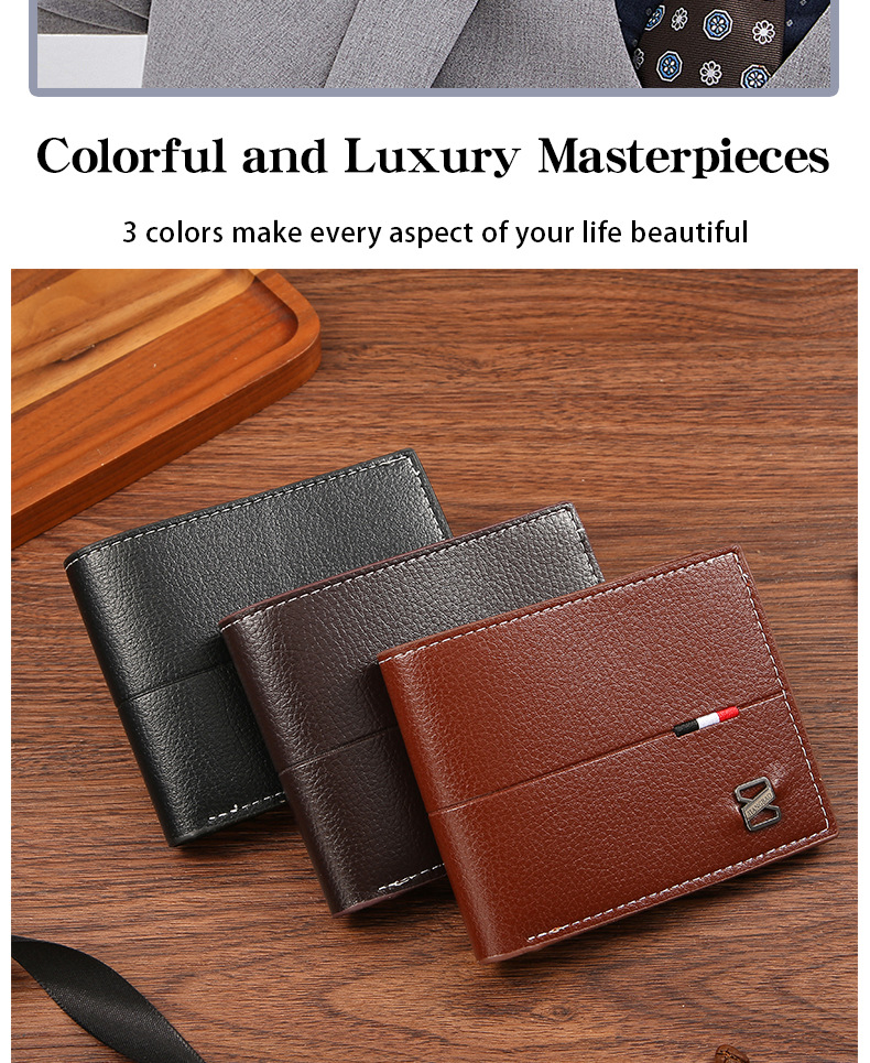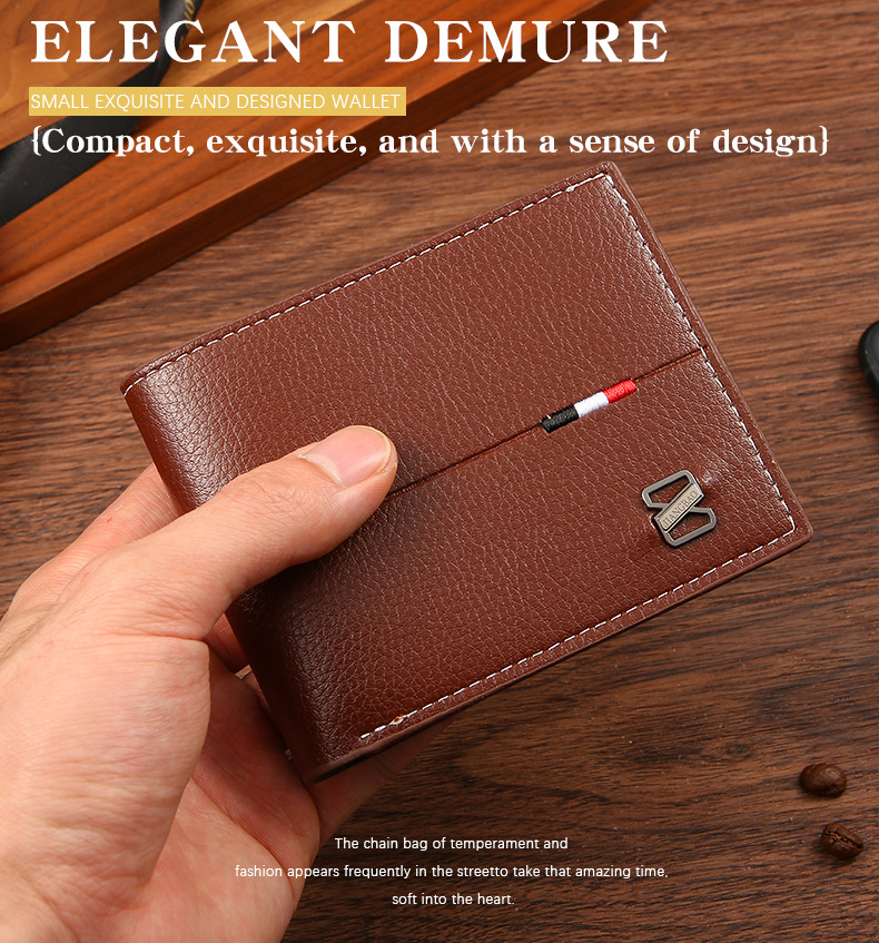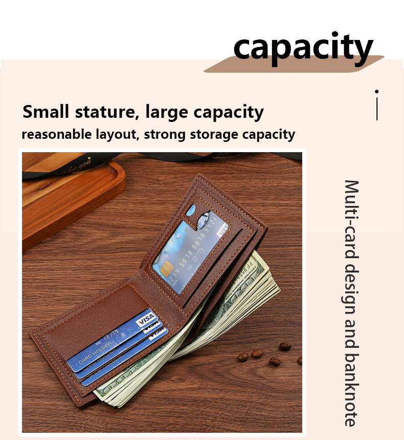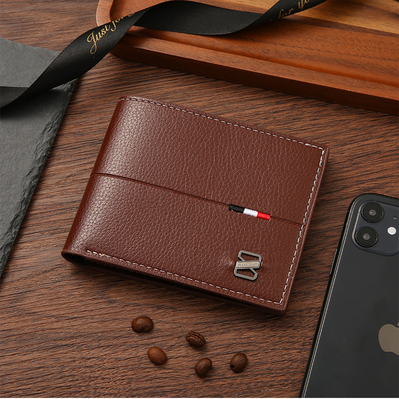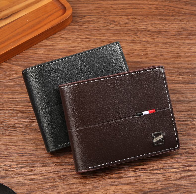 跨境热卖款男士皮革钱包银行信用卡夹休闲短款真皮零钱袋男士钱包