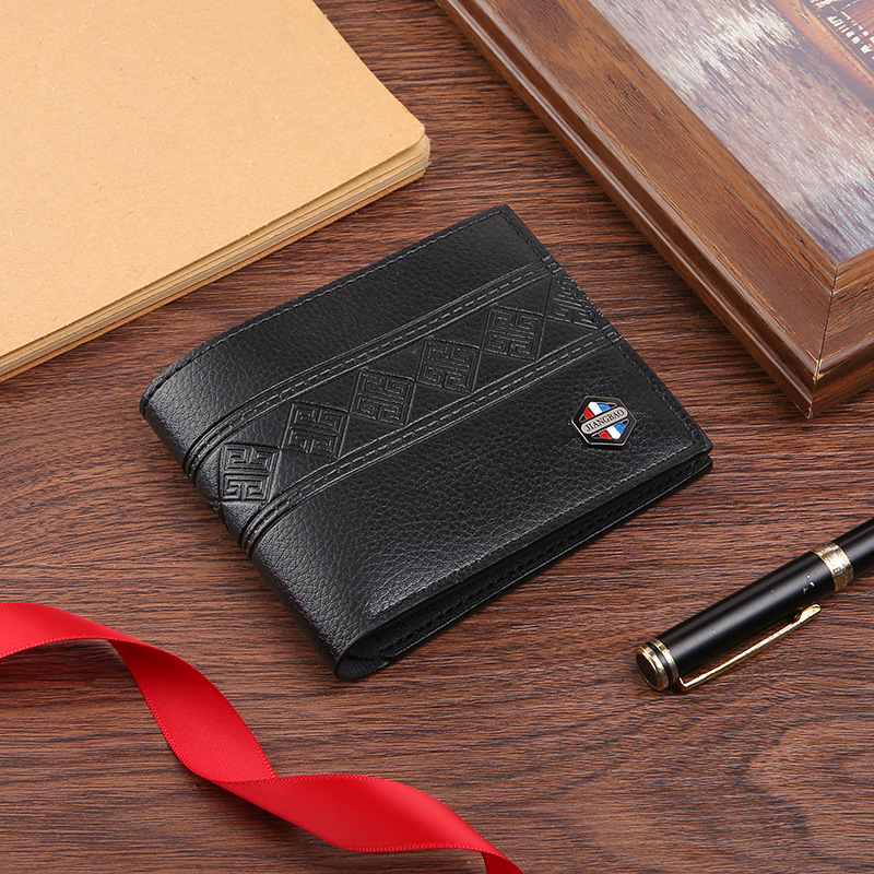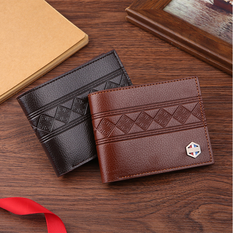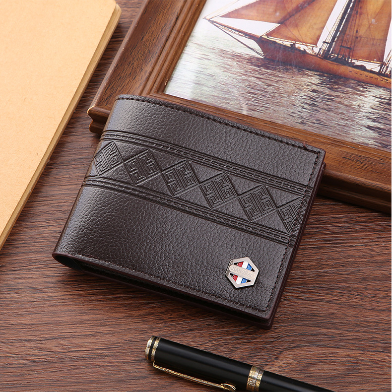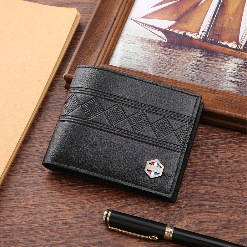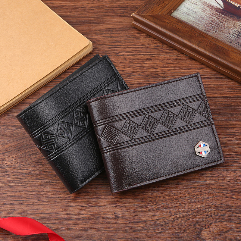 新款男士钱包短款钱夹男青年时尚休闲压花多卡位薄款软皮夹零钱包