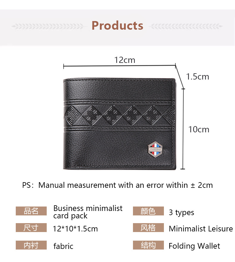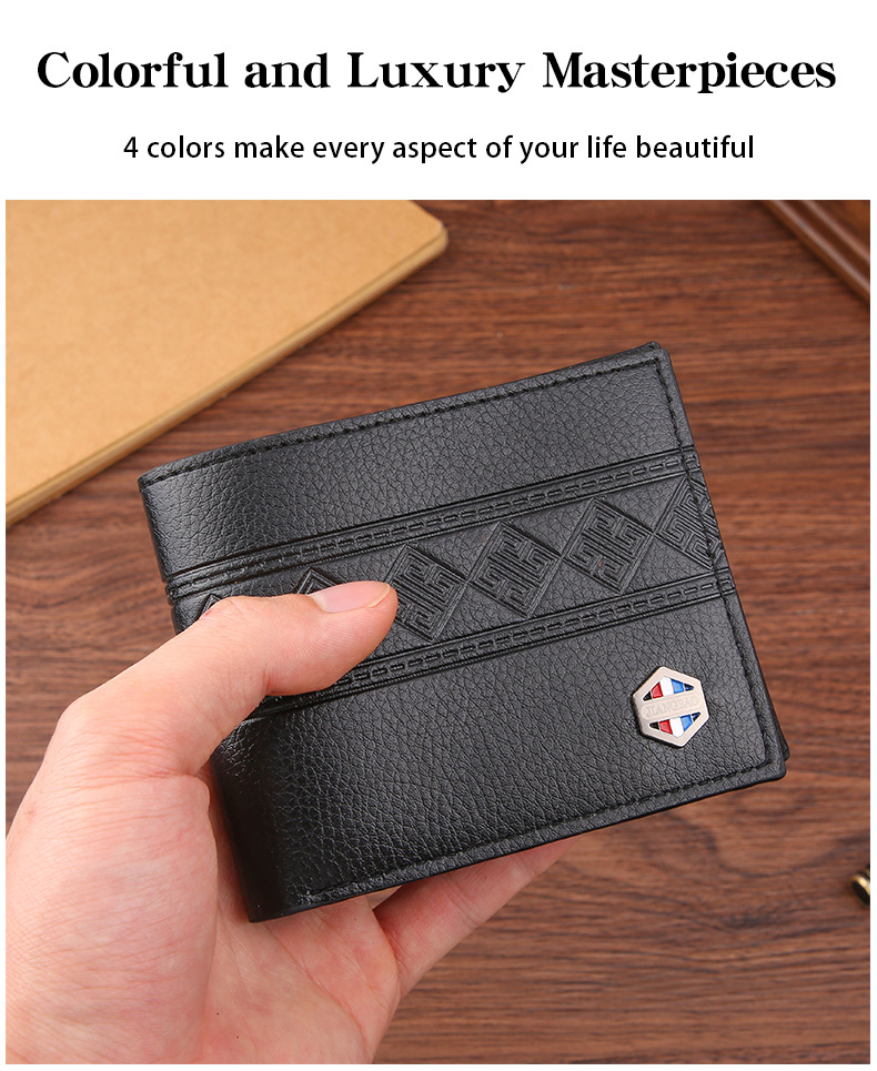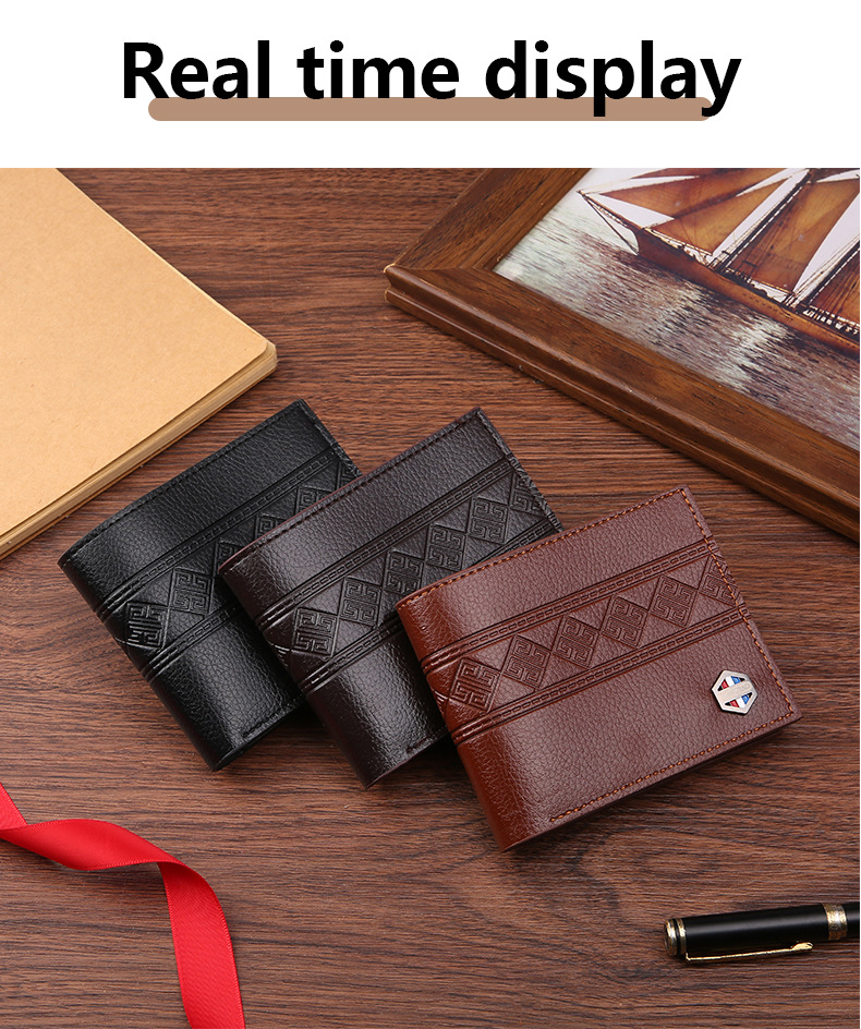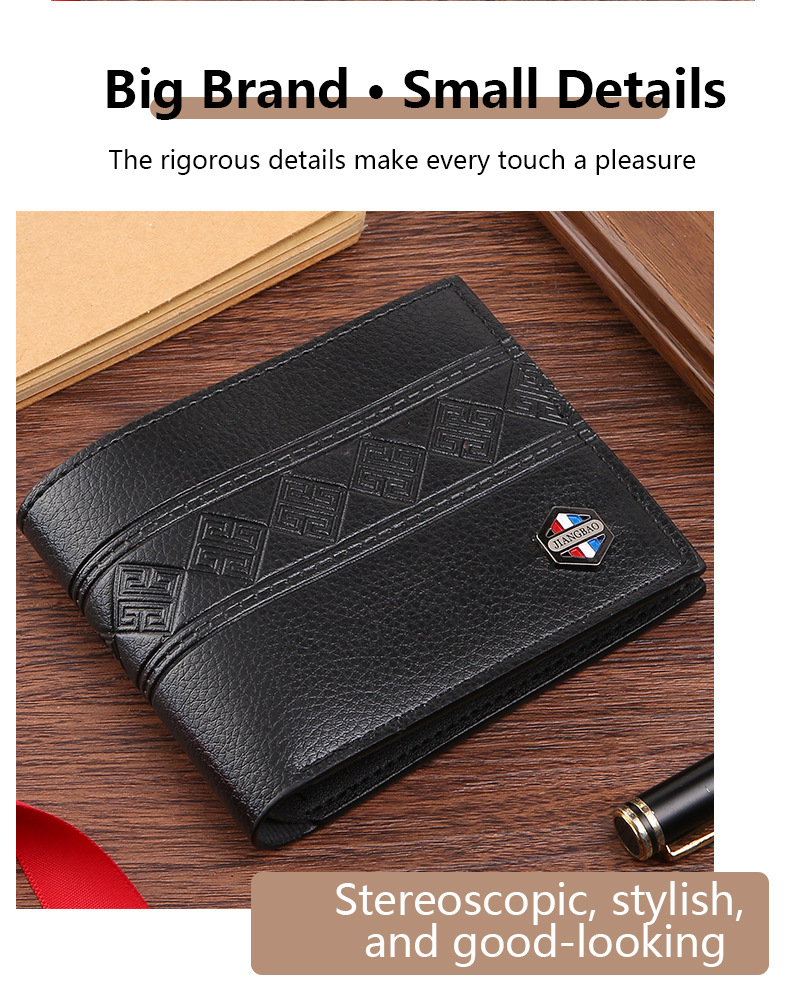 新款男士钱包短款钱夹男青年时尚休闲压花多卡位薄款软皮夹零钱包