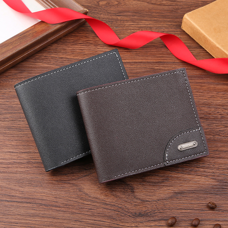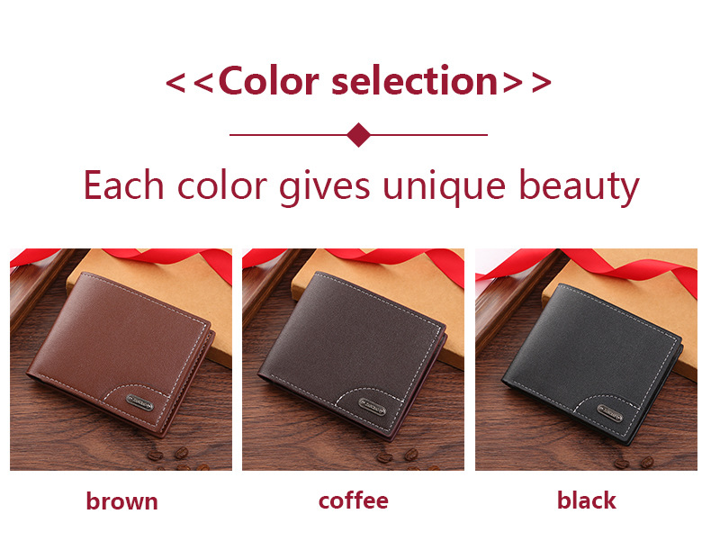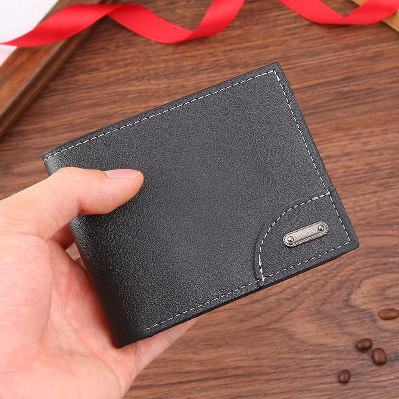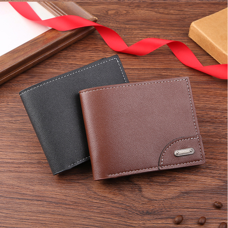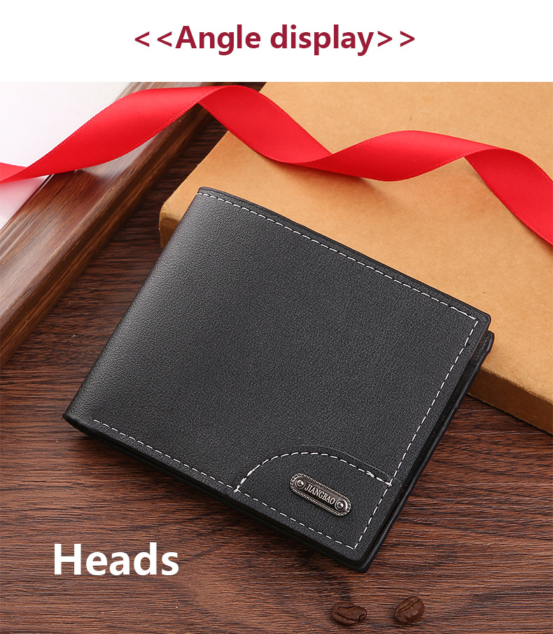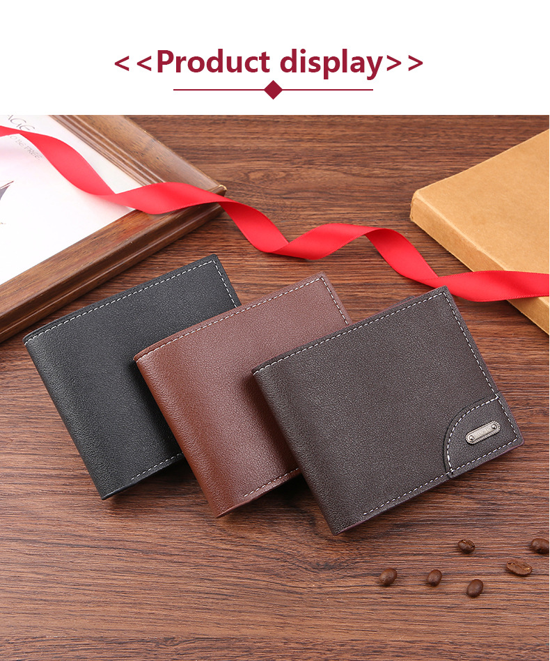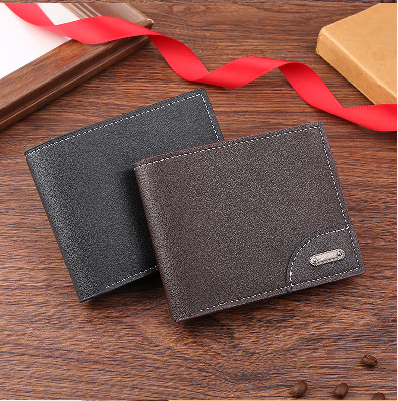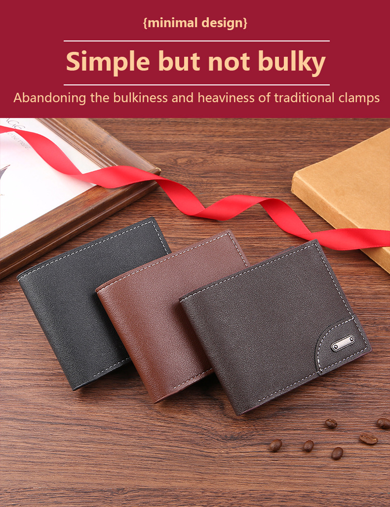 跨境男士短款钱包平纹休闲男包时尚两折零钱包大容量多卡位男钱夹