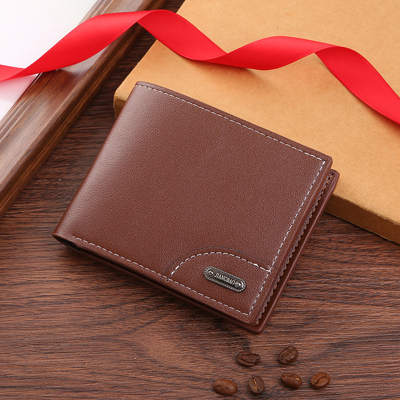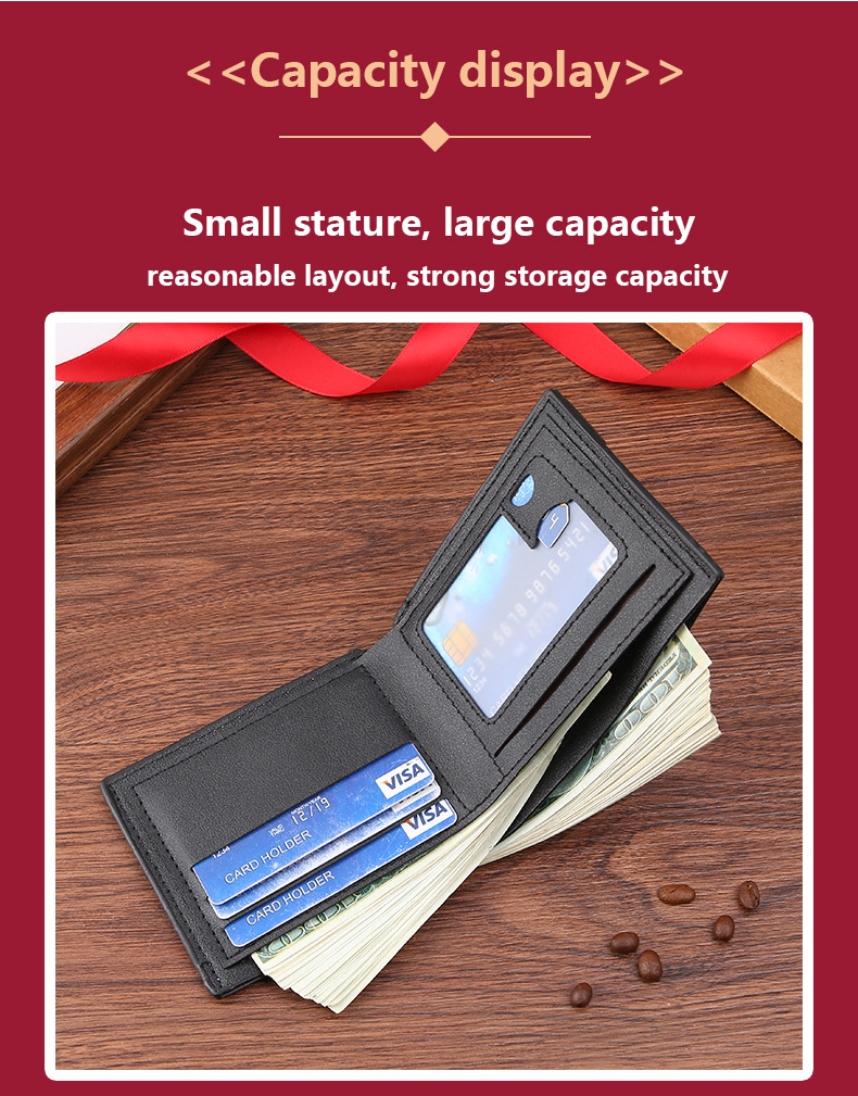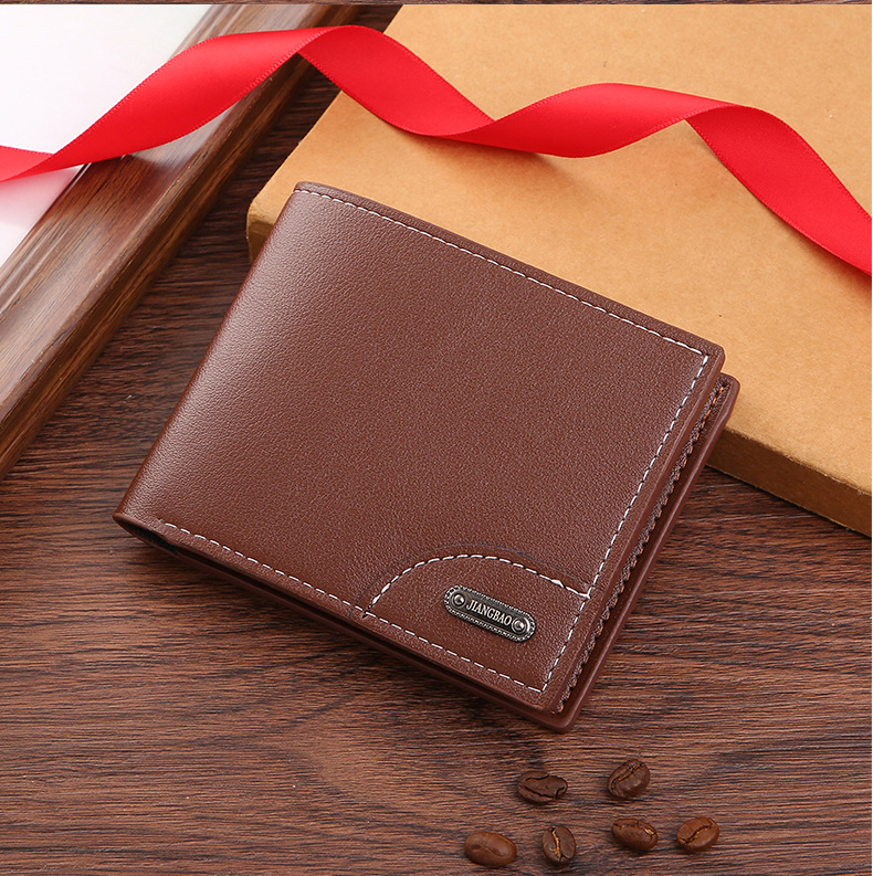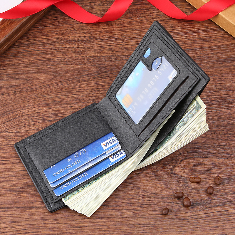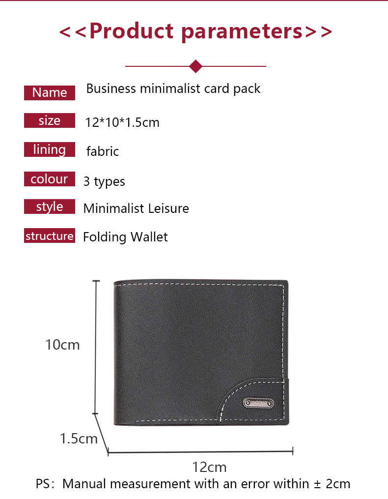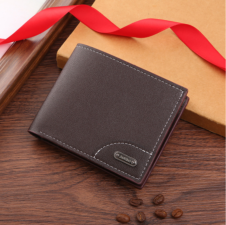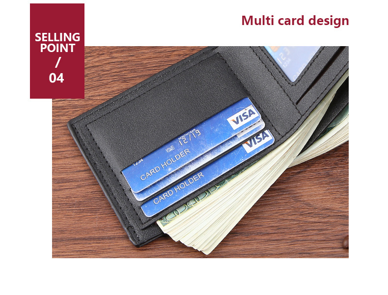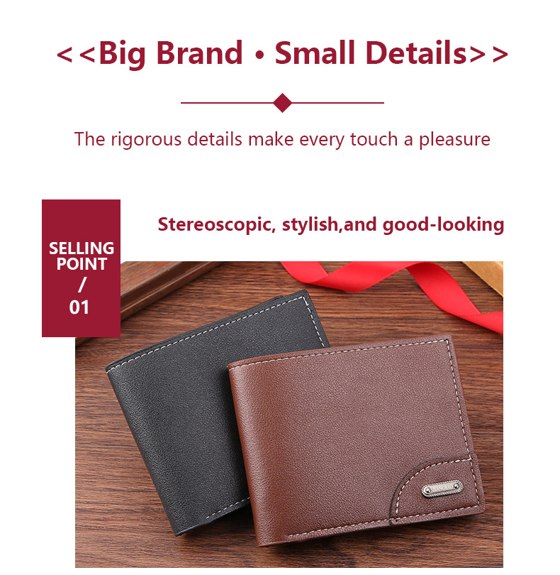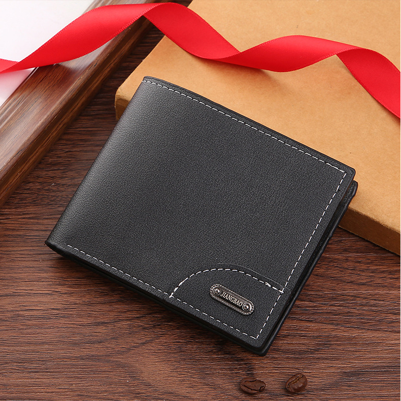 跨境男士短款钱包平纹休闲男包时尚两折零钱包大容量多卡位男钱夹
