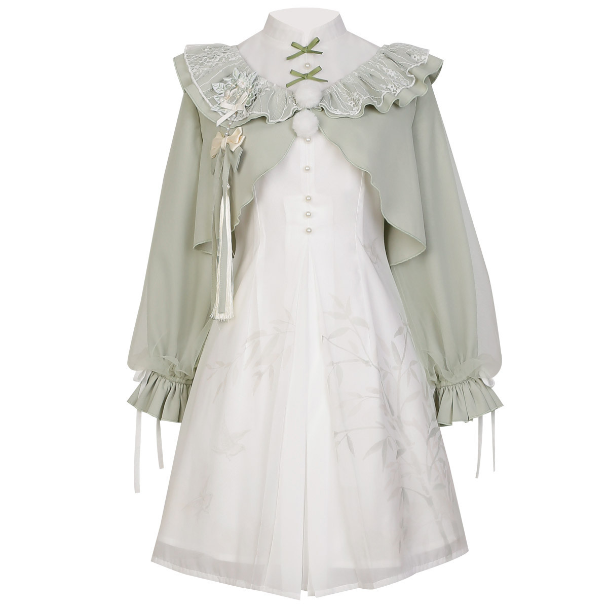 原创设计竹隐中国风复古日常汉服女外套连衣裙两件套6632