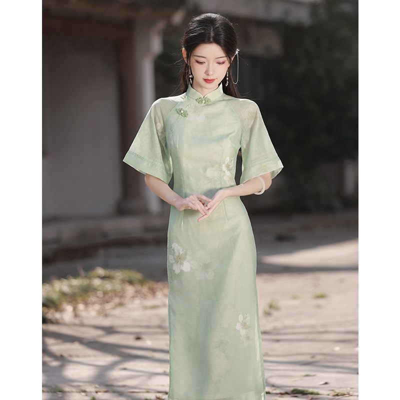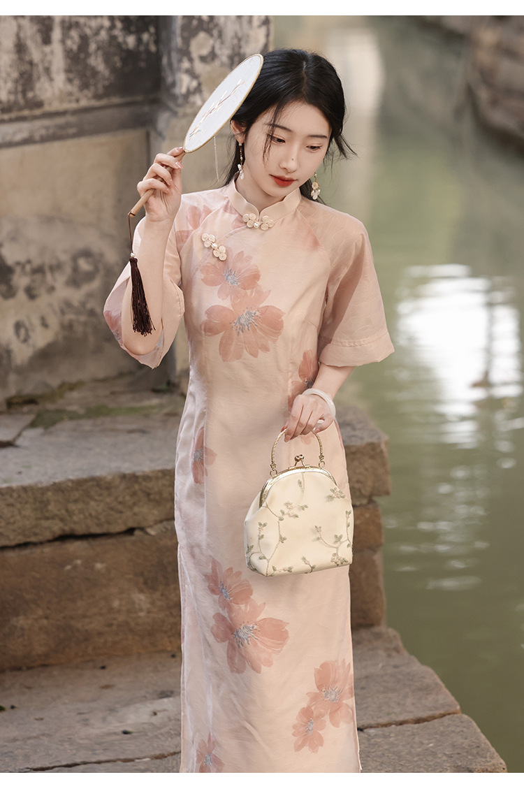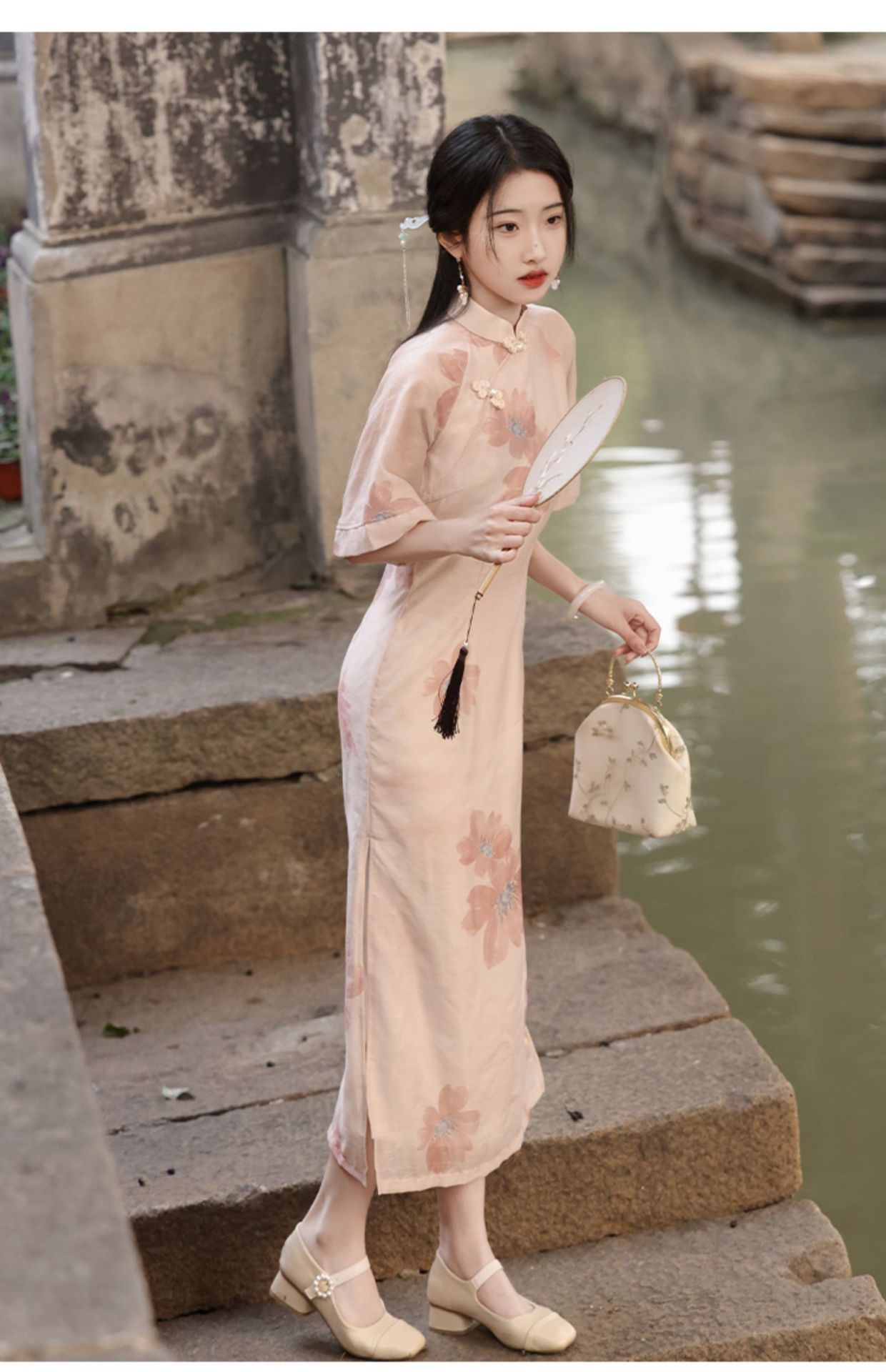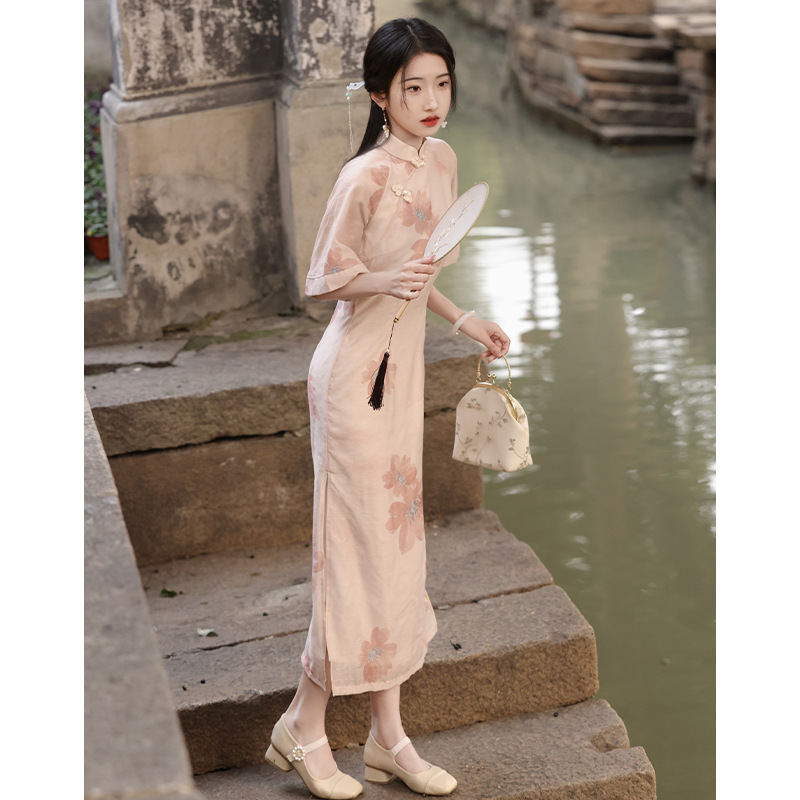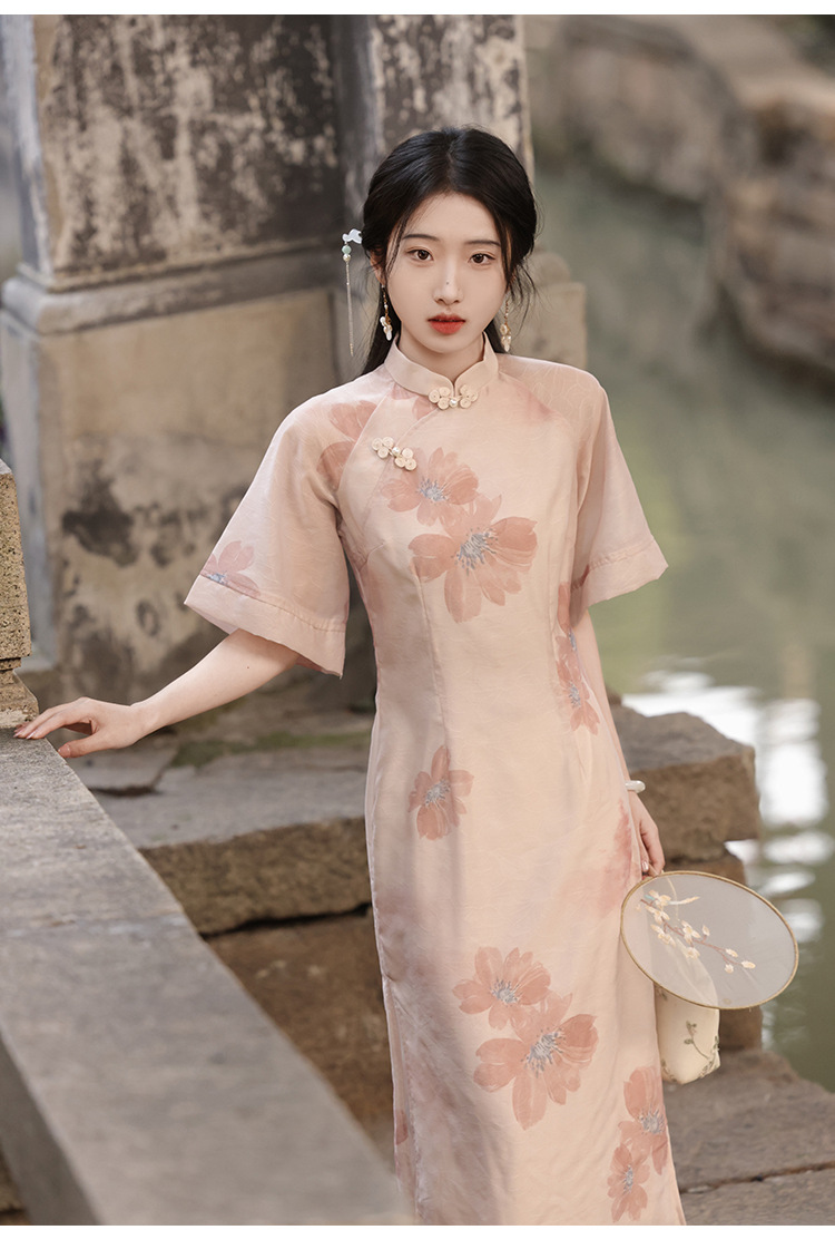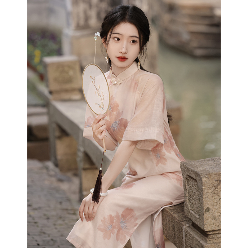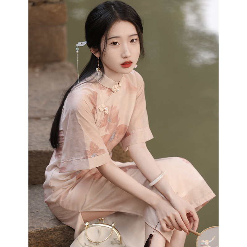 倒大袖旗袍2024年新款少女夏季平时可穿粉色清新新中式日常连衣裙