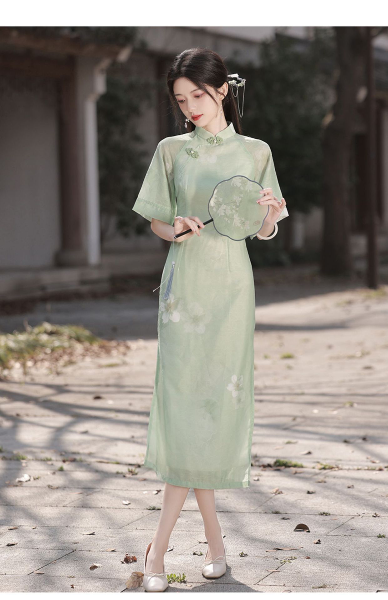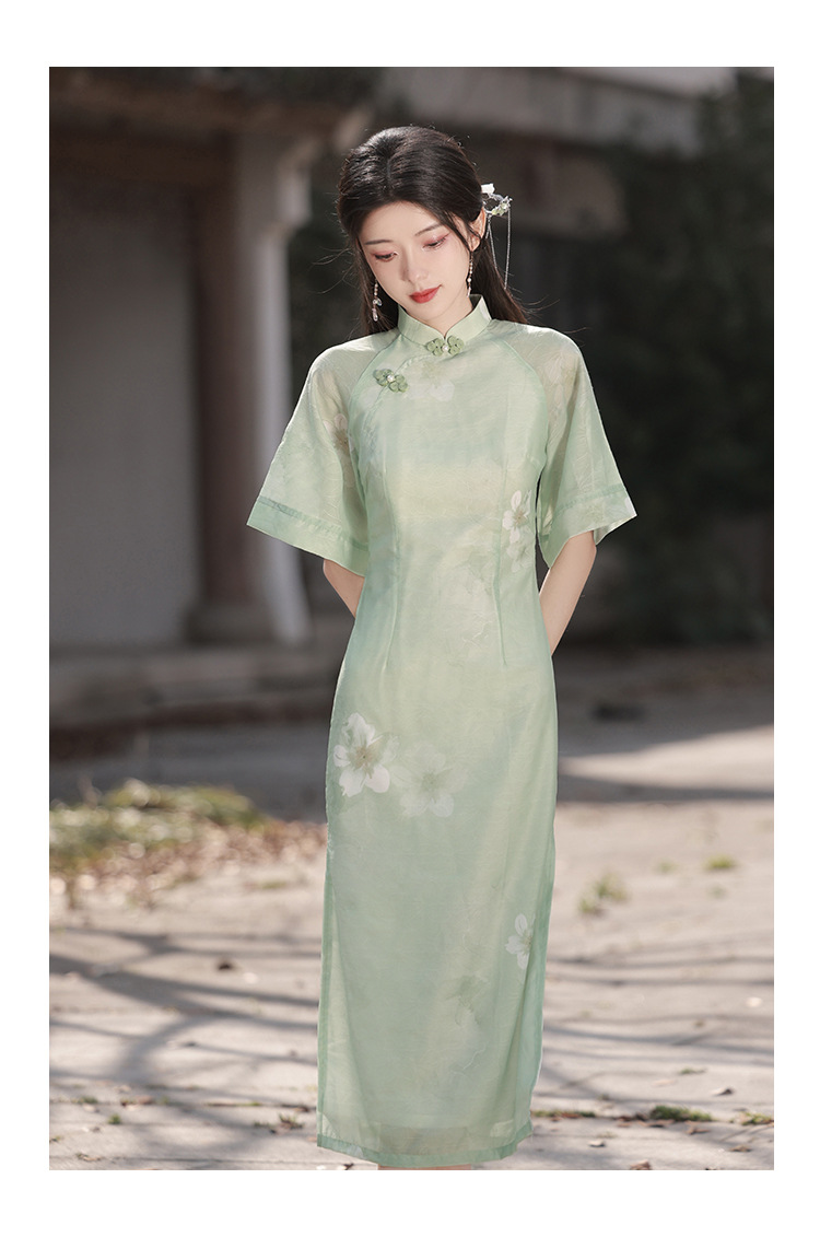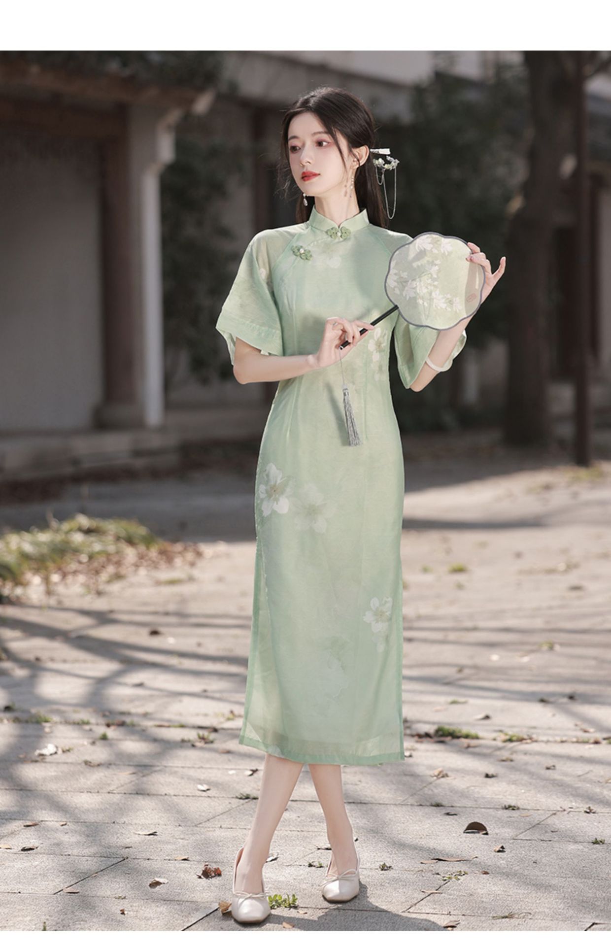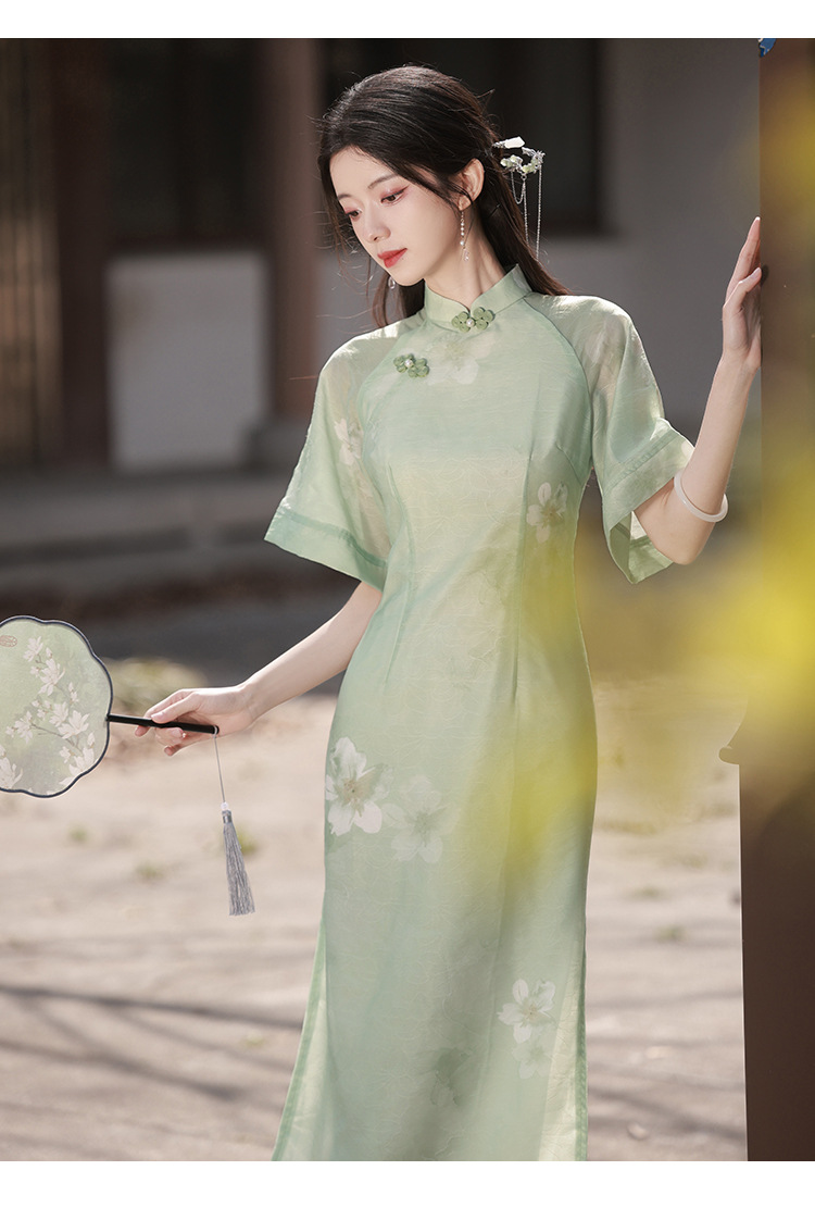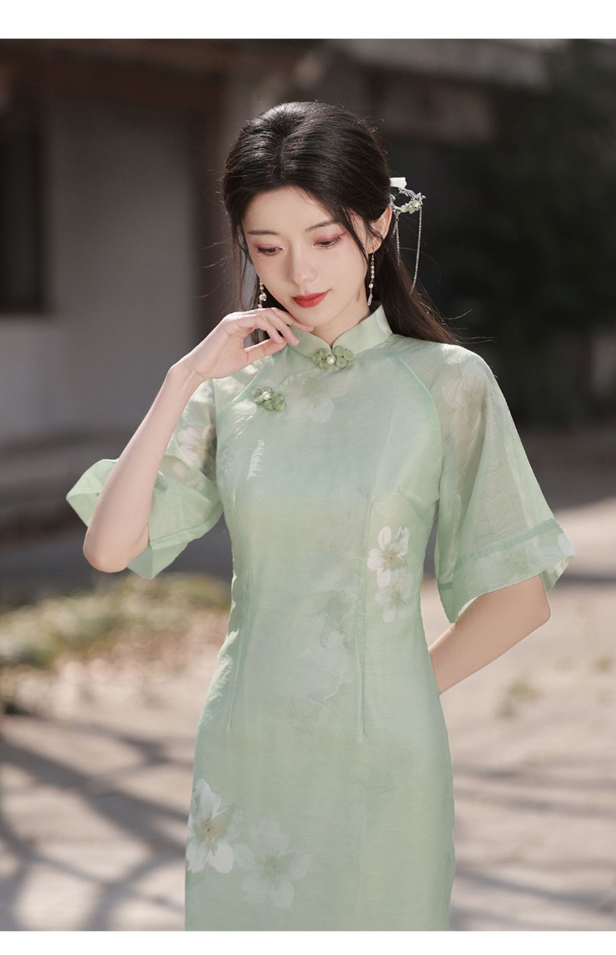 倒大袖旗袍2024年新款少女夏季平时可穿粉色清新新中式日常连衣裙