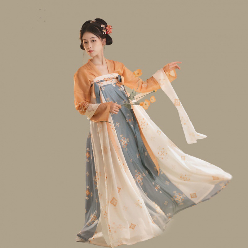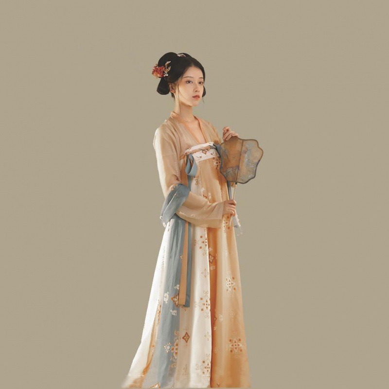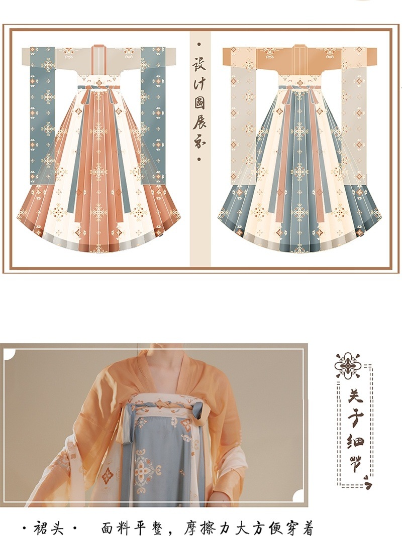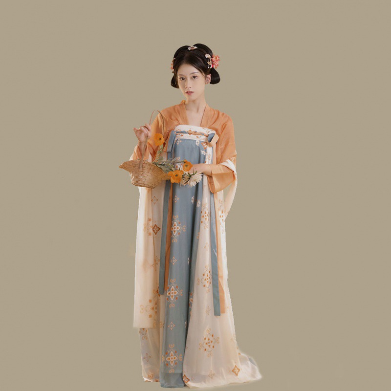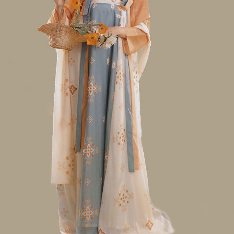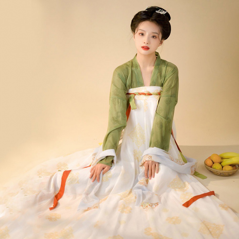 女士款汉服 白菜汉服唐制春夏一片式齐胸破裙 印花复原款夏季女款