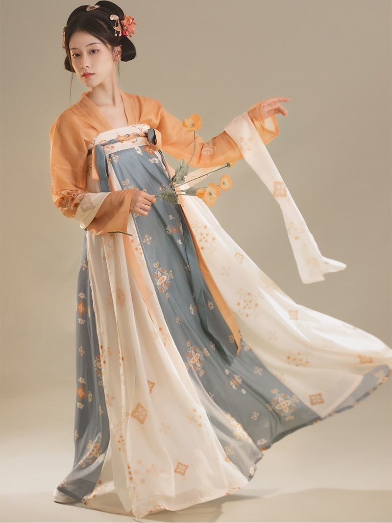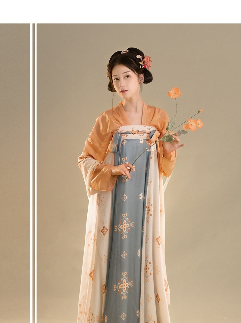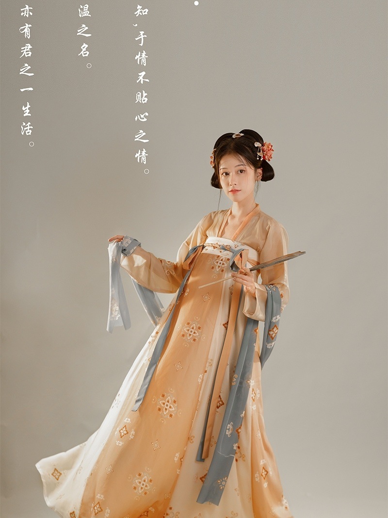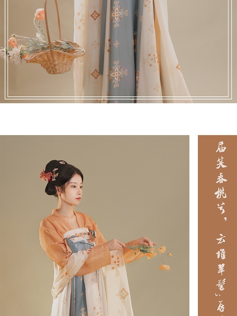 女士款汉服 白菜汉服唐制春夏一片式齐胸破裙 印花复原款夏季女款