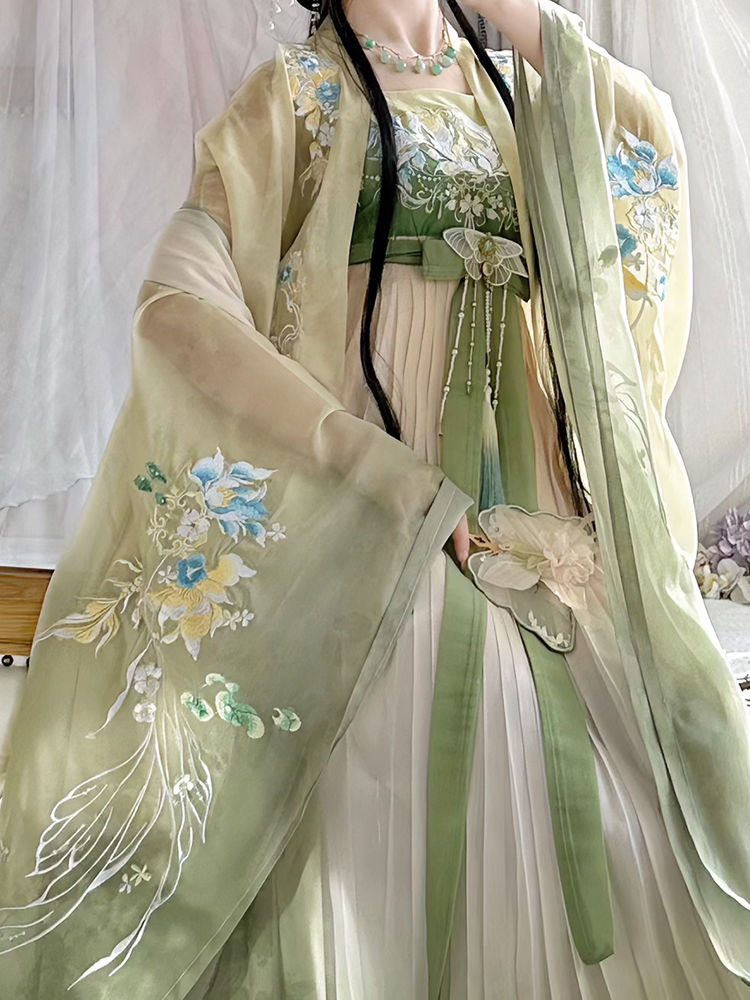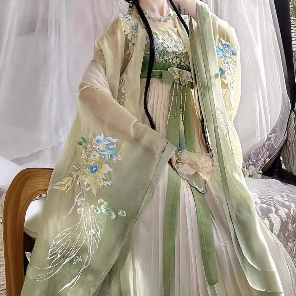 2024春上新款汉服女春色重工刺绣大袖衫诃子裙超仙日常穿春夏套装