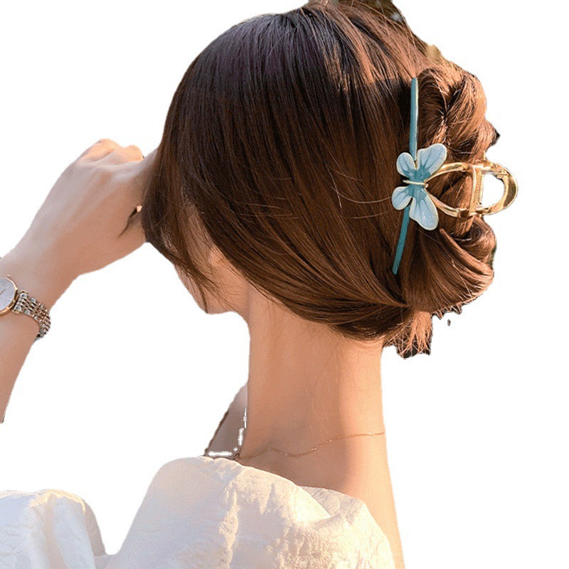 超仙蝴蝶滴油金属发夹高级感后脑勺盘发抓夹气质鲨鱼夹子春夏发卡