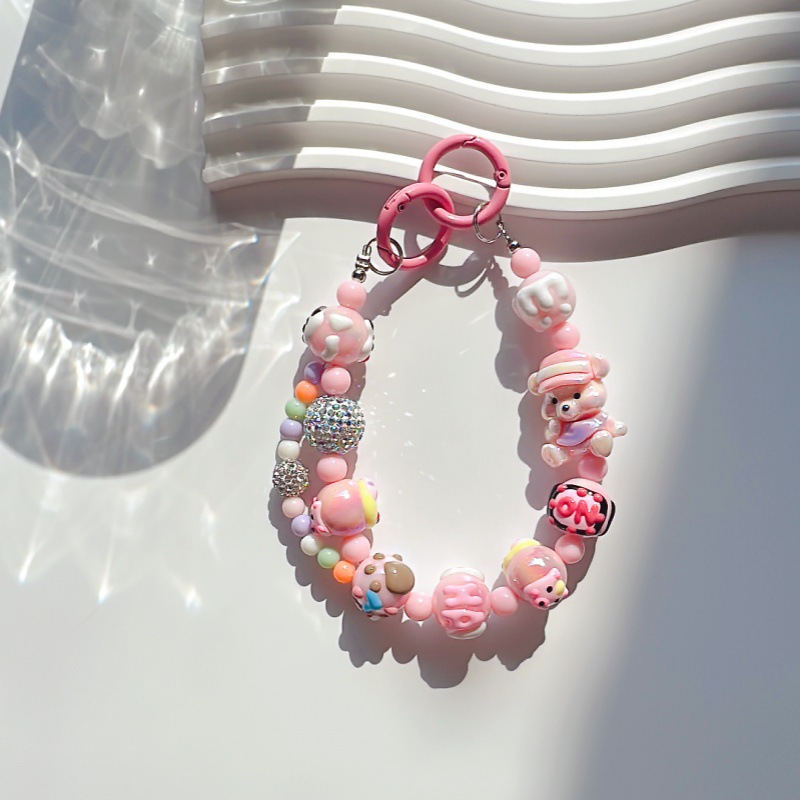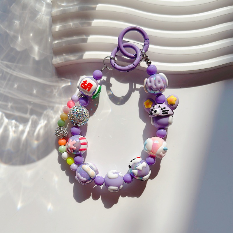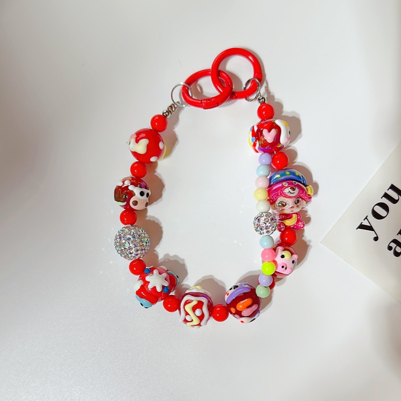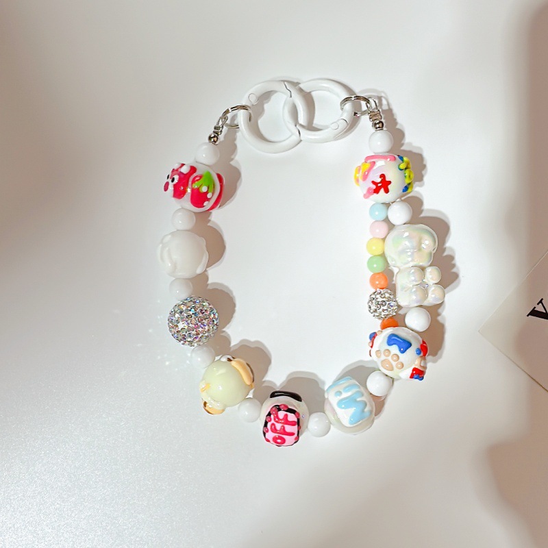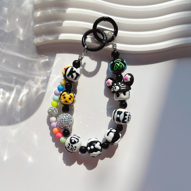 diy创意手绘涂鸦卡通珠珠链条手机壳双扣挂链钥匙扣汽车配件女生
