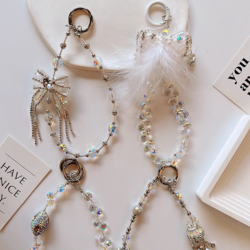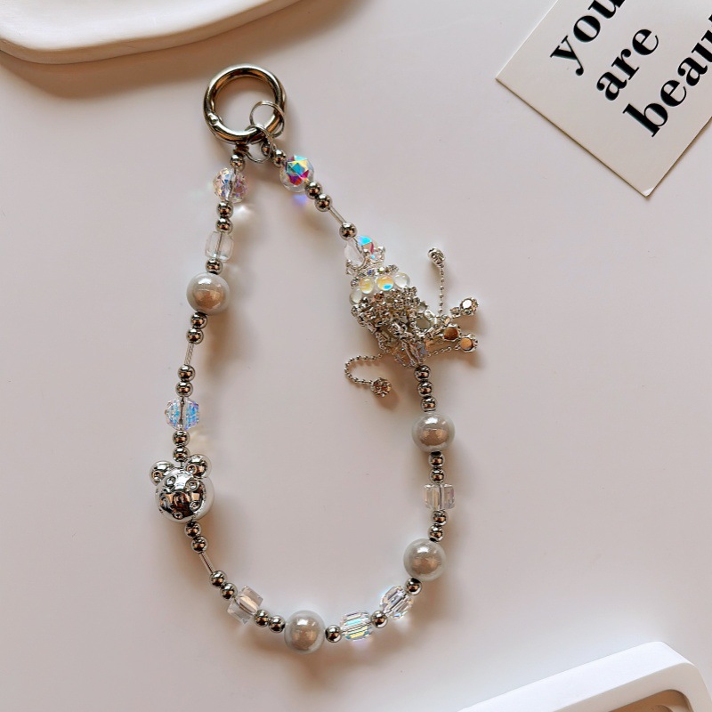 厂家直销重工手绘珠草莓熊手机链原创ins包包挂绳钥匙扣装饰礼物