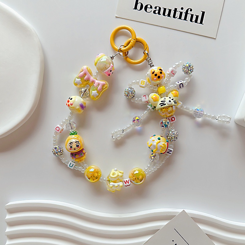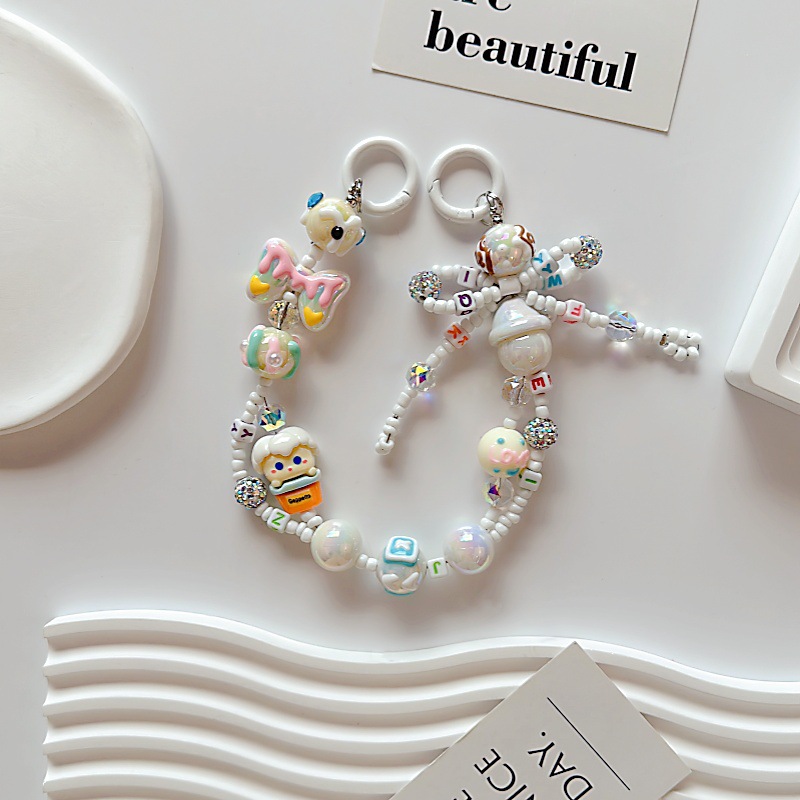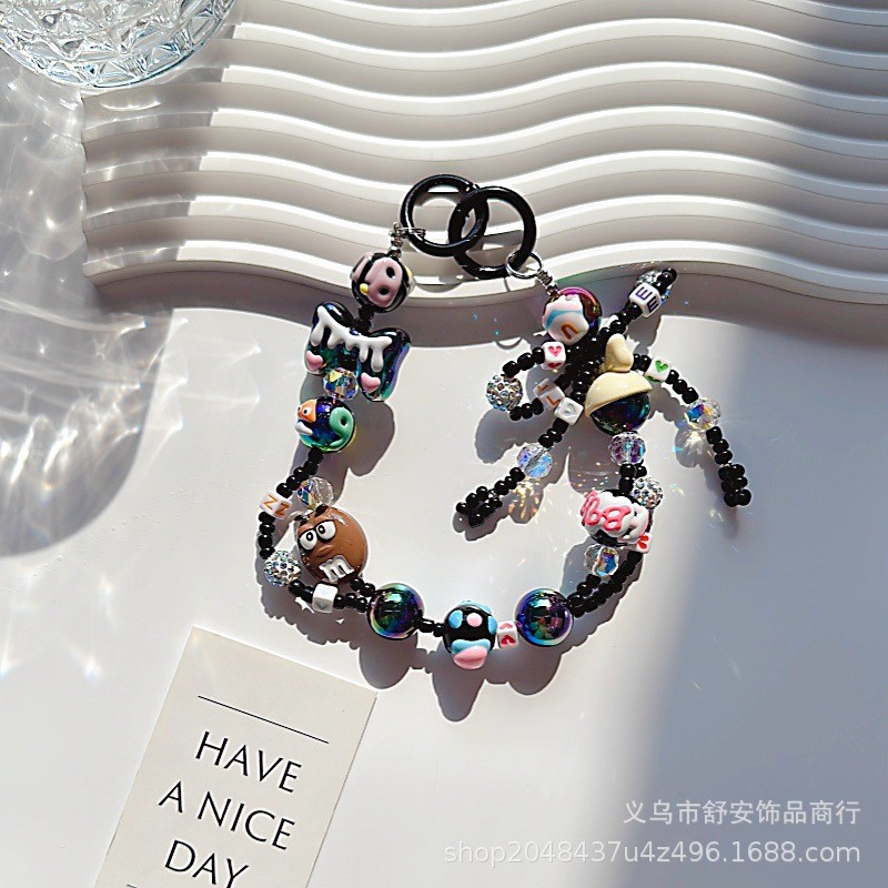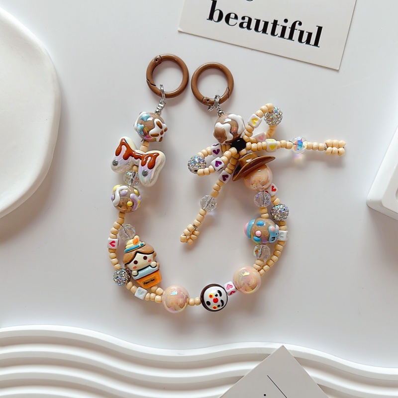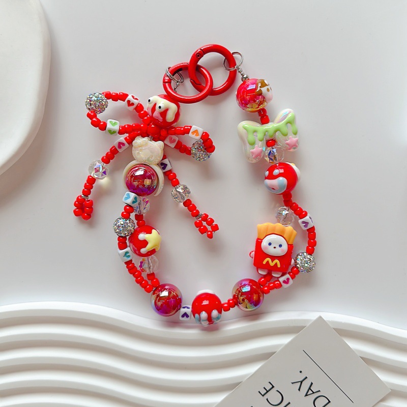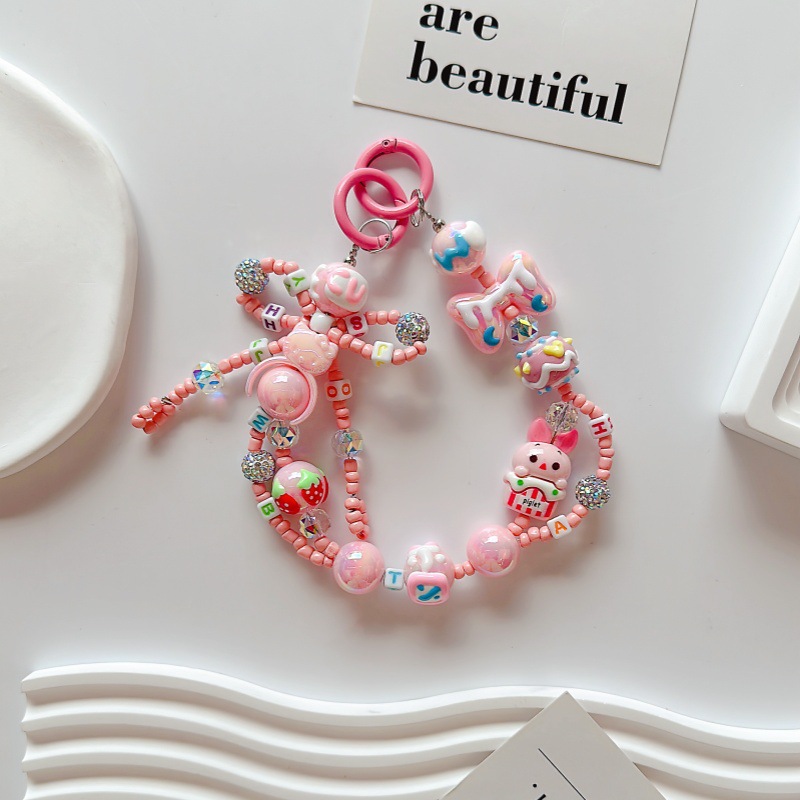 厂家直销重工手绘珠草莓熊手机链原创ins包包挂绳钥匙扣装饰礼物