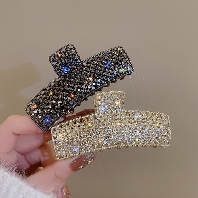 韩版满钻金属抓夹复古气质后脑勺发夹大号优雅发抓发卡盘发鲨鱼夹