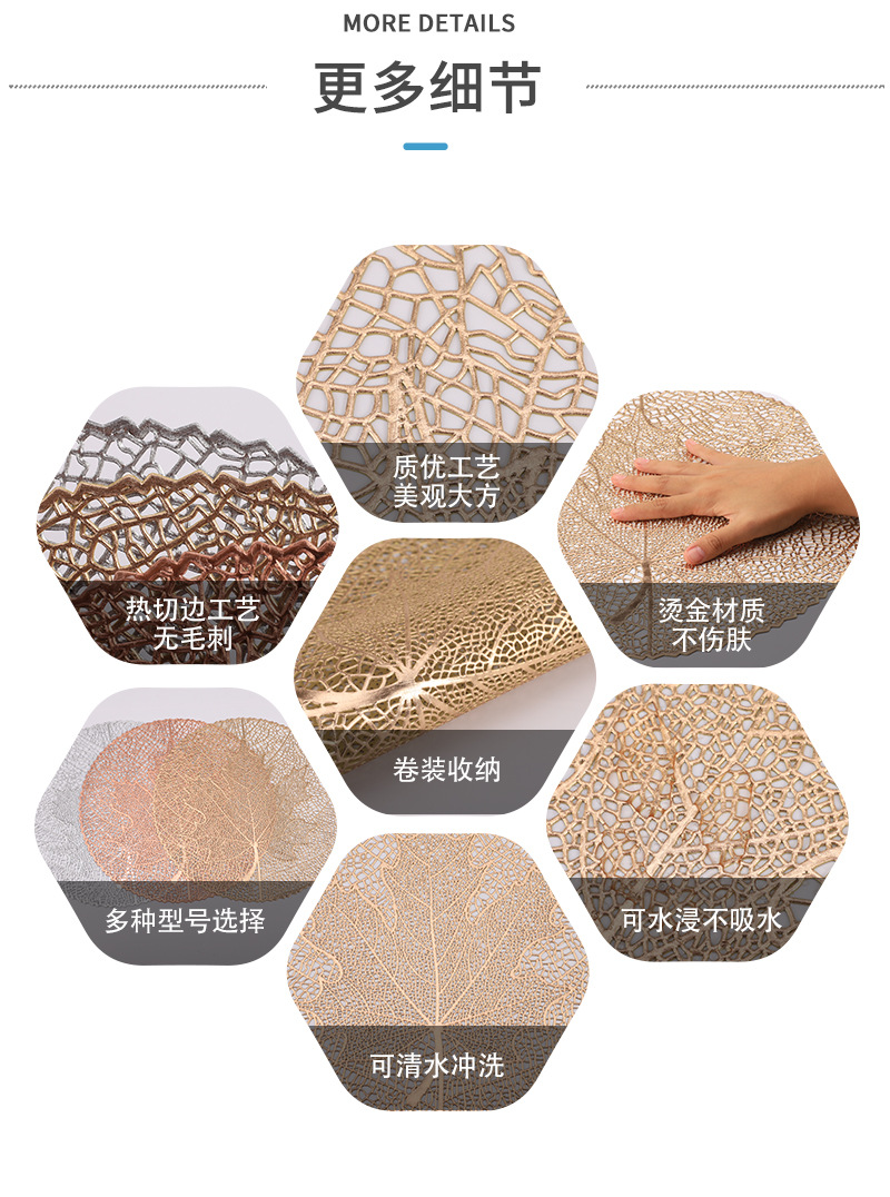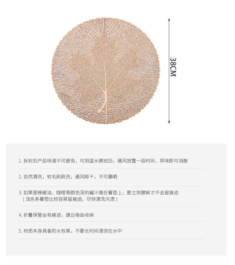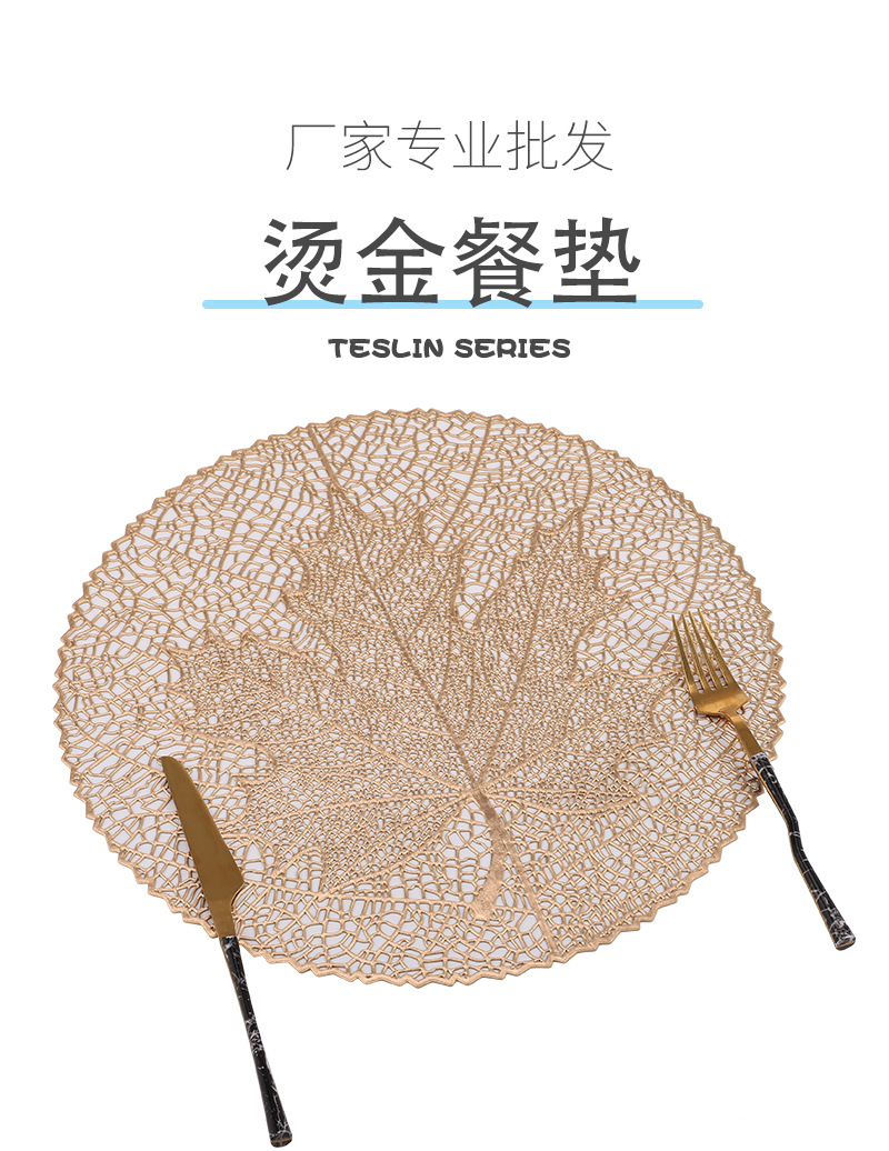 镂空餐桌垫PVC烫金隔热圆形枫叶型现代简约家用装饰古风餐垫