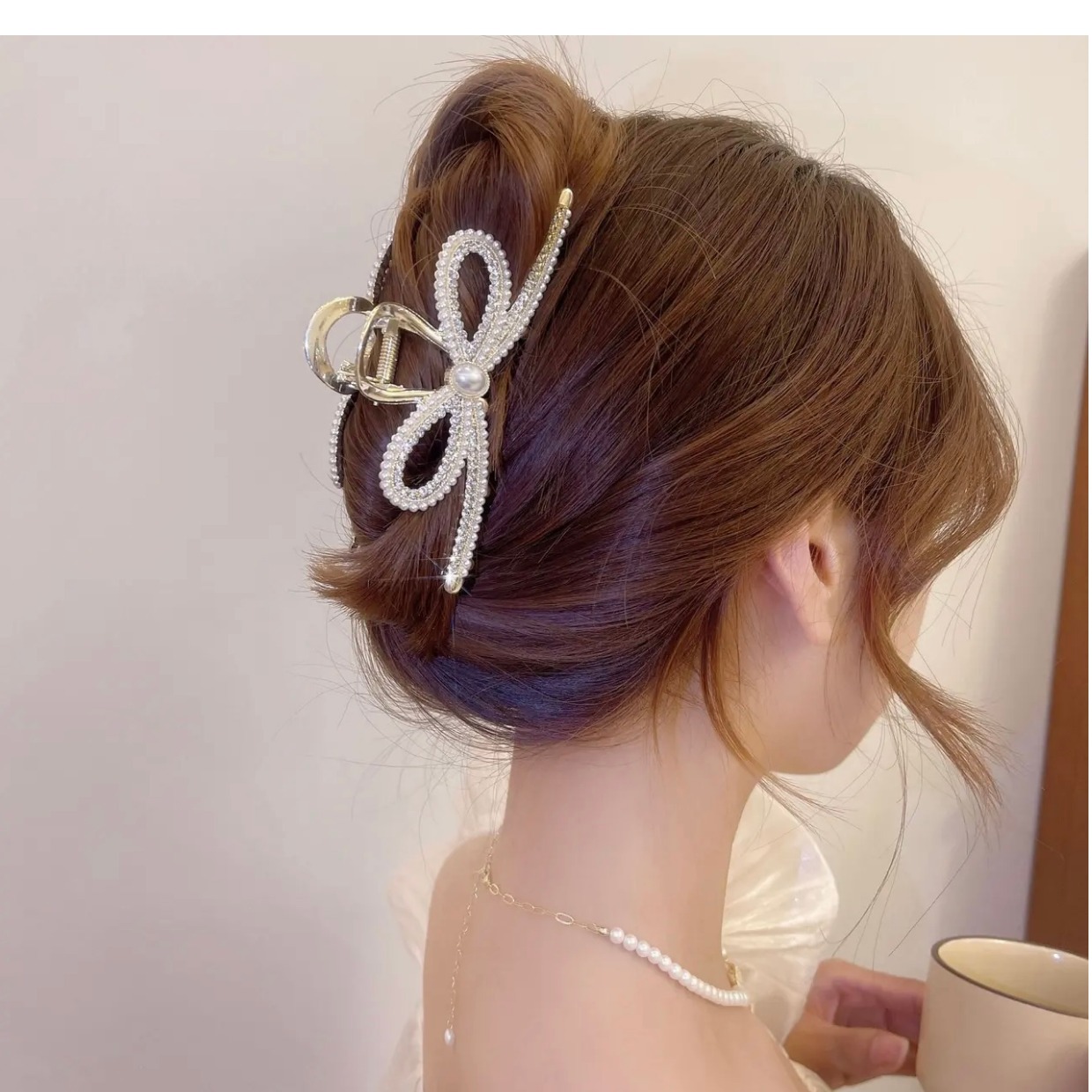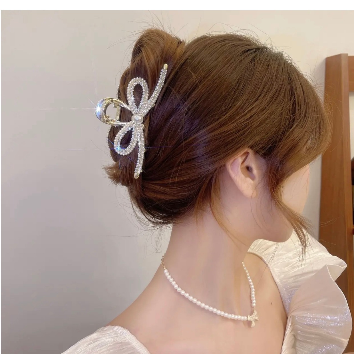 春夏蝴蝶结珍珠抓夹女大号后发抓女女后脑勺发夹新款女