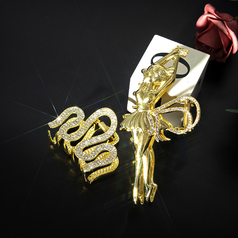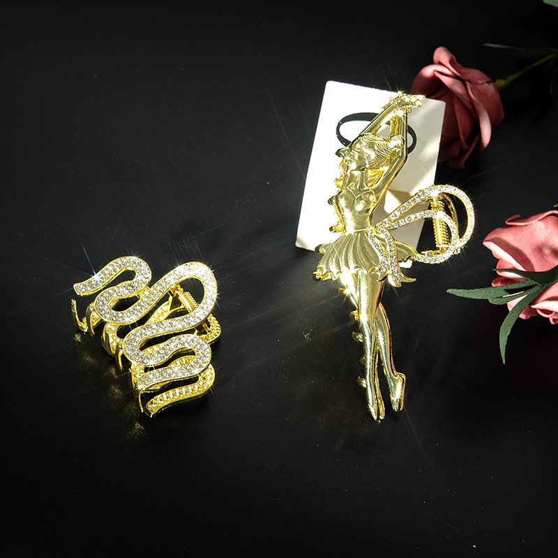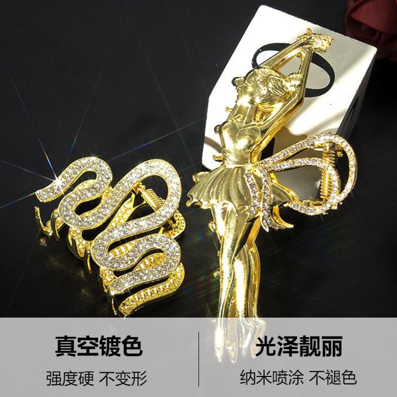韩国镶嵌芭蕾舞女孩抓夹几何线条金色鲨鱼夹甜美后脑勺盘发夹发卡