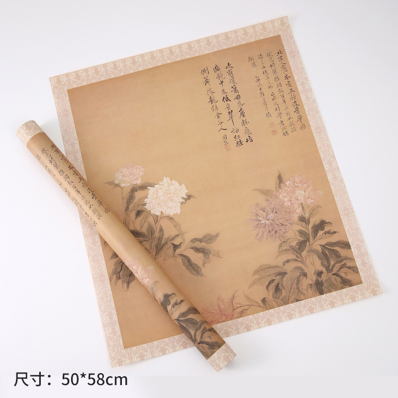 古诗词100g牛皮包花纸花束包装花店资材批发国潮风书法鲜花包装纸