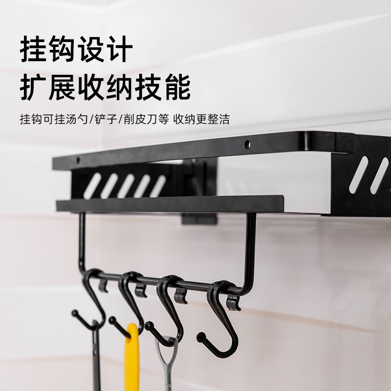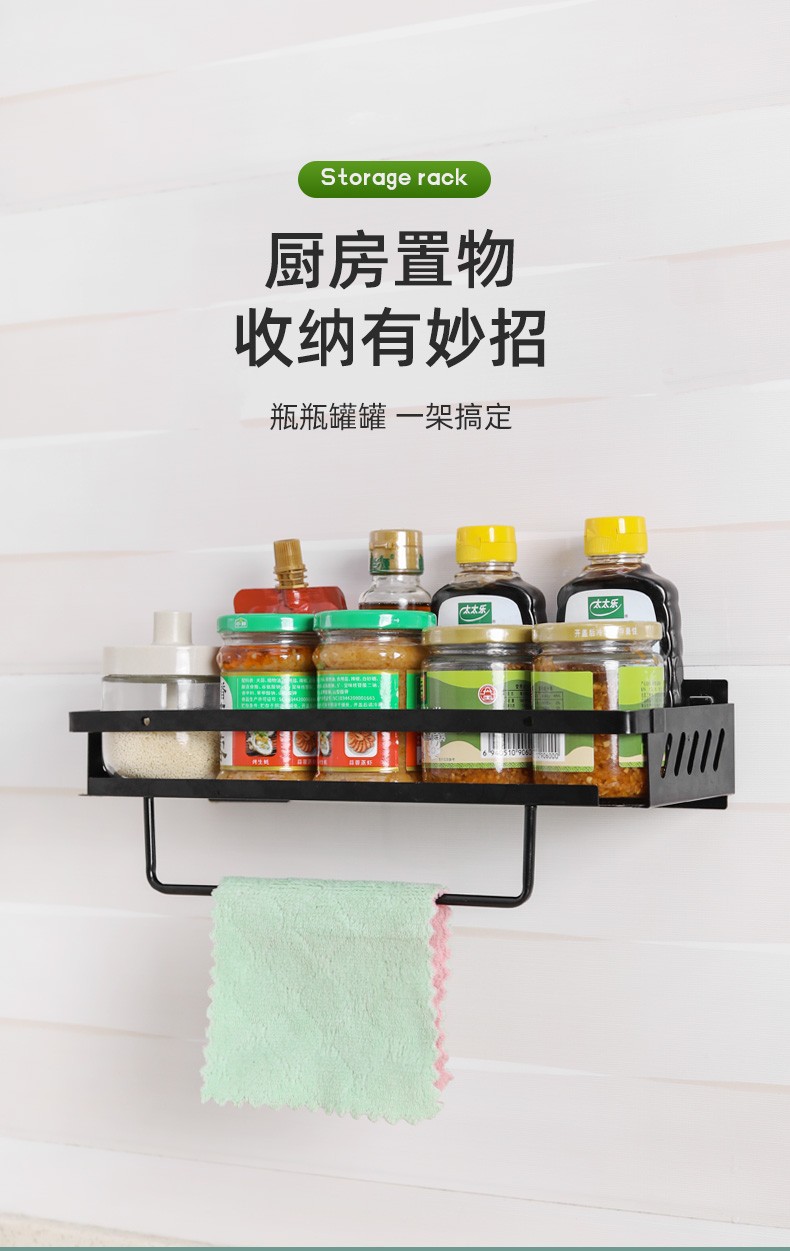 外贸出口批发厨房置物架黑色免打孔调味盒调味瓶置物架