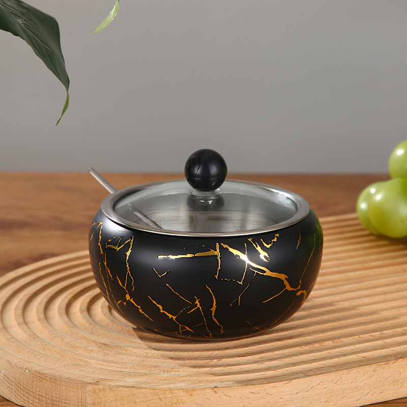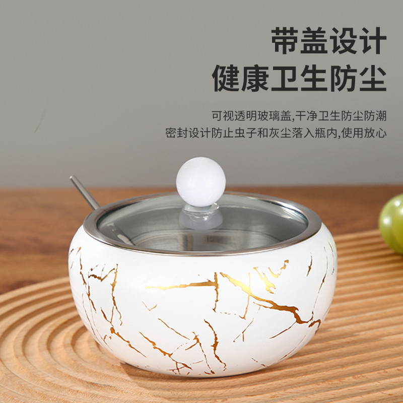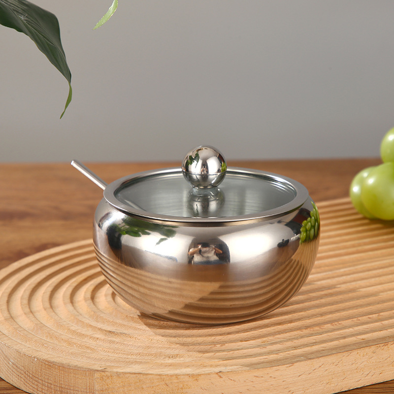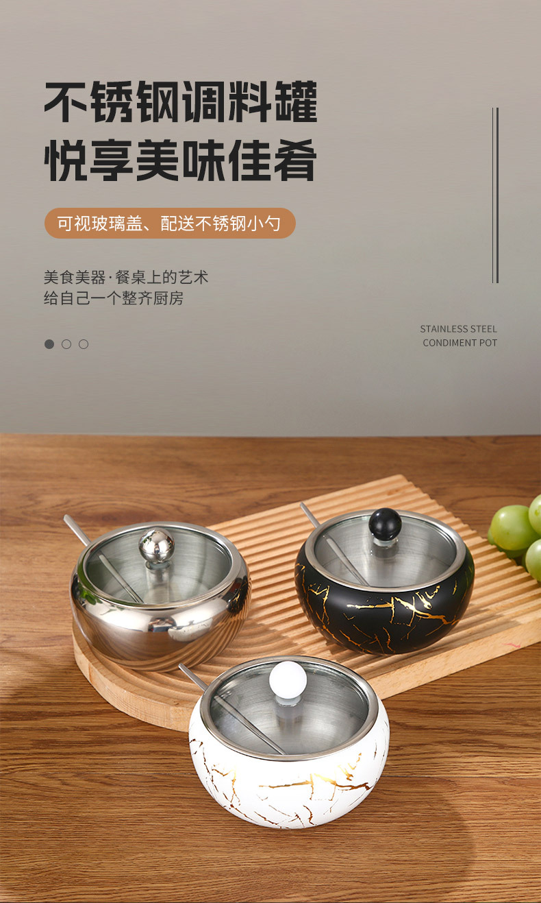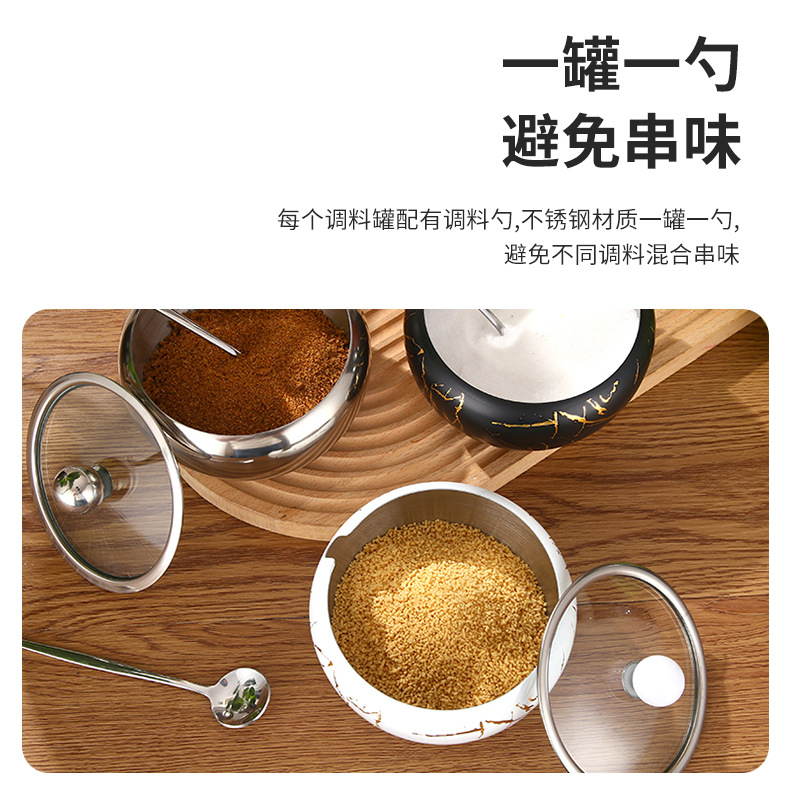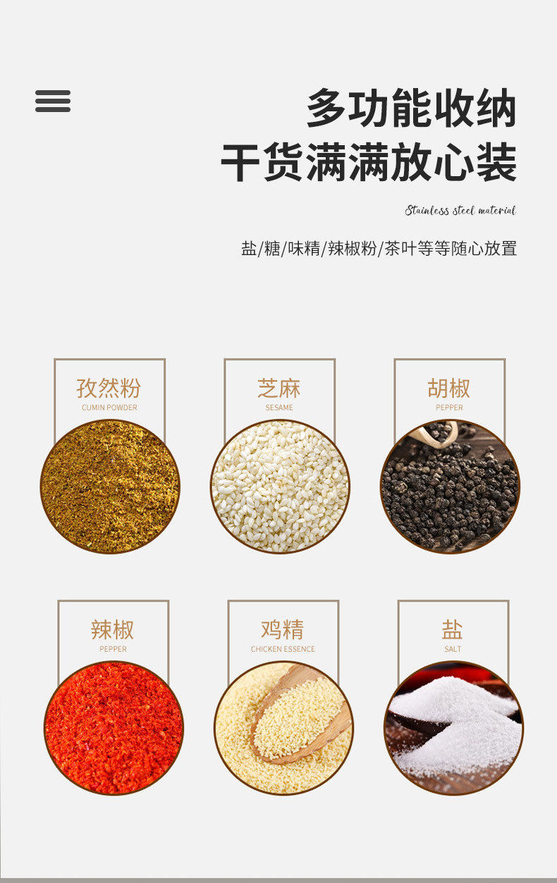 外贸出口批发不锈钢调味罐玻璃可视调料罐家用厨房调味缸佐料罐