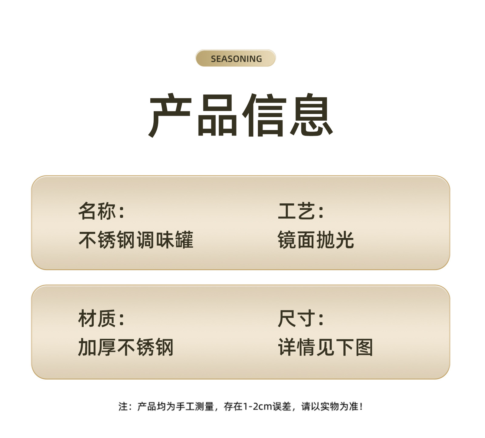 出口不锈钢调料罐大容量家用装盐罐子味精糖调味罐厨房用品收纳盒