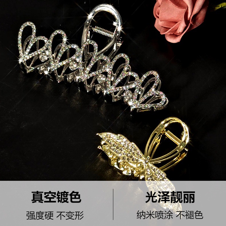 时尚发抓百搭银色鲨鱼夹大号发夹爱心后脑勺高级感抓夹半扎夹发卡