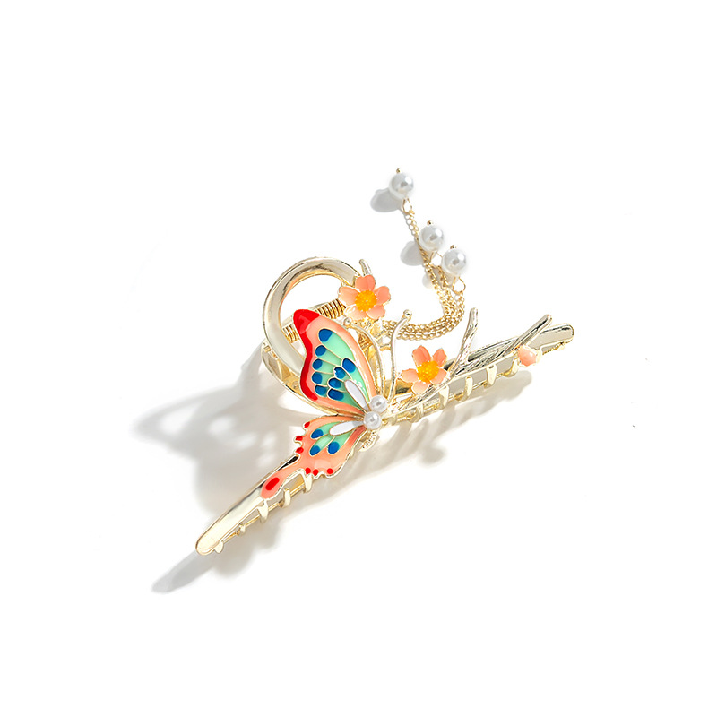 超仙彩绘蝴蝶翅膀发夹 清新甜美甜妹气质发饰后脑勺盘发头饰批发