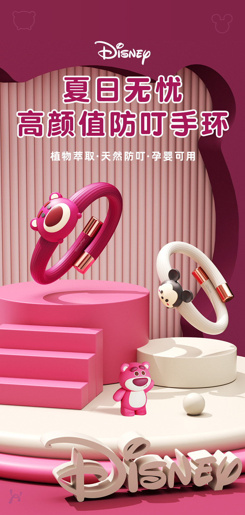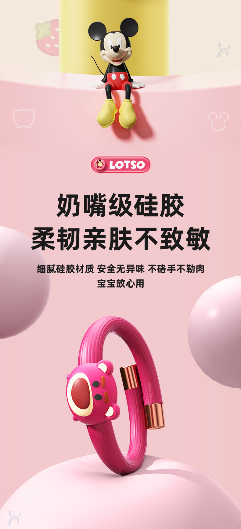 植物手环防叮神器迪士尼驱蚊液精油手环儿童户外随身防虫脚环批发